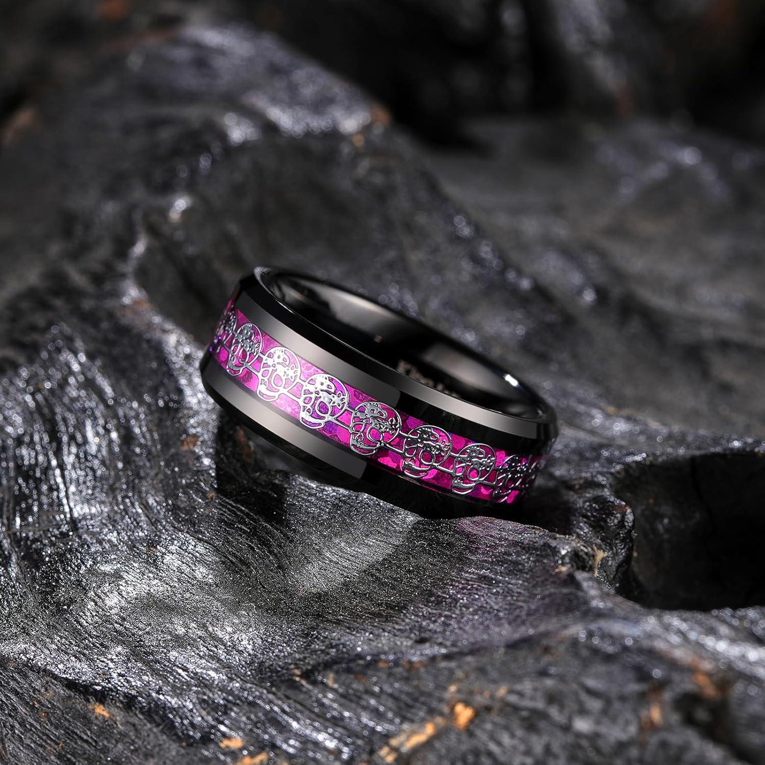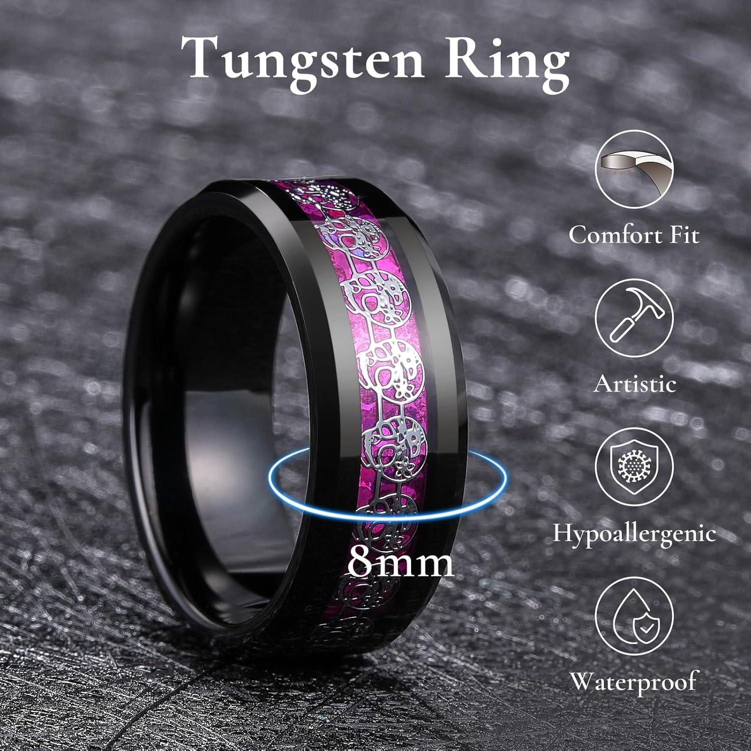 King Will 8mm Men’s Tungsten Wedding Band Masonic Compass Square Free Mason Ring/Irish Claddagh/Spider/Opal Sticker Inlay Skull Cashew Flower Gold Chain Silver Engagement Ring Beveled Polished Edge(Skull Sticker & Purple Opal)