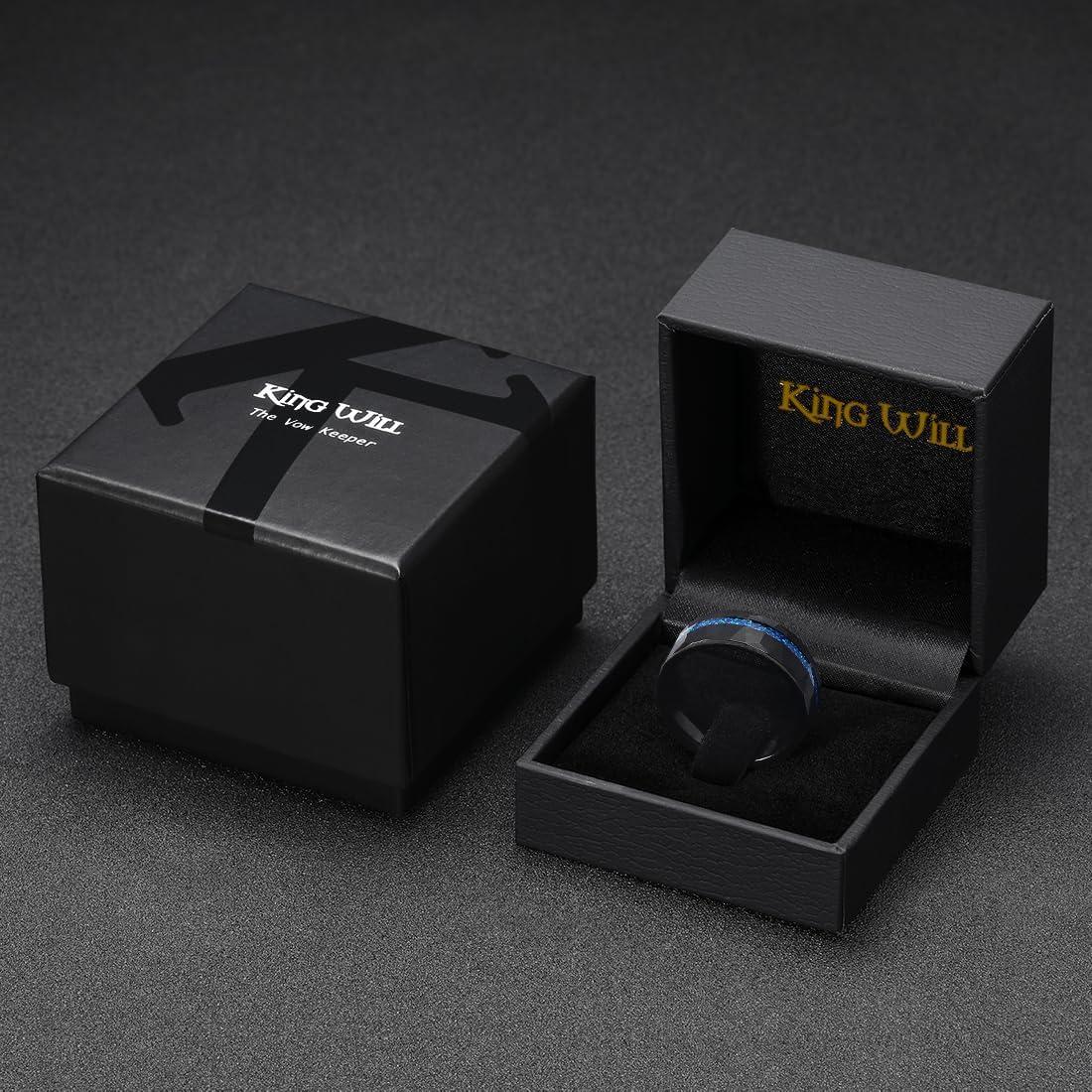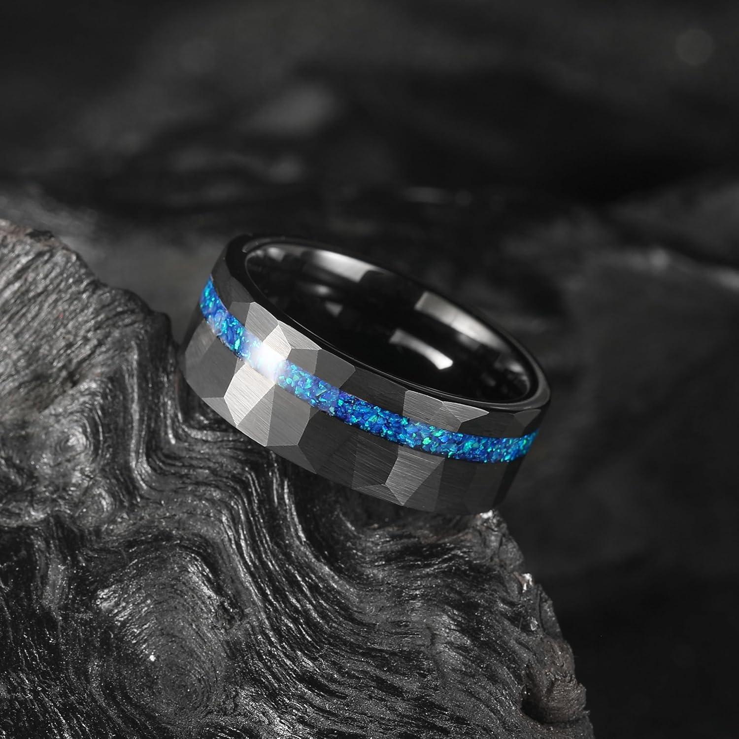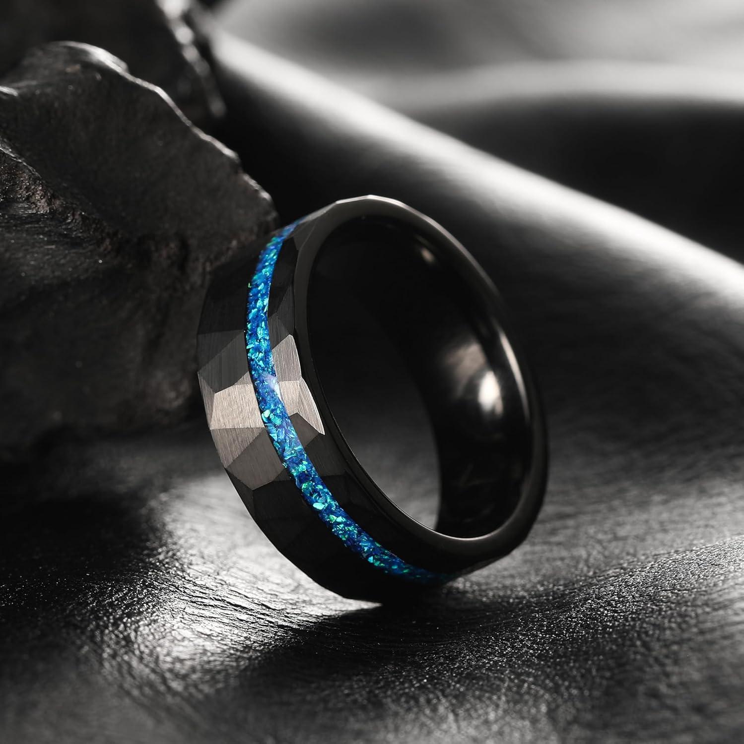 King Will 8mm Tungsten Carbide Opal Rings For Men Black Wedding Band Blue Opal Inlay Brushed Hammered Promise Rings Comfort Fit Size 7-14(Black)