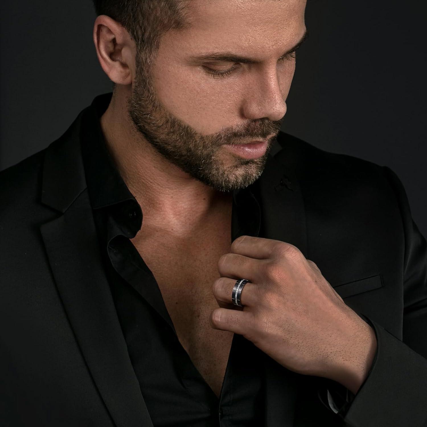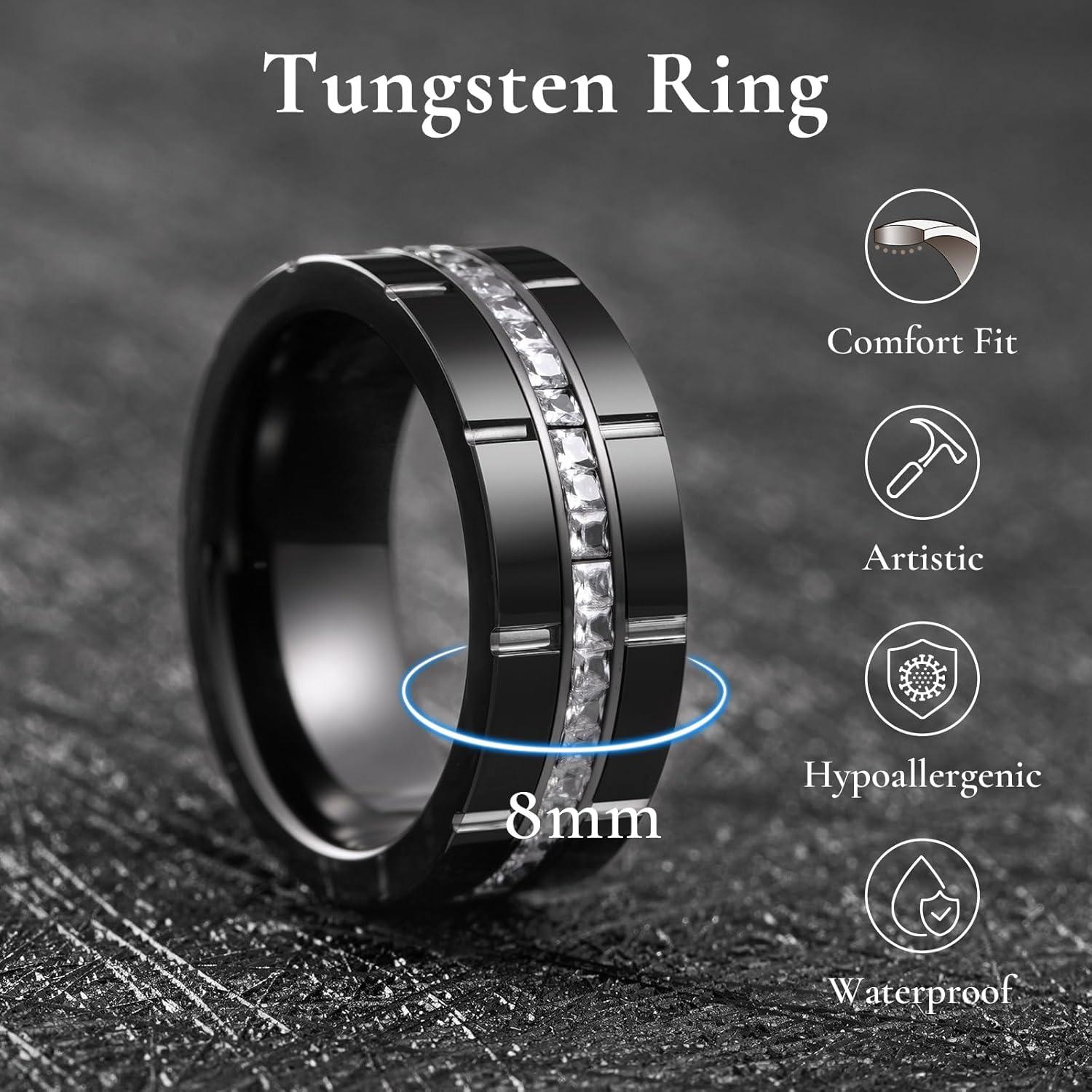 King Will 8mm Tungsten Wedding Ring for Men Women Centre Groove Unisex Wedding Band with White Cubic Zircon(Black)
