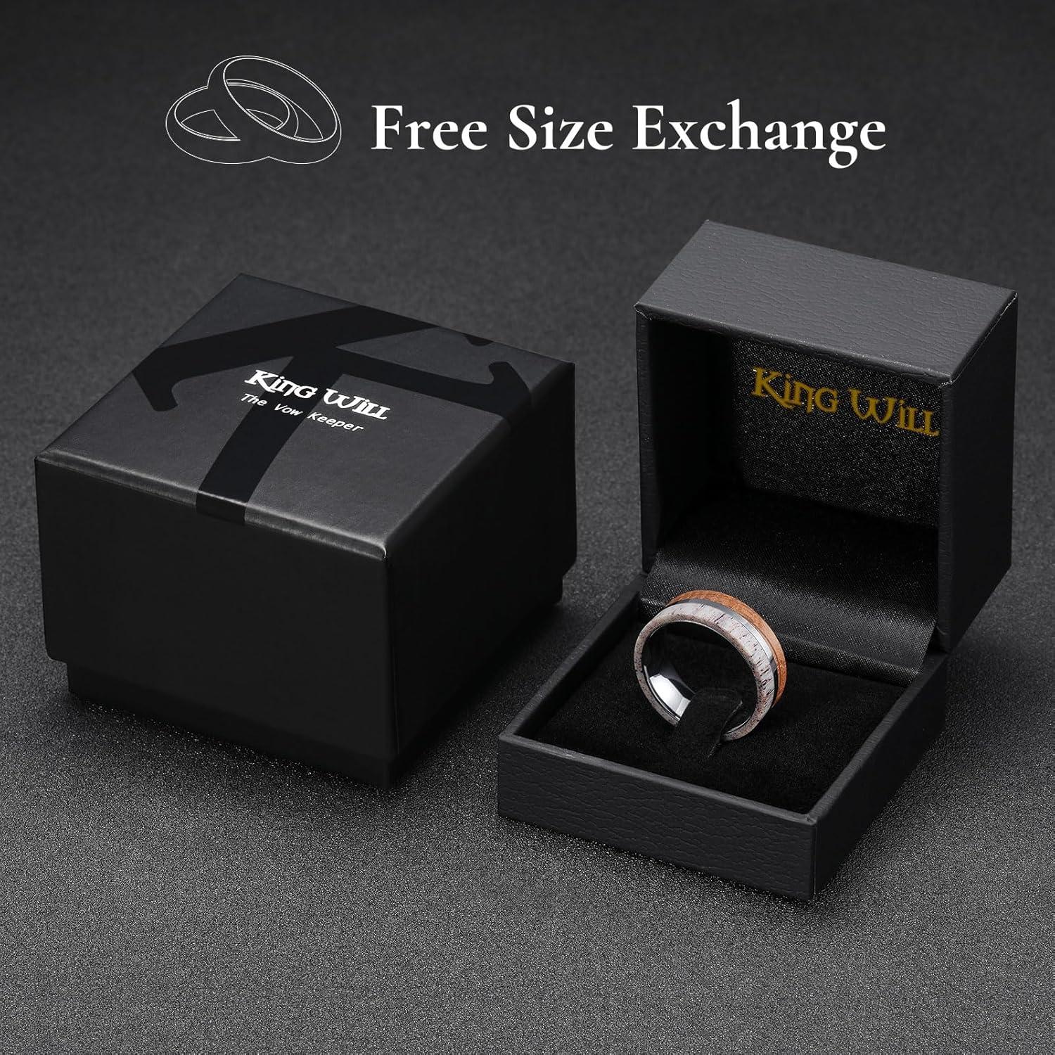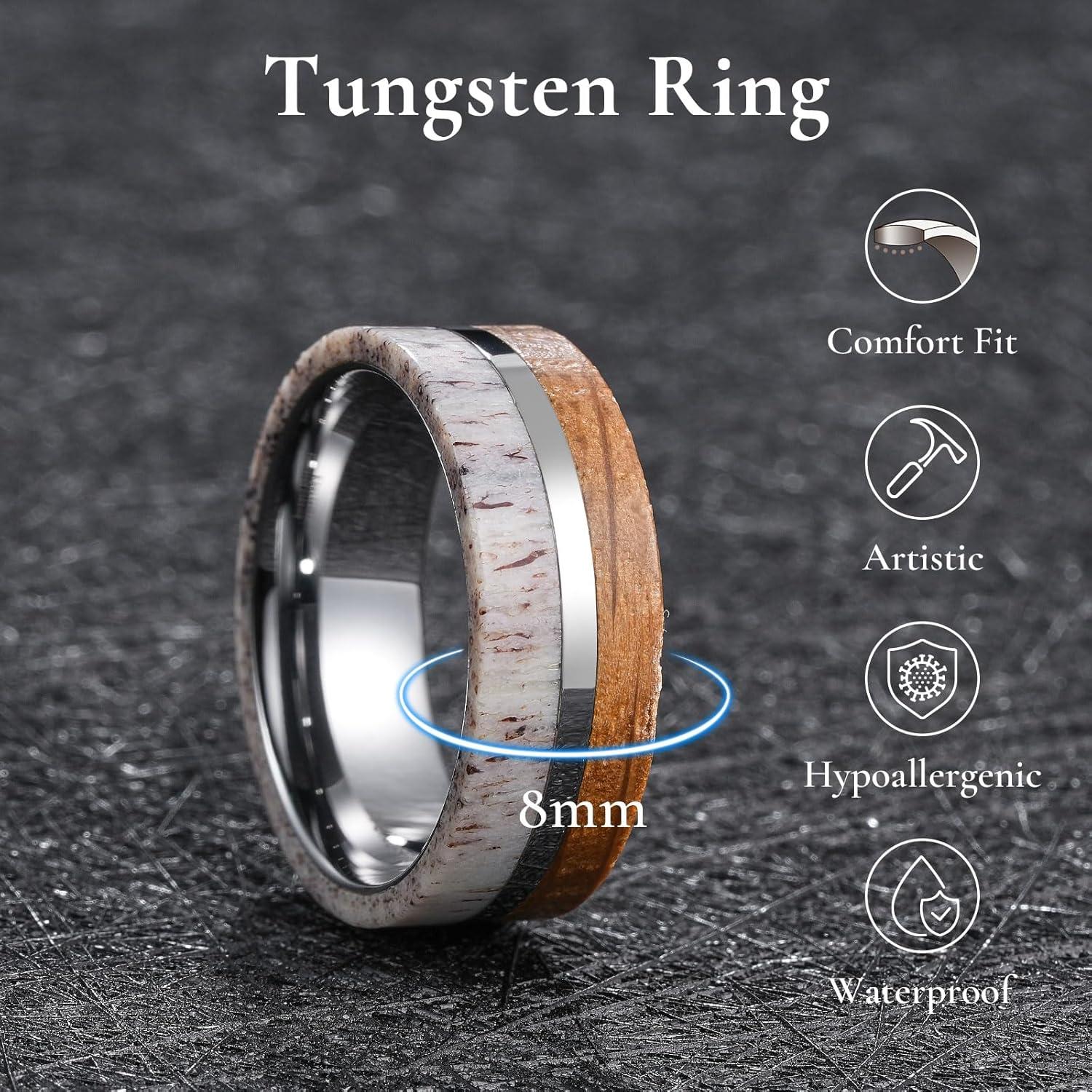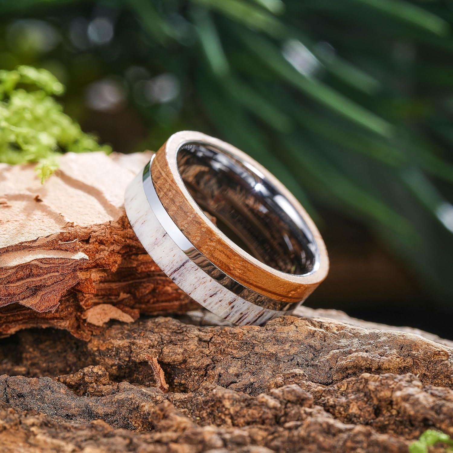 King Will 8mm Wooden Rings, Men’s Wedding Rings Inlay Flat Cut Ring for Men Women, Comfort Fit, Durable(Whiskey Wood&Antler)