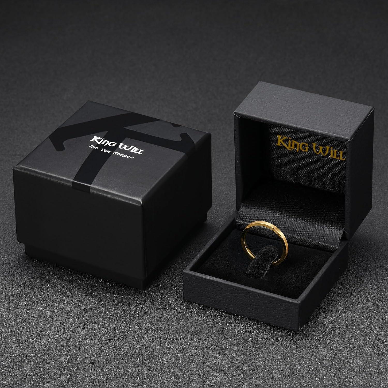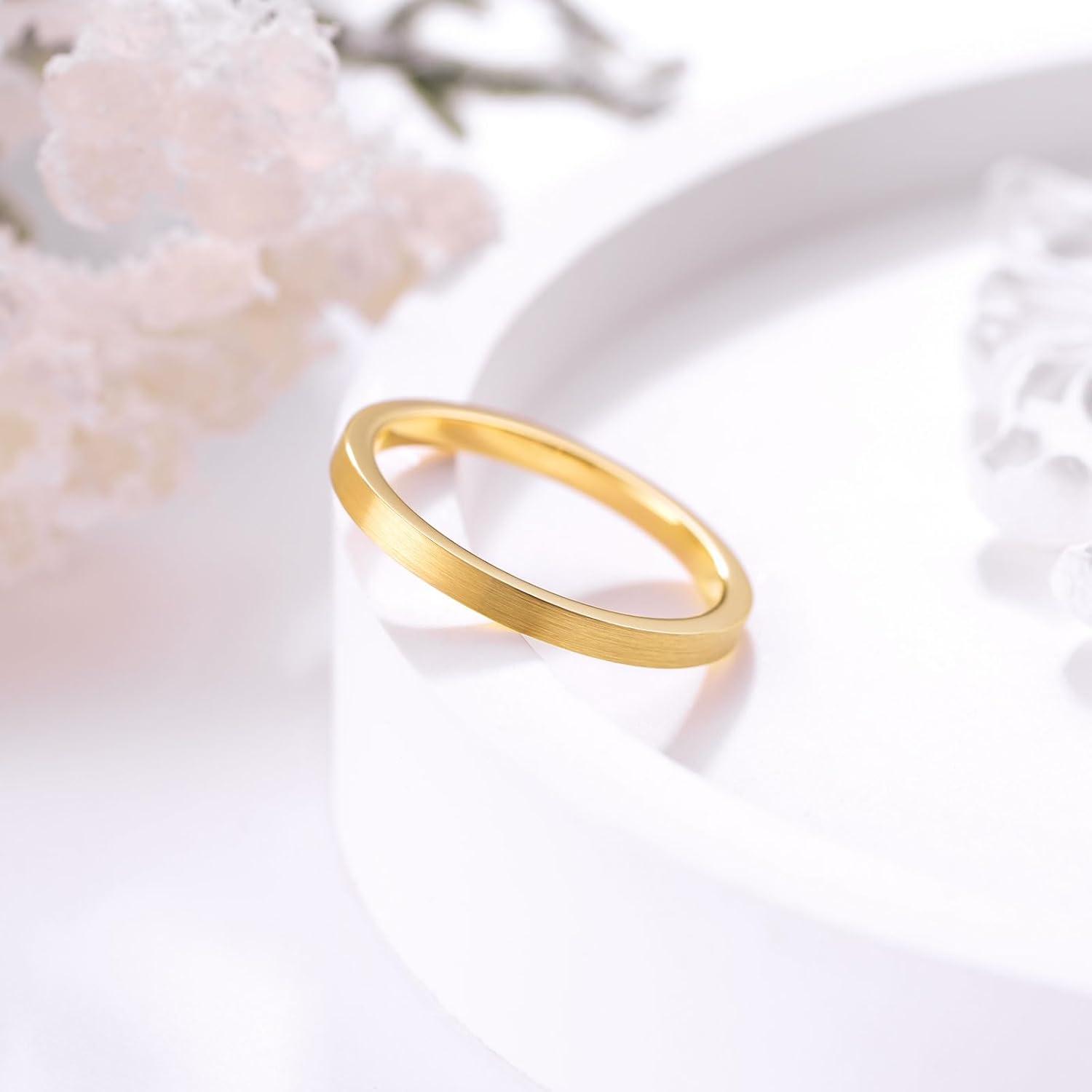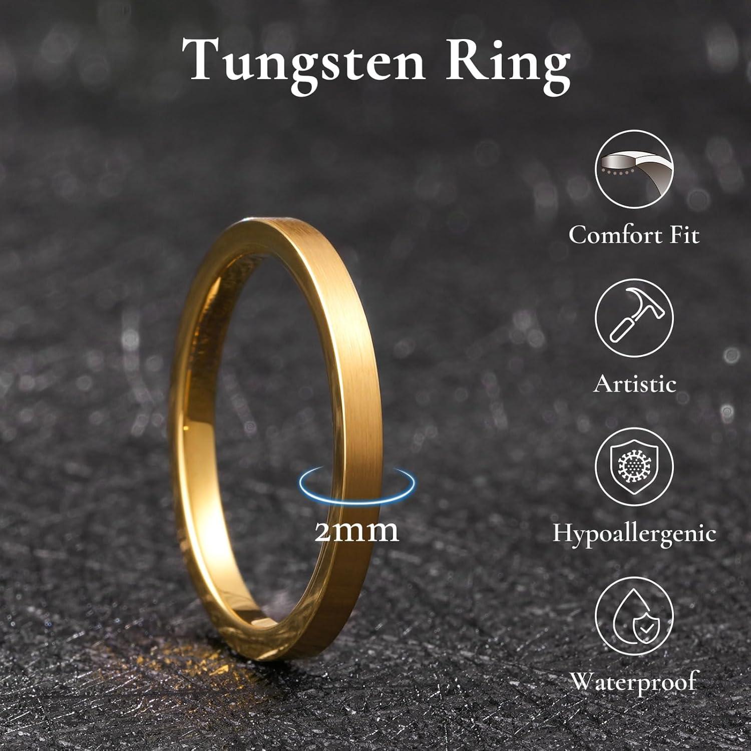 3. King Will Basic Gold/Rose Gold/Brown Plated Tungsten Wedding Band for Men/Women, 2mm/4mm/6mm/8mm/10mm/12mm Width Band Rings, Pipe Cut Matte Brushed Finish Cigar Band Ring Comfort Fit(Gold-2mm)