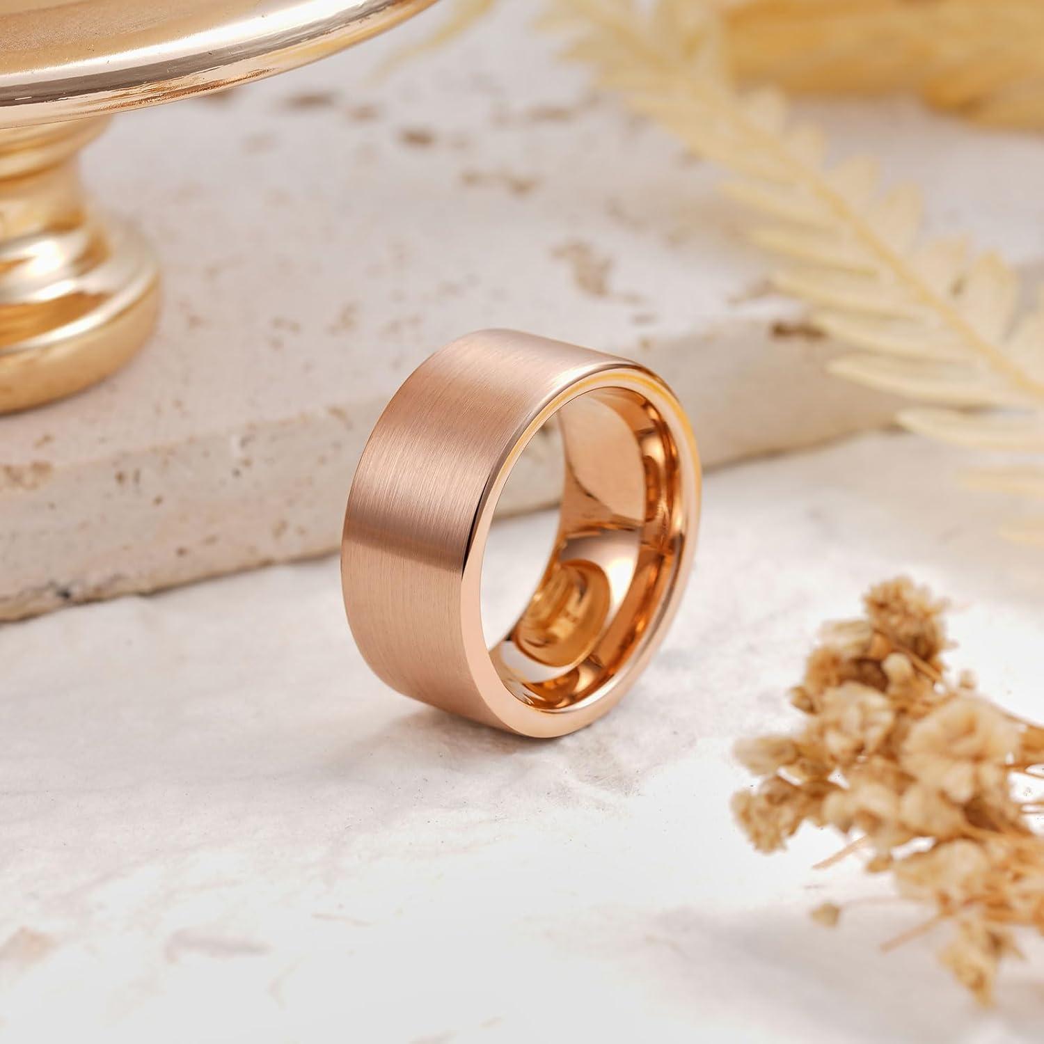 King Will Basic Gold/Rose Gold/Brown Plated Tungsten Wedding Band for Men/Women, 2mm/4mm/6mm/8mm/10mm/12mm Width Band Rings, Pipe Cut Matte Brushed Finish Cigar Band Ring Comfort Fit(Rose Gold-10mm)
