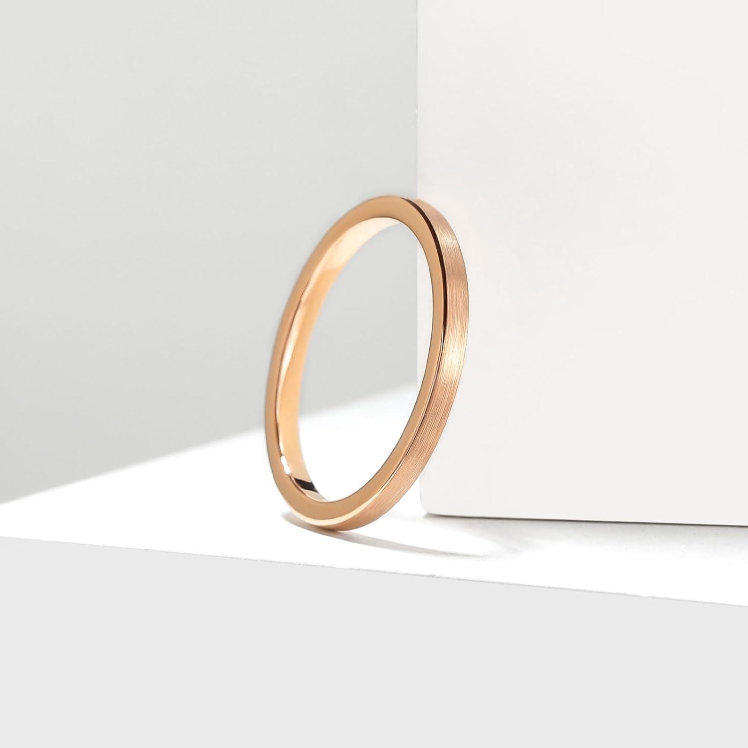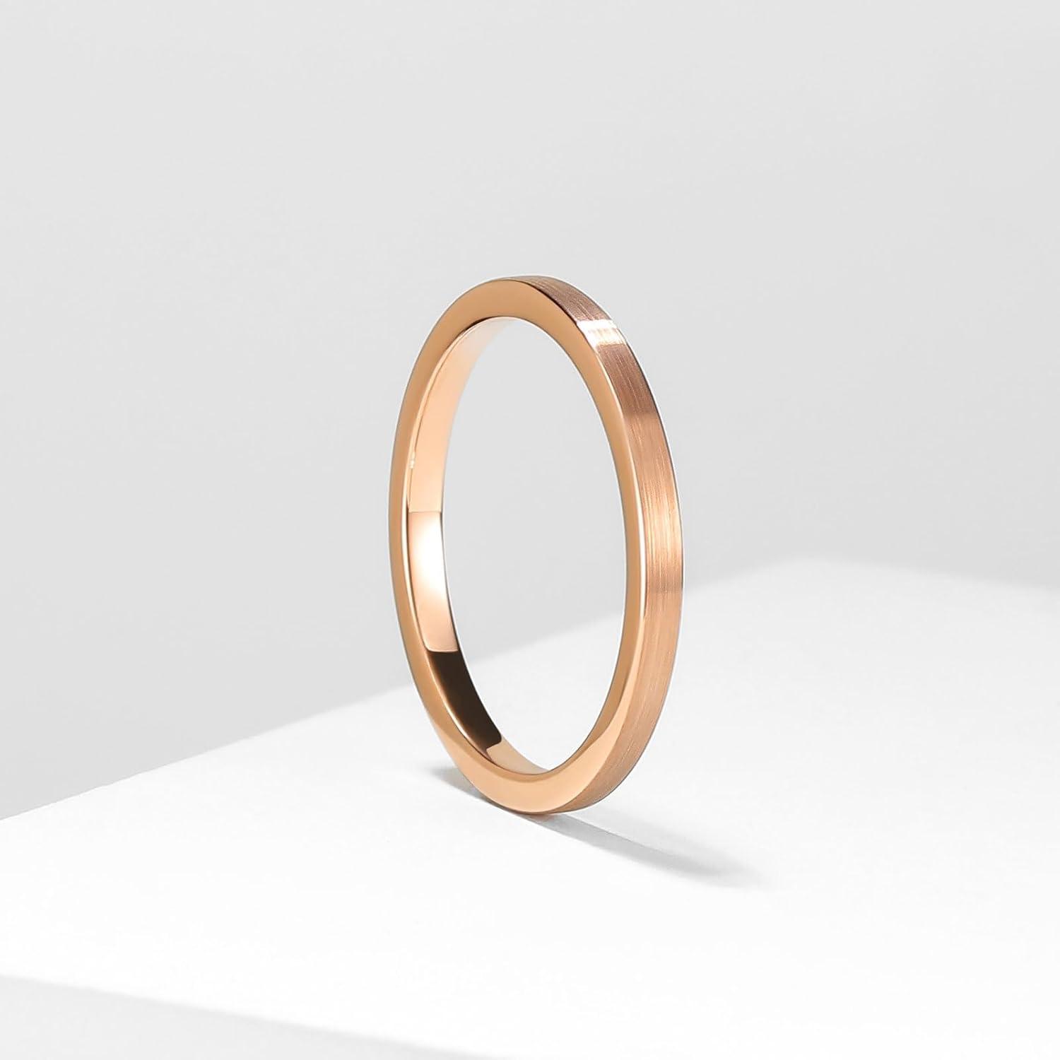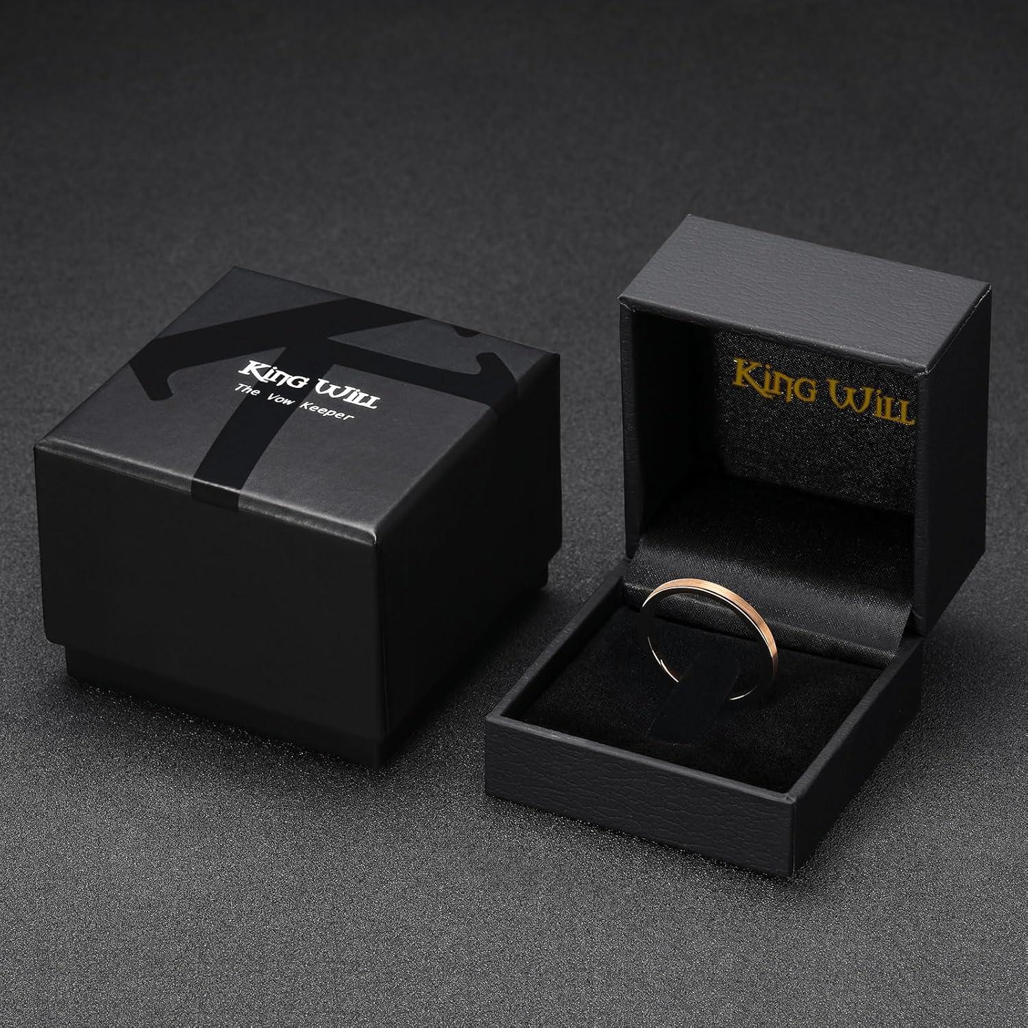 King Will Basic Gold/Rose Gold/Brown Plated Tungsten Wedding Band for Men/Women, 2mm/4mm/6mm/8mm/10mm/12mm Width Band Rings, Pipe Cut Matte Brushed Finish Cigar Band Ring Comfort Fit(Rose Gold-2mm)