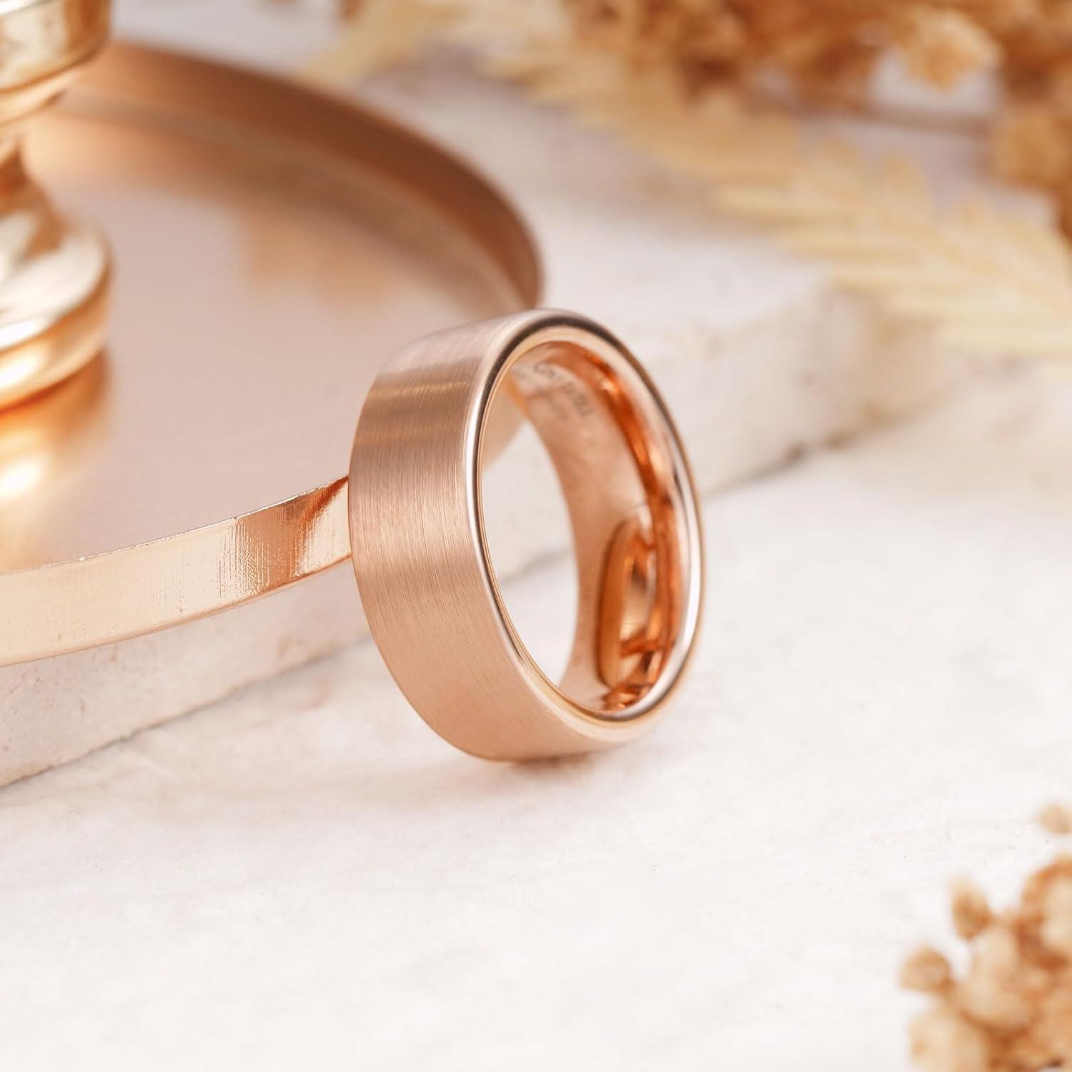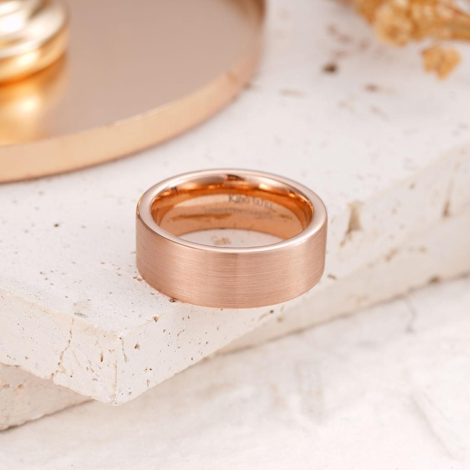 3. King Will Basic Gold/Rose Gold/Brown Plated Tungsten Wedding Band for Men/Women, 2mm/4mm/6mm/8mm/10mm/12mm Width Band Rings, Pipe Cut Matte Brushed Finish Cigar Band Ring Comfort Fit(Rose Gold-8mm)