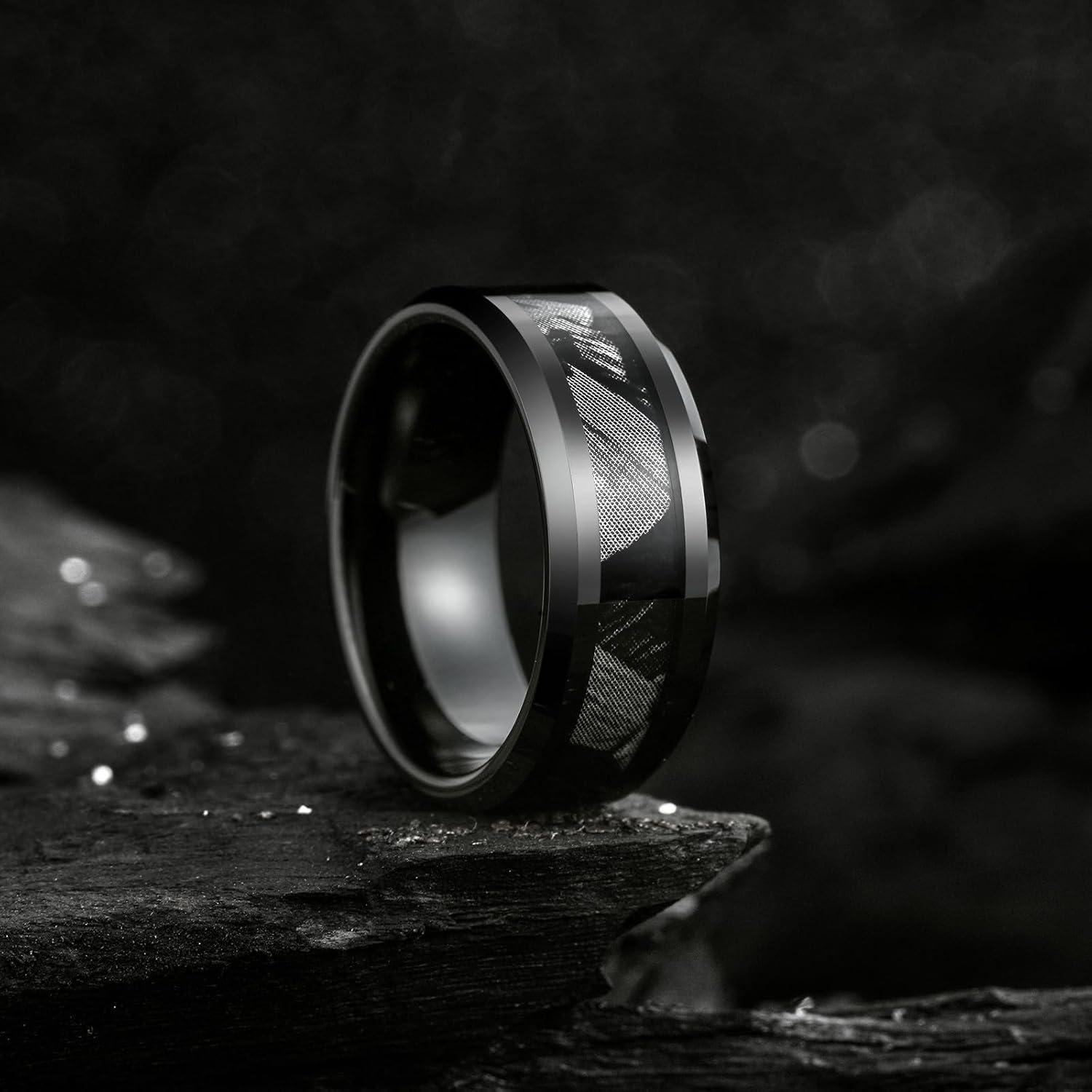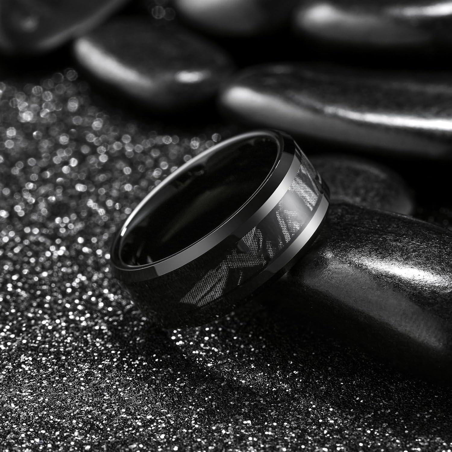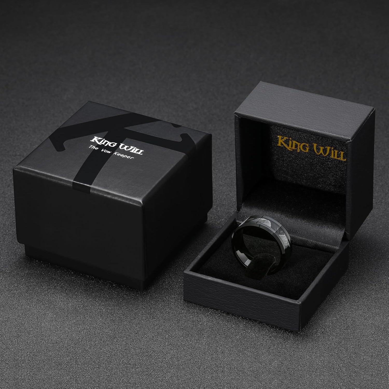 King Will Black Tungsten Wedding Band For Men, 8mm Promise Ring Inlay Red Twill Pattern/Colorful Wood Chips, High Polished Beveled Edge – Suitable For Daily Wear, Comfort Fit Size 7-14(Black-Gray)
