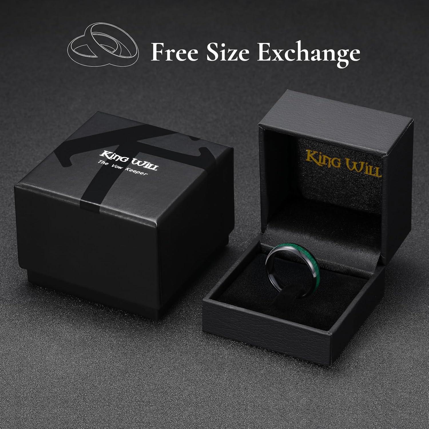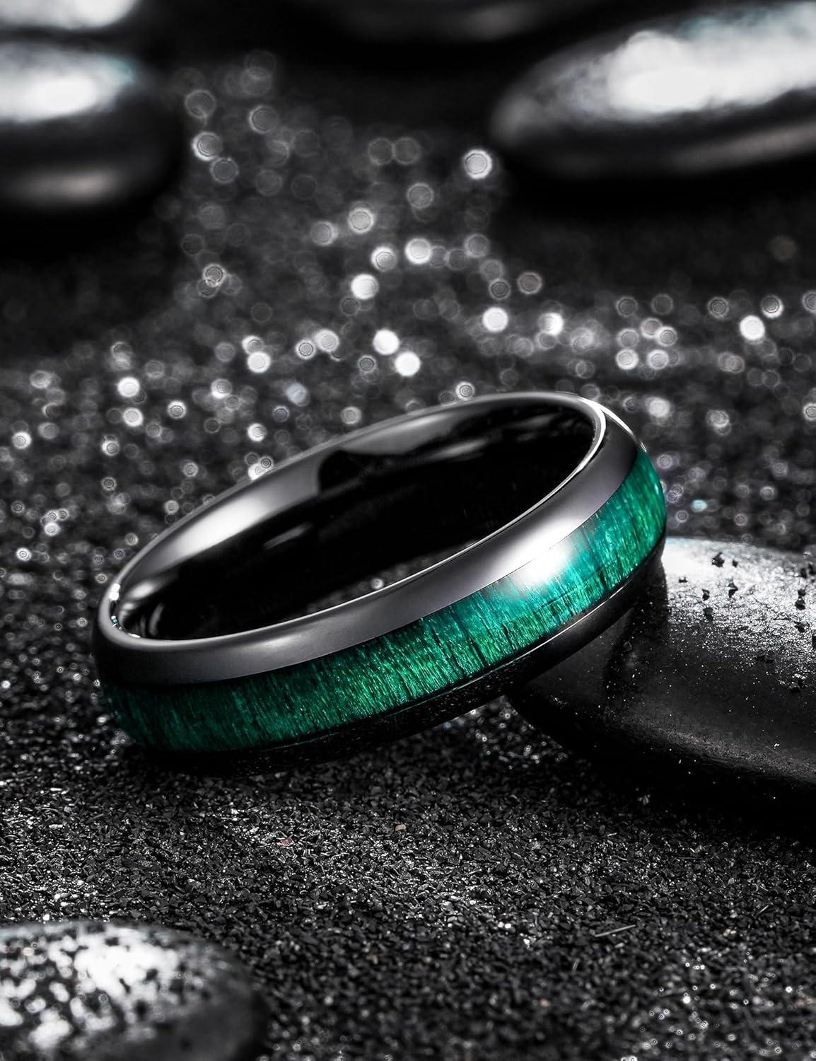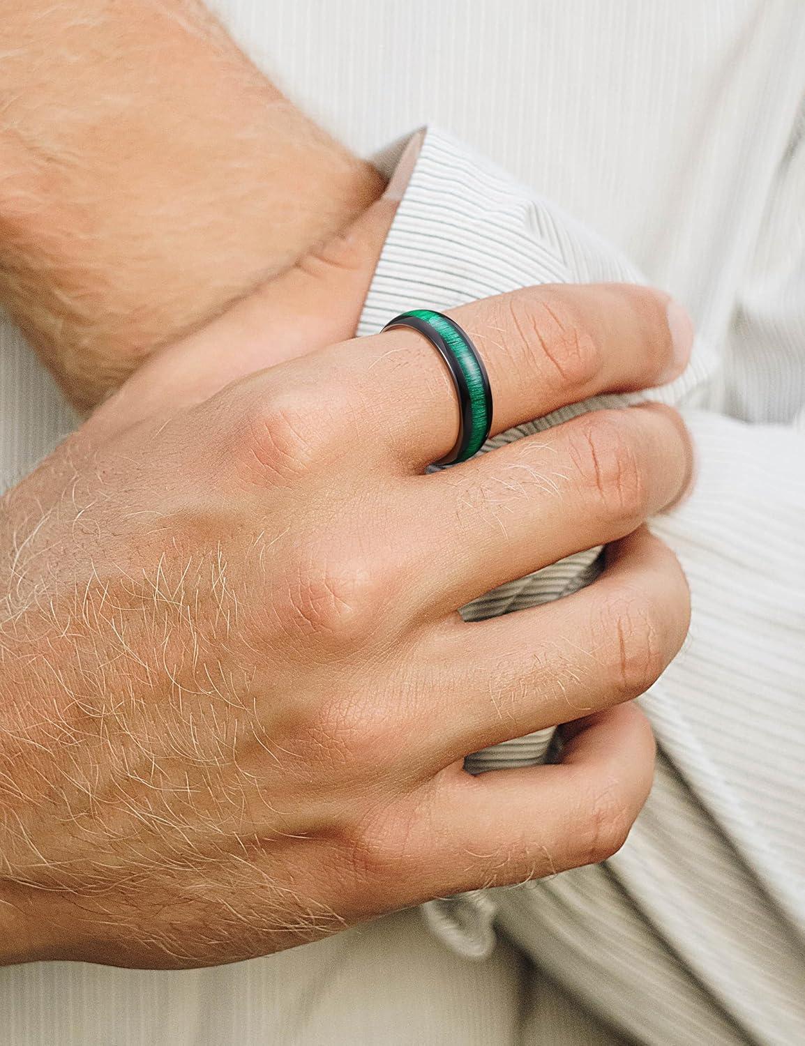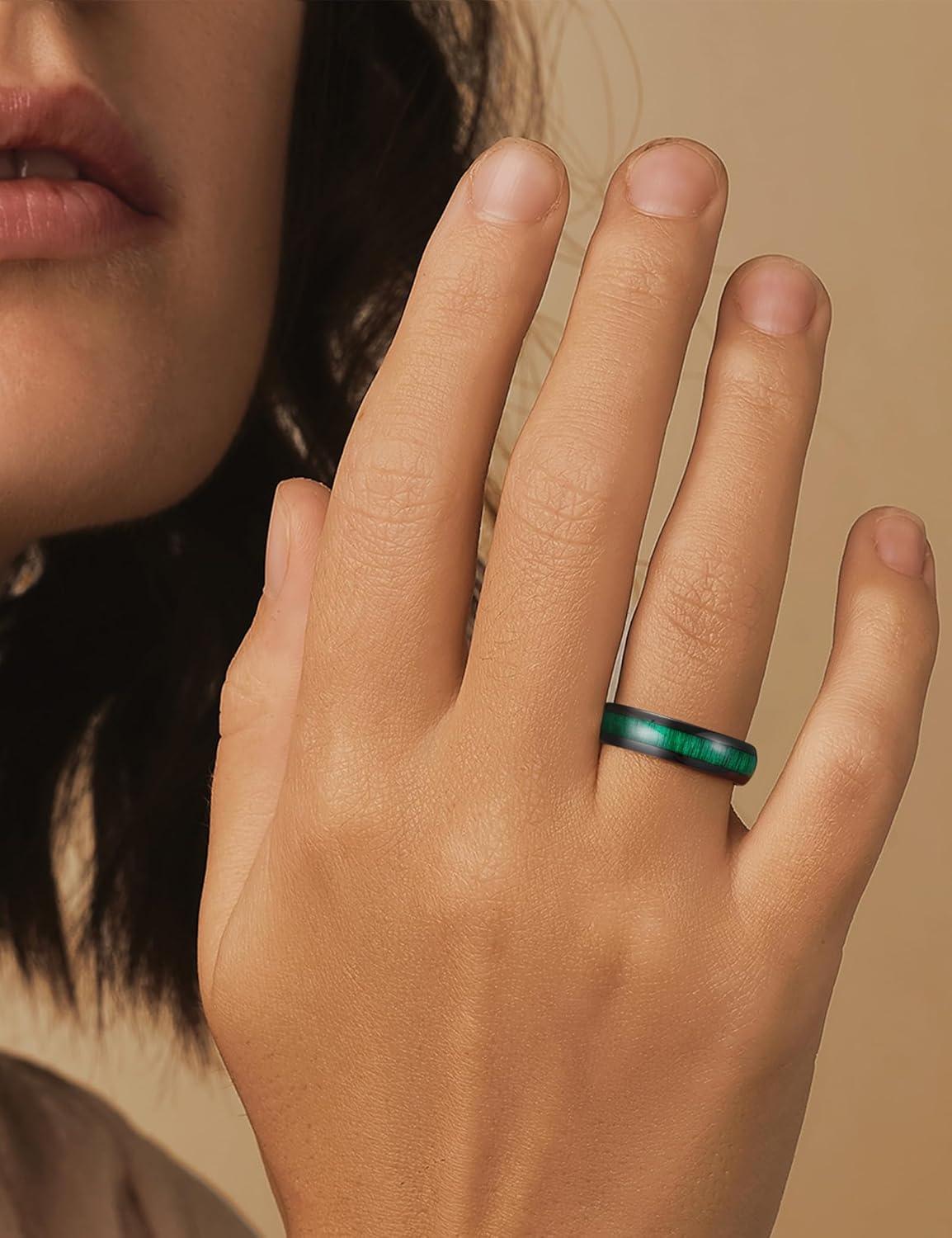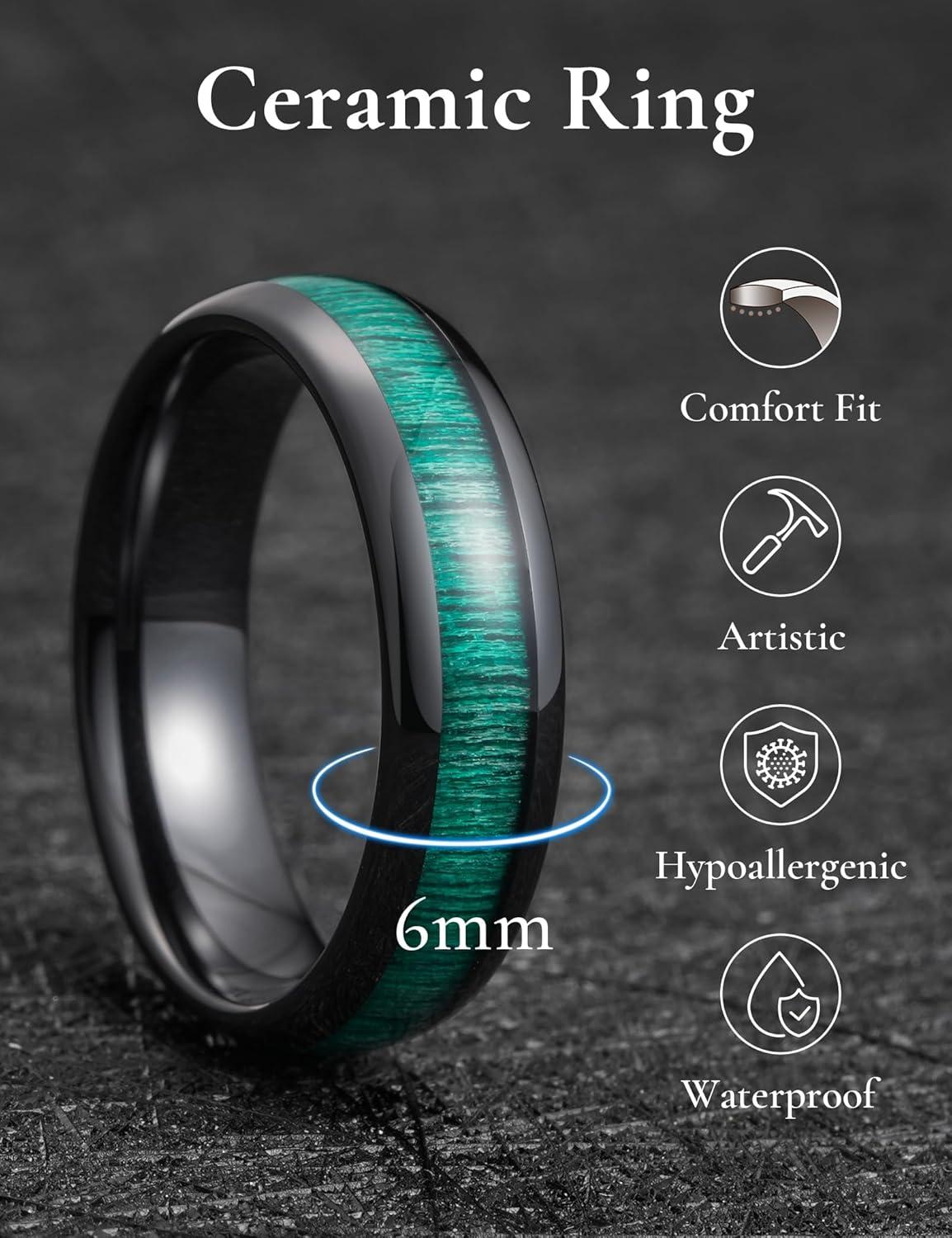 King Will Ceramic Wedding Band for Men Women-3-8 mm Width Black, Rose Gold Wedding Ring Domed Style with Brown/Green Koa Wood Inlay Comfort Fit Size 7-14(Green-6mm)