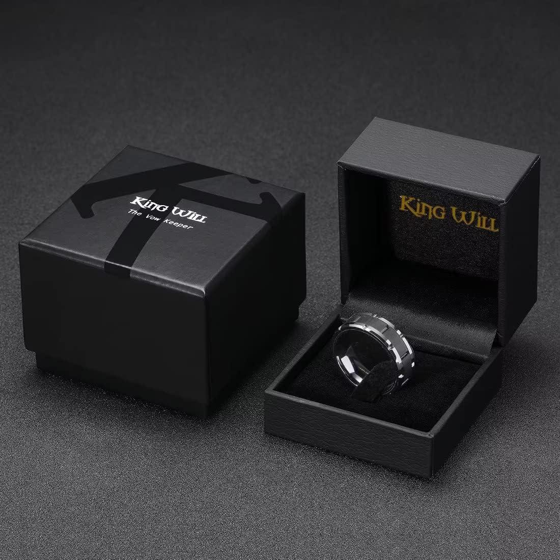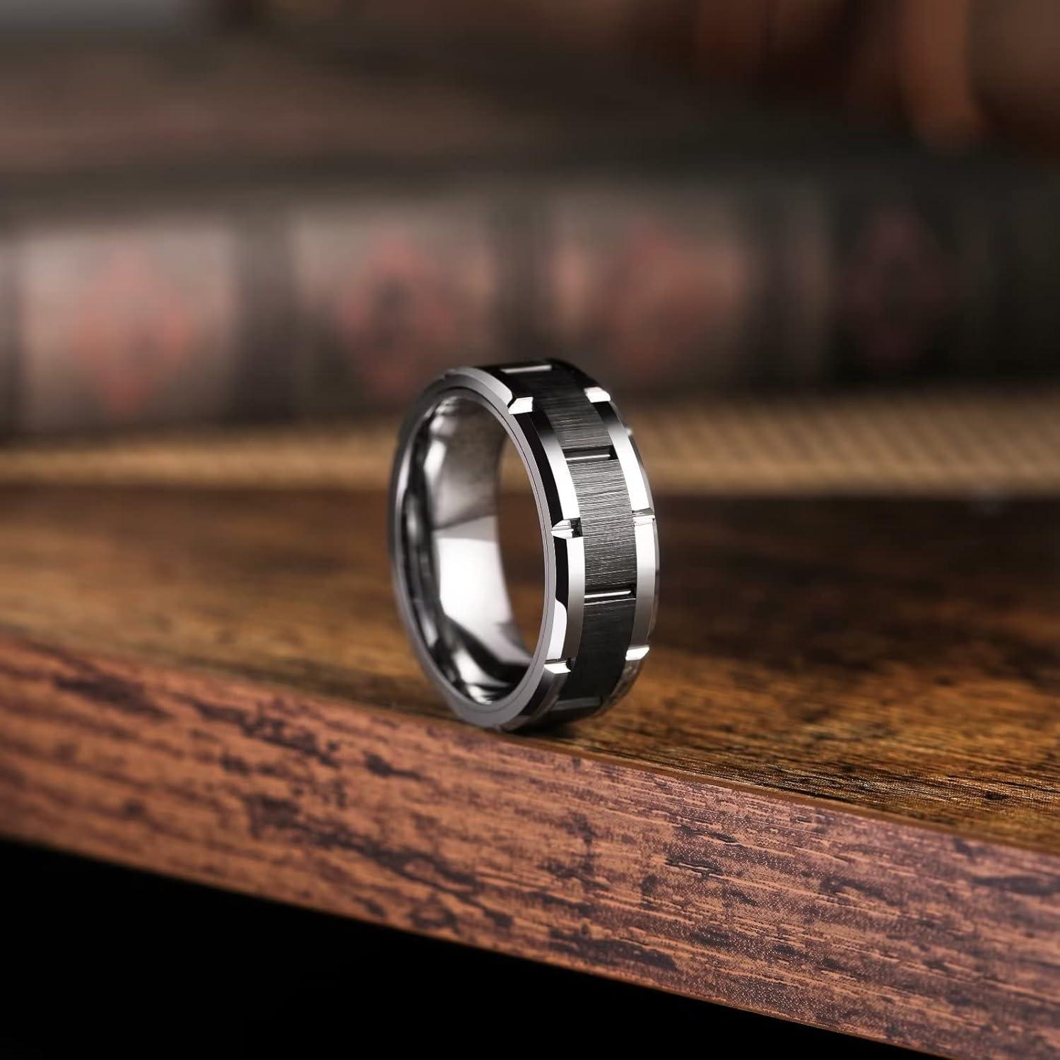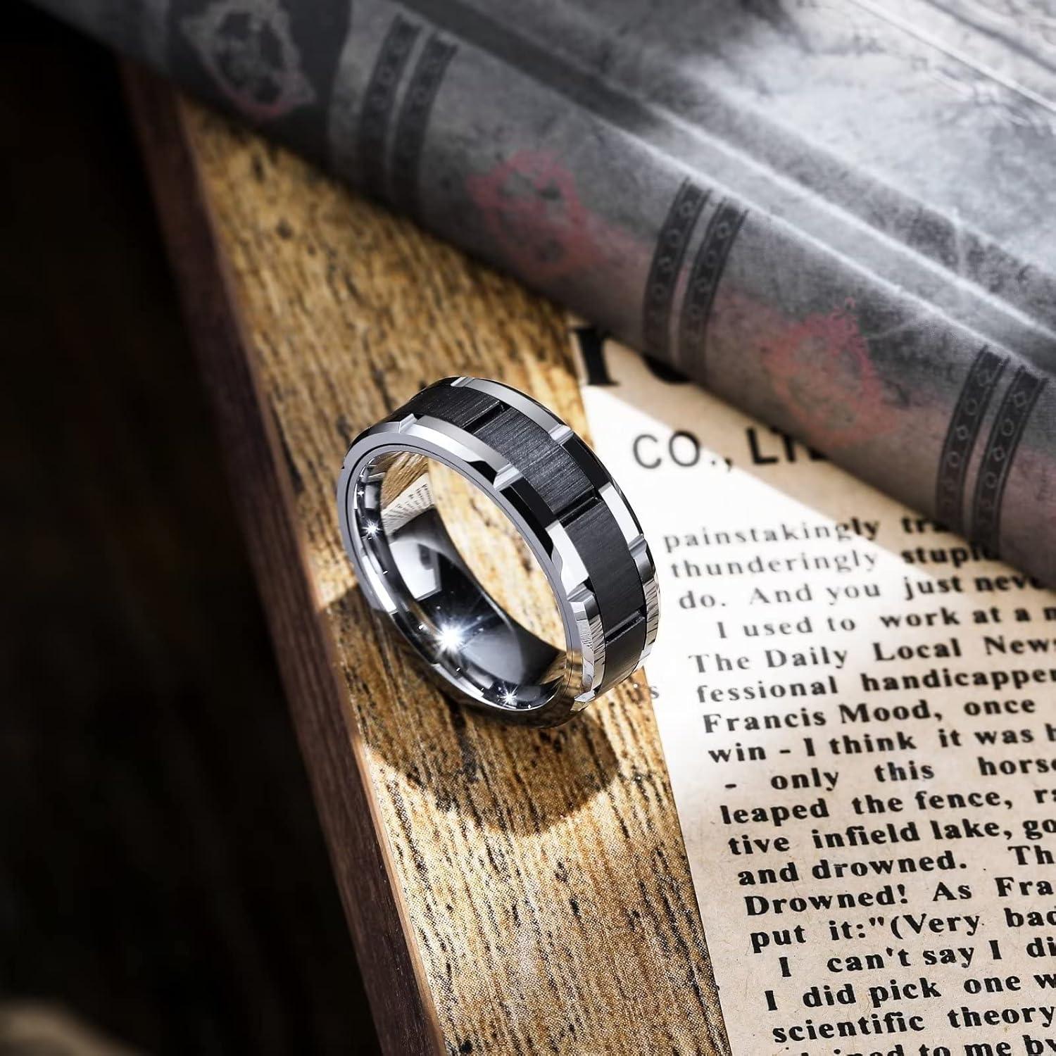 King Will Classic Mens 8mm Silver/Black/Gold/Rose Gold Tungsten Carbide Wedding Band Brick Pattern Groove Center Surface Brushed Finish Comfort Fit(A-Silver & Black)