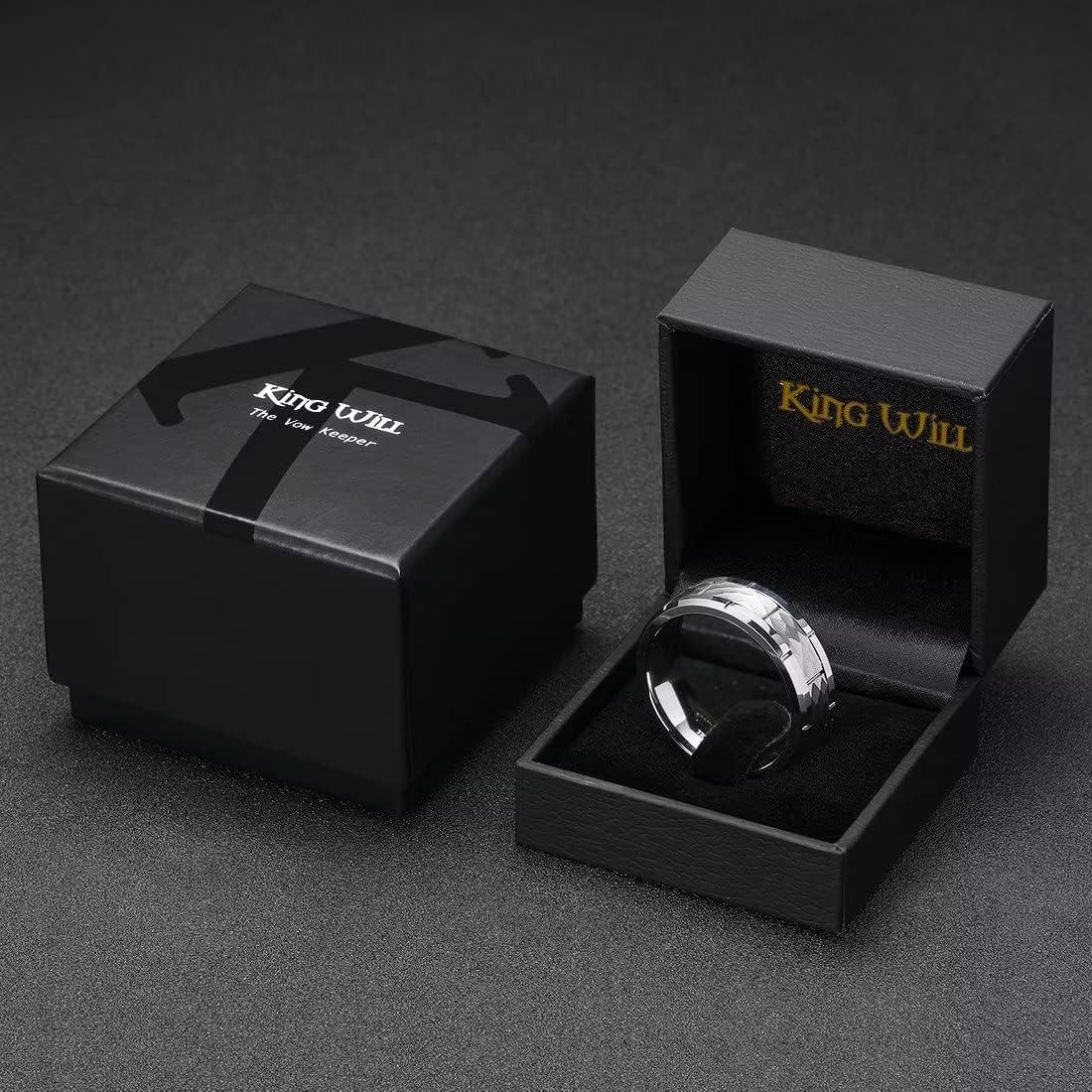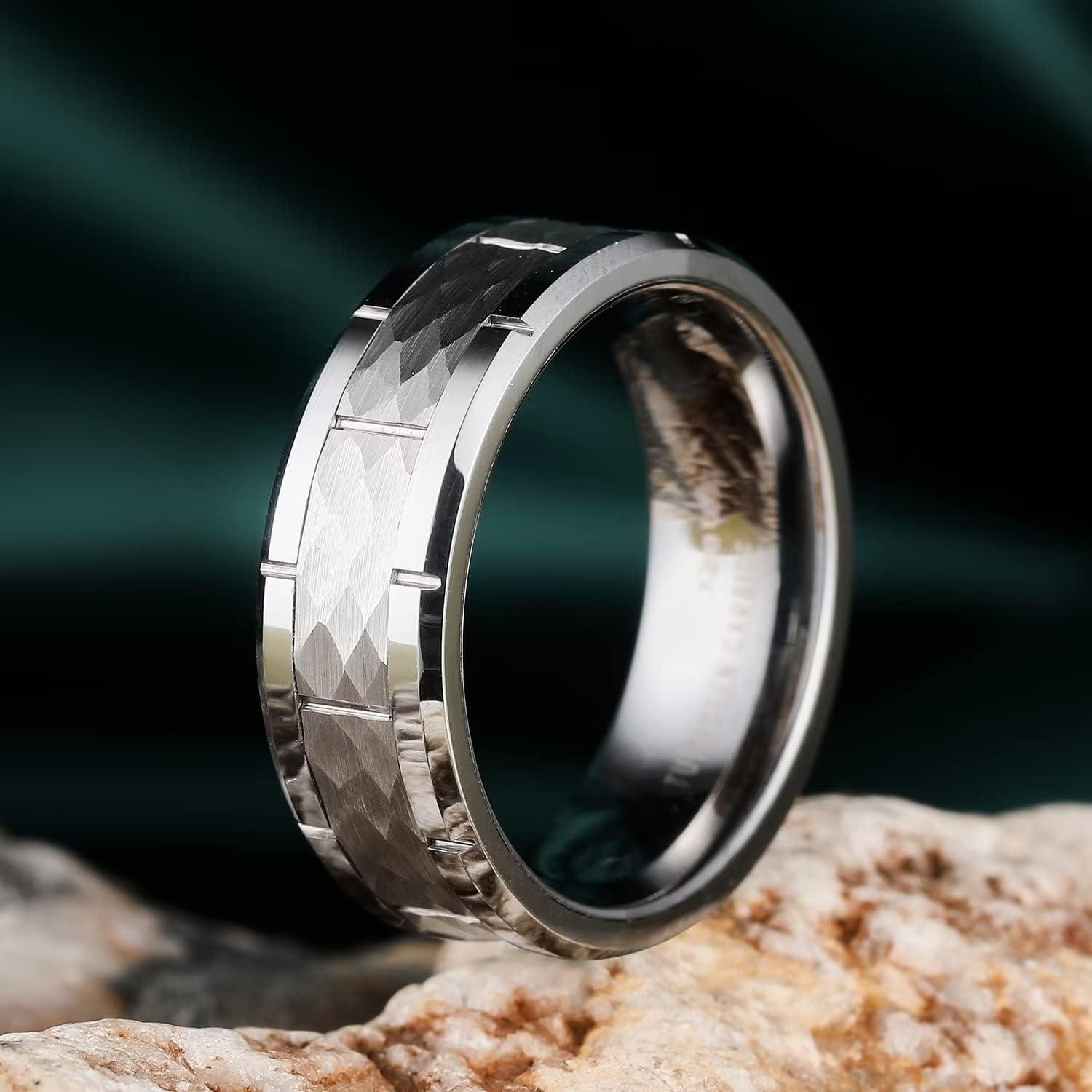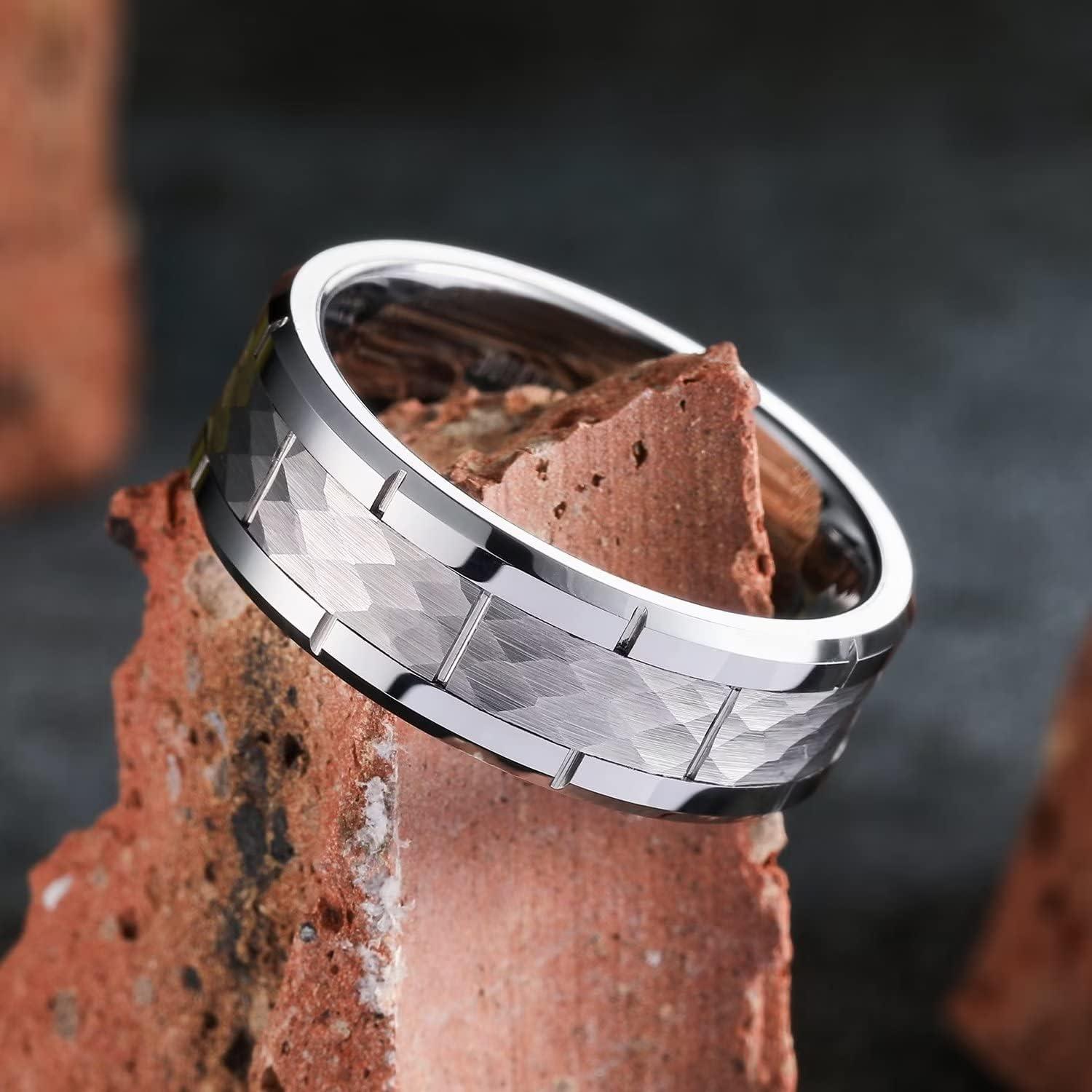 King Will Classic Mens 8mm Silver/Black/Gold/Rose Gold Tungsten Carbide Wedding Band Brick Pattern Groove Center Surface Brushed Finish Comfort Fit(B-Silver-Hammer)