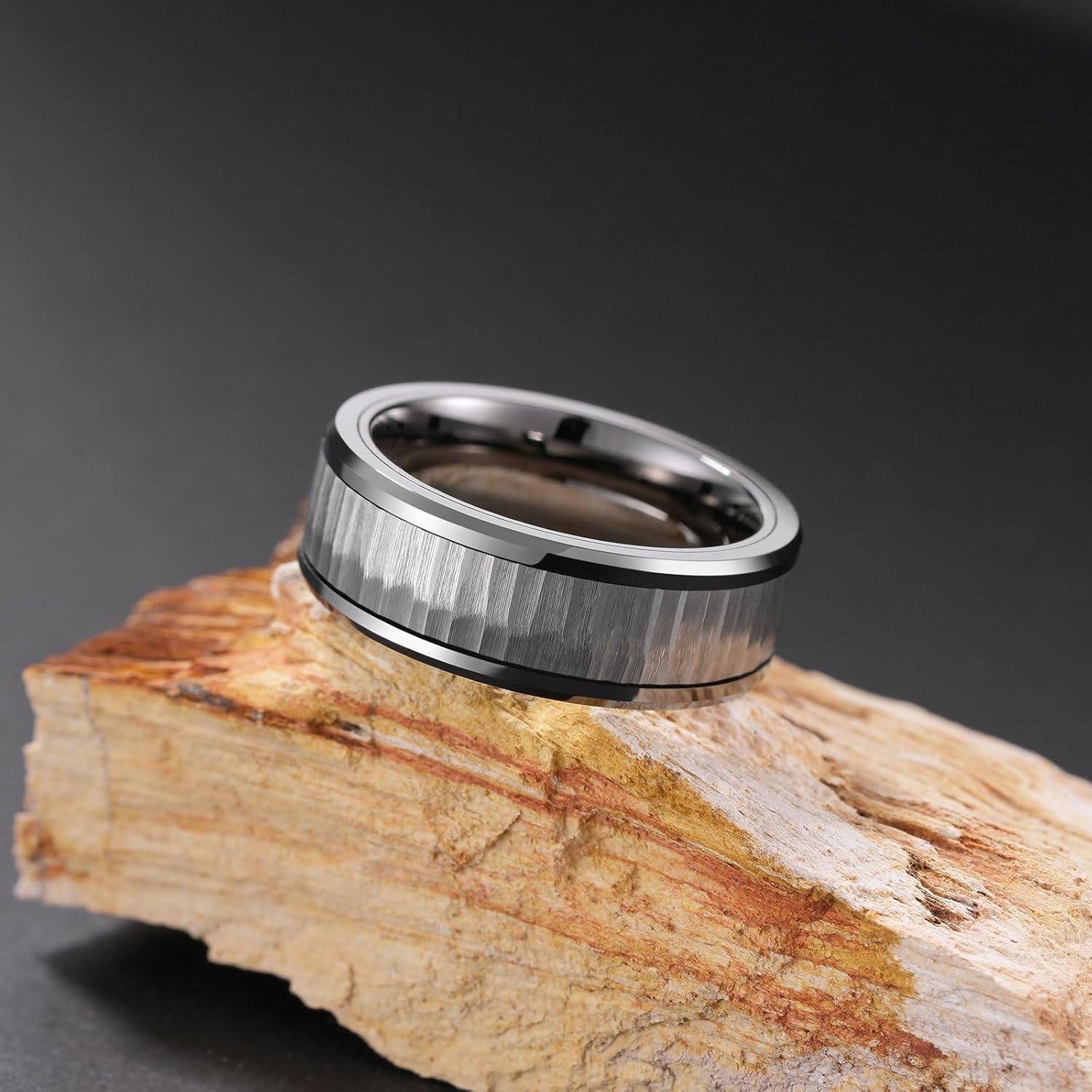 King Will Classic Mens 8mm Silver/Black/Gold/Rose Gold Tungsten Carbide Wedding Band Brick Pattern Groove Center Surface Brushed Finish Comfort Fit(G-Gun grey & Gunmetal)