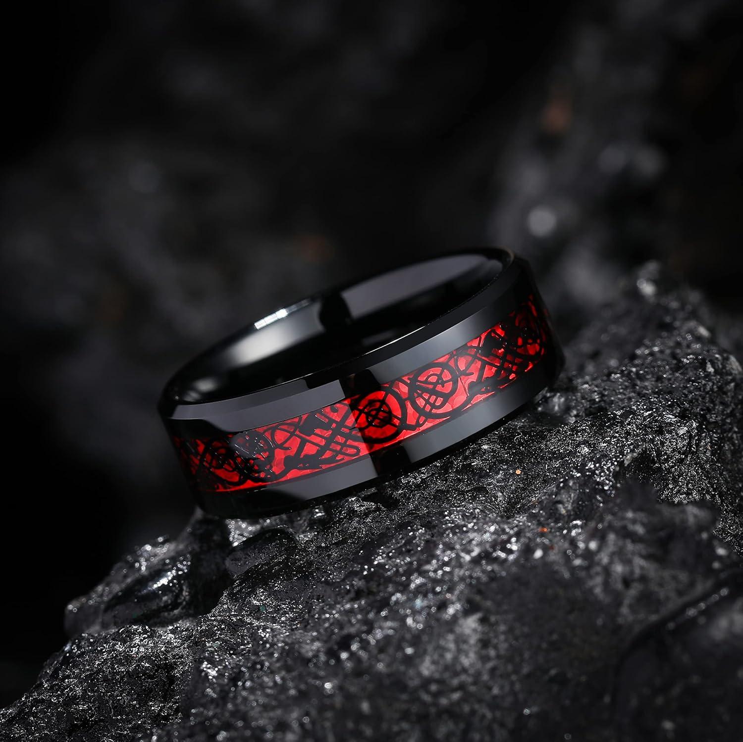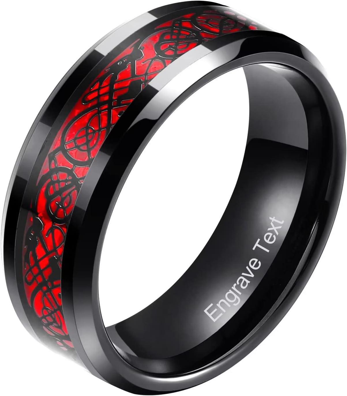 King Will Dragon Custom 6mm 8mm Purple Green Red Blue Personalized Celtic Dragon Tungsten Carbide Ring Engrave Wedding Band for Men Comfort Fit(Red 8mm)
