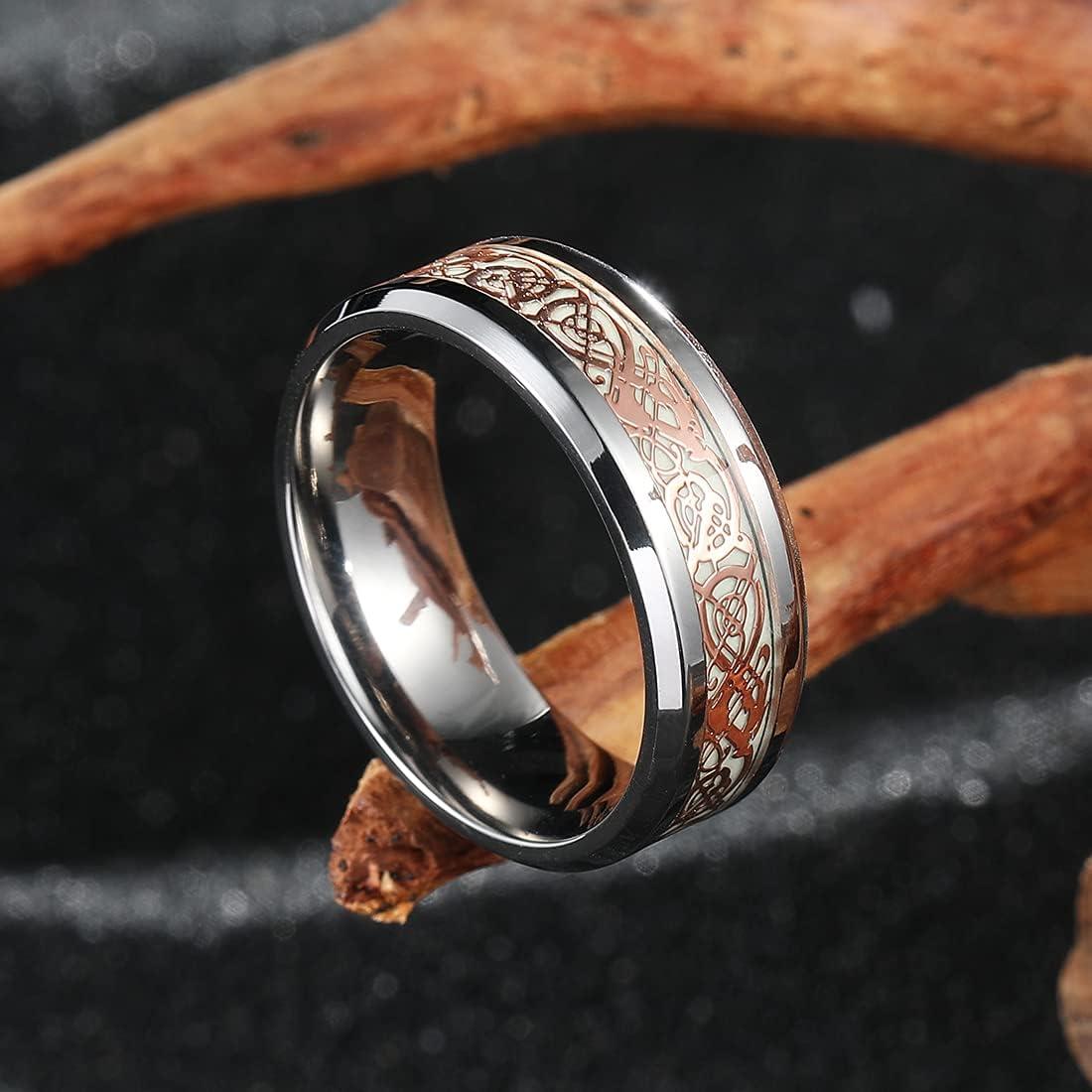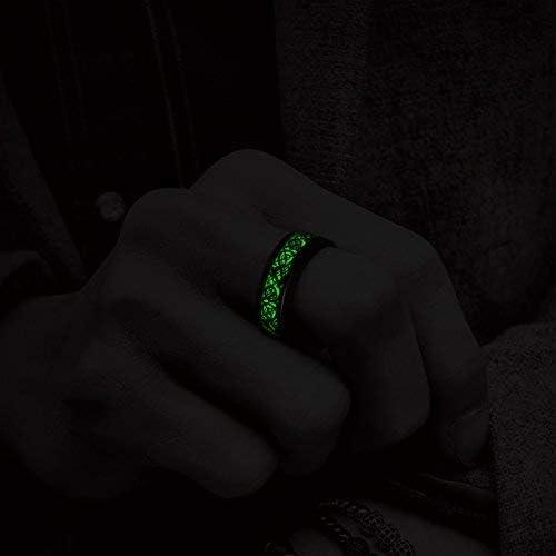 King Will DRAGON Mens Celtic Dragon Titanium Stainless Steel Ring Blue/Black/Green/Red Carbon Fibre Luminou Glow Celtic Dragon Titanium Stainless Steel Ring 7mm 8mm 9mm Zircon Polished Beveled Edge and Black Plated Wedding Band mens(Green Light-8mm)