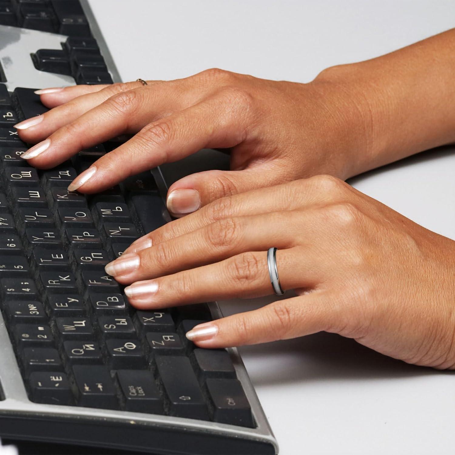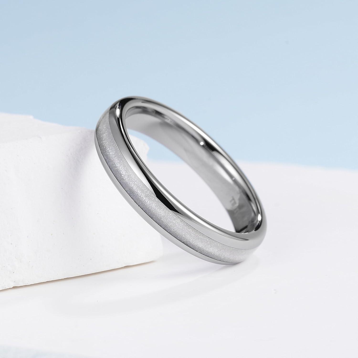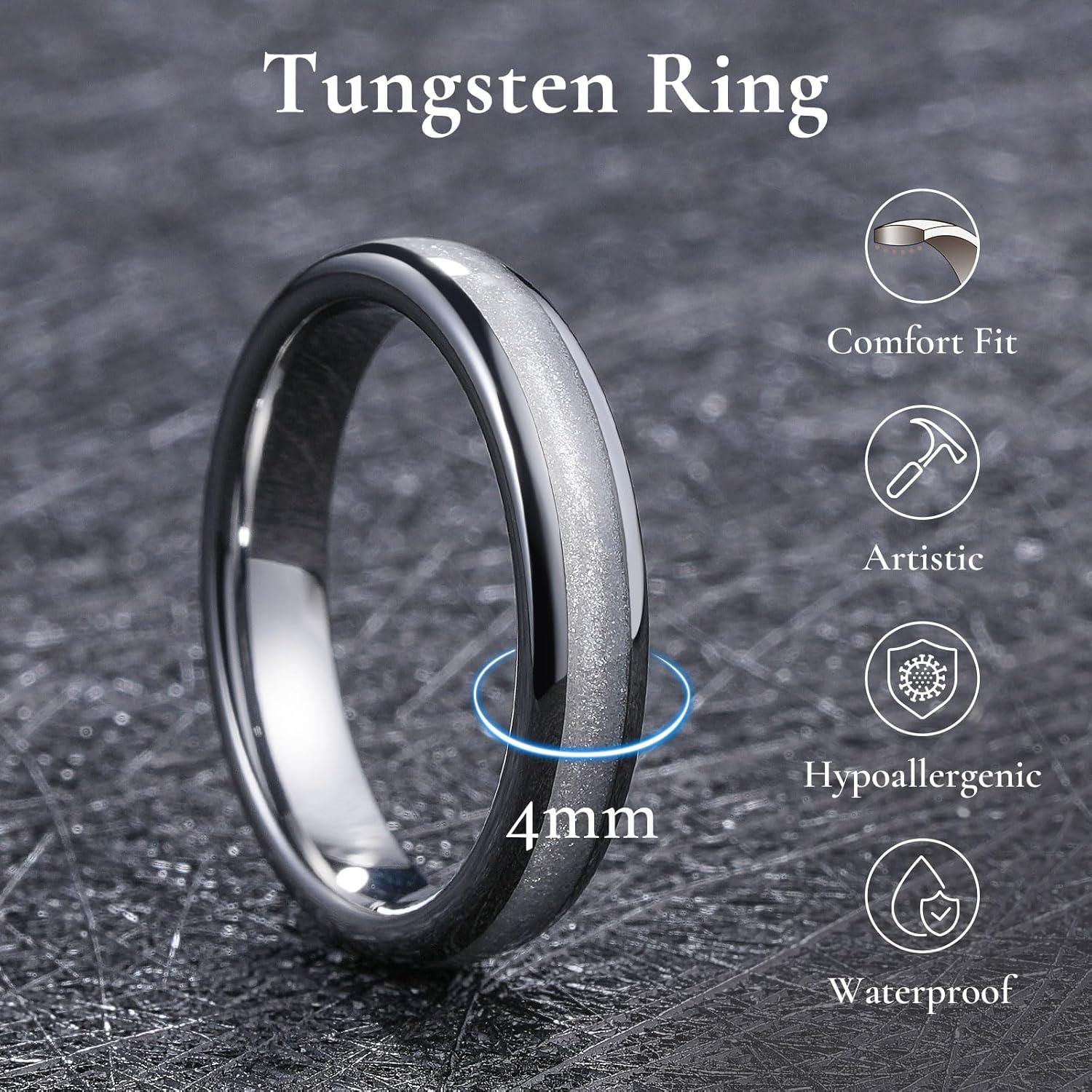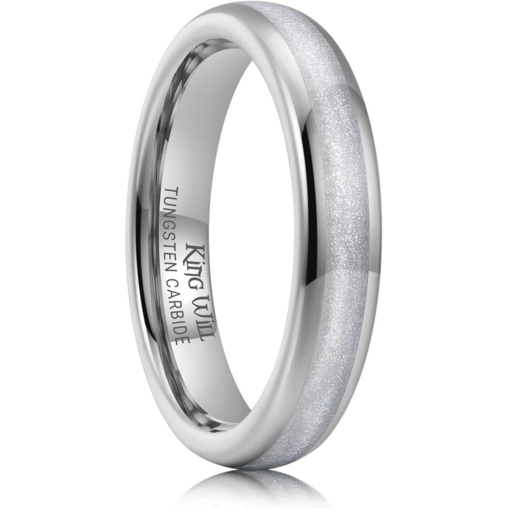 King Will Mens 4mm/6mm/8mm Black Tungsten Wedding Band Blue Green Purple Fragments Inlay Rings Engagement Band Comfort Fit(Silver&White-4mm)