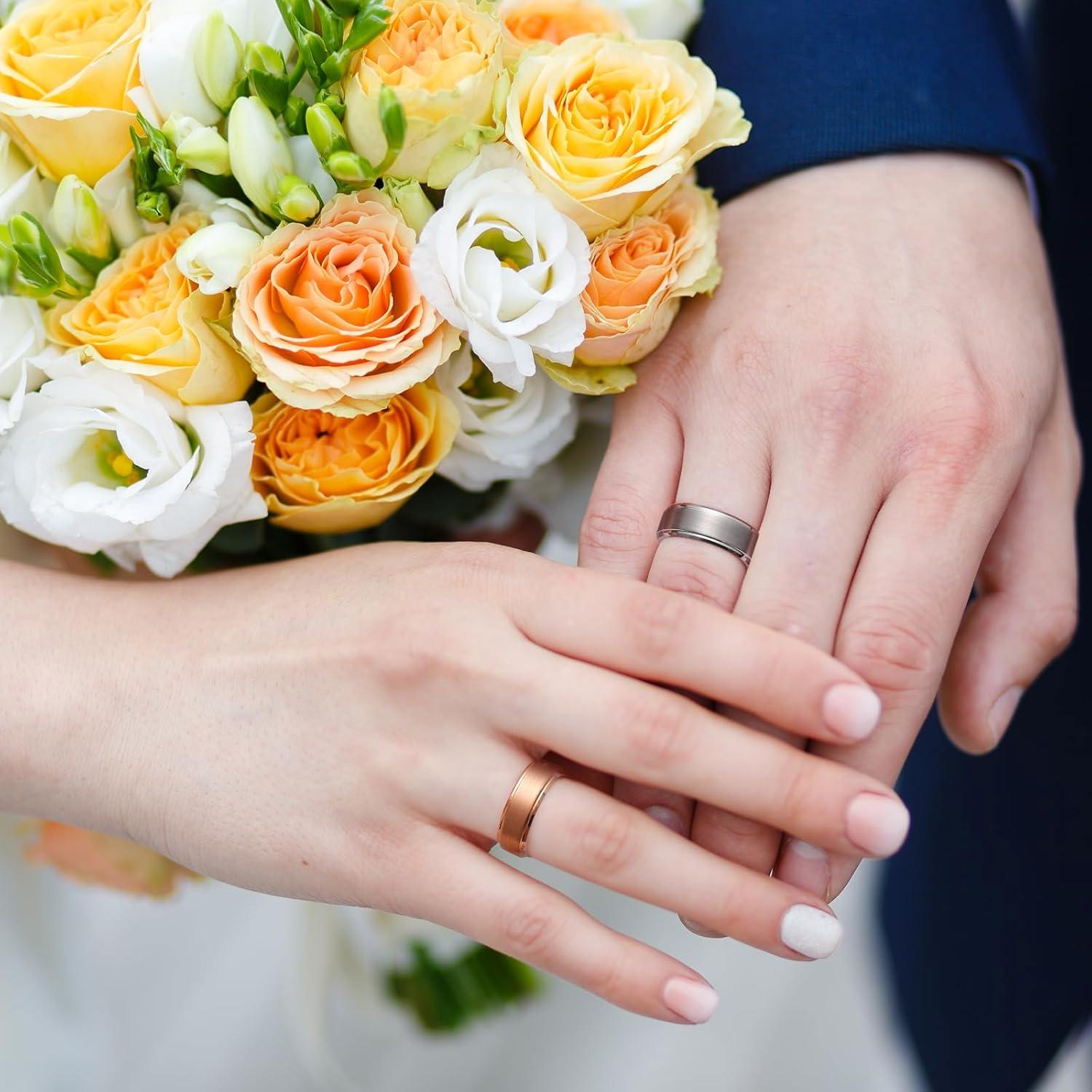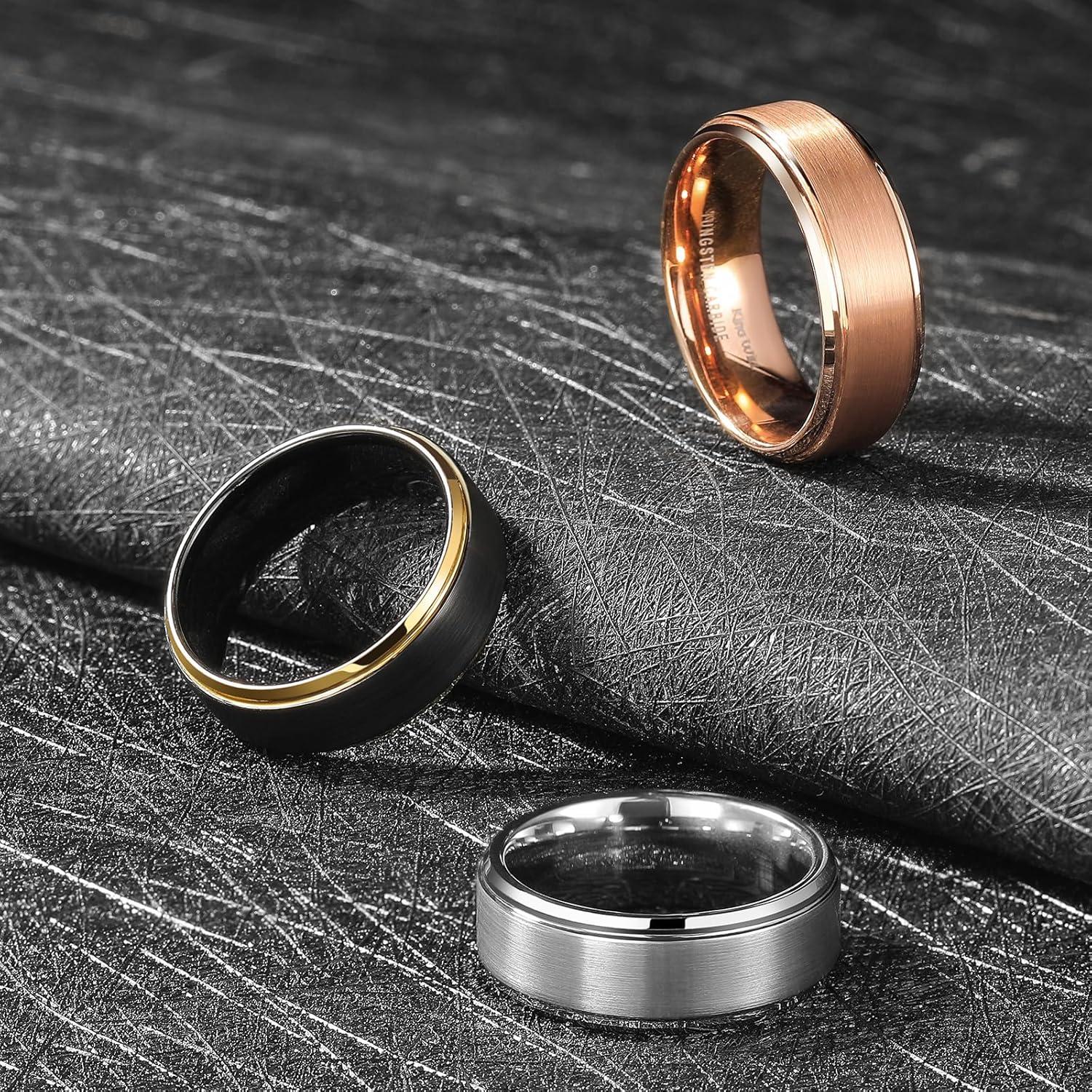 King Will Mens Brushed Wedding Band, Two Tone Matte Step Edges/Pipe Cut, Tungsten Carbide Anniversary Promise Rings Comfort Fit(Rose Gold/Silver/Black&Gold)