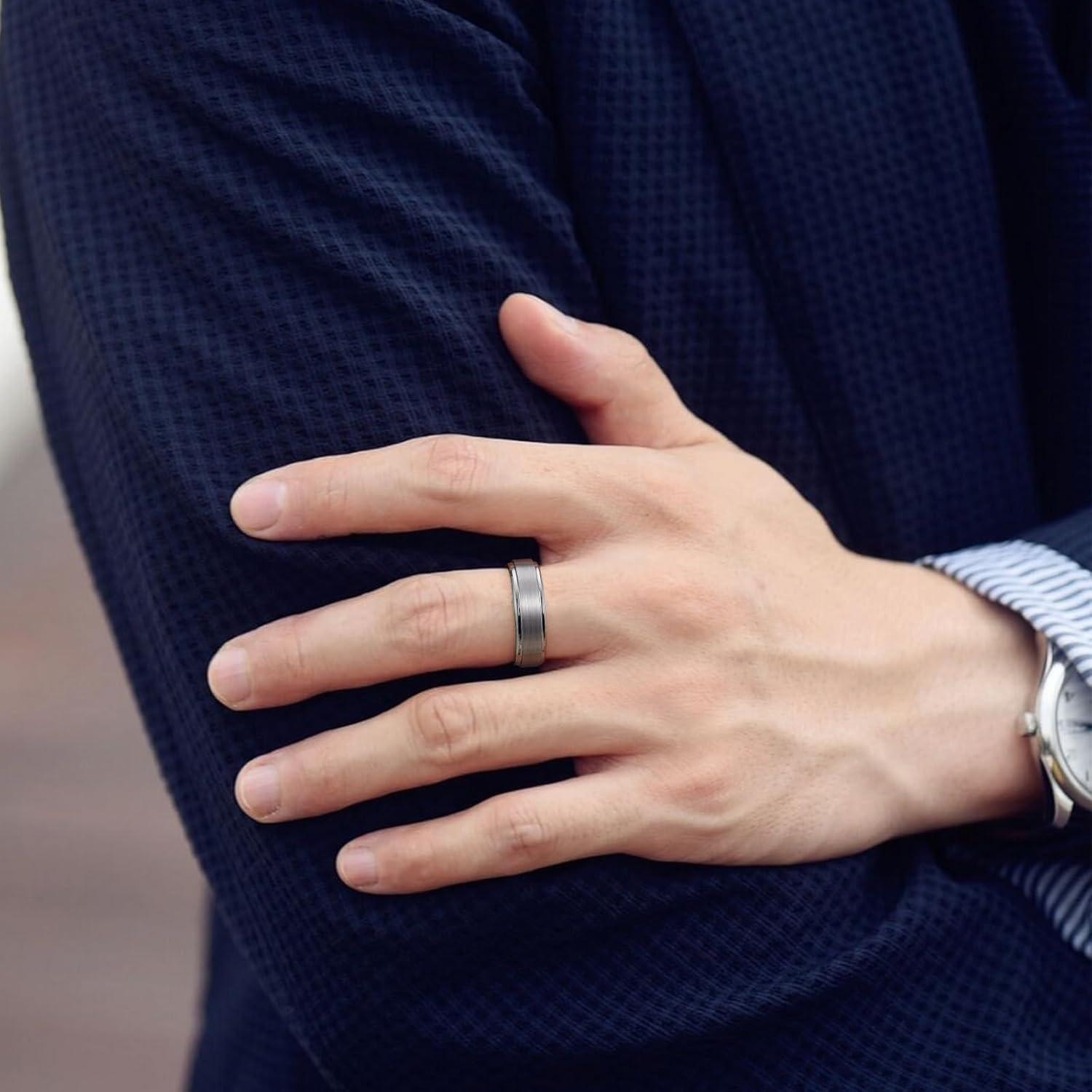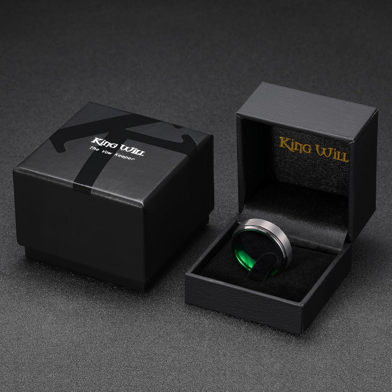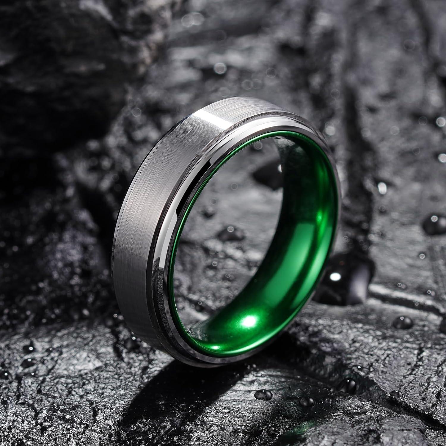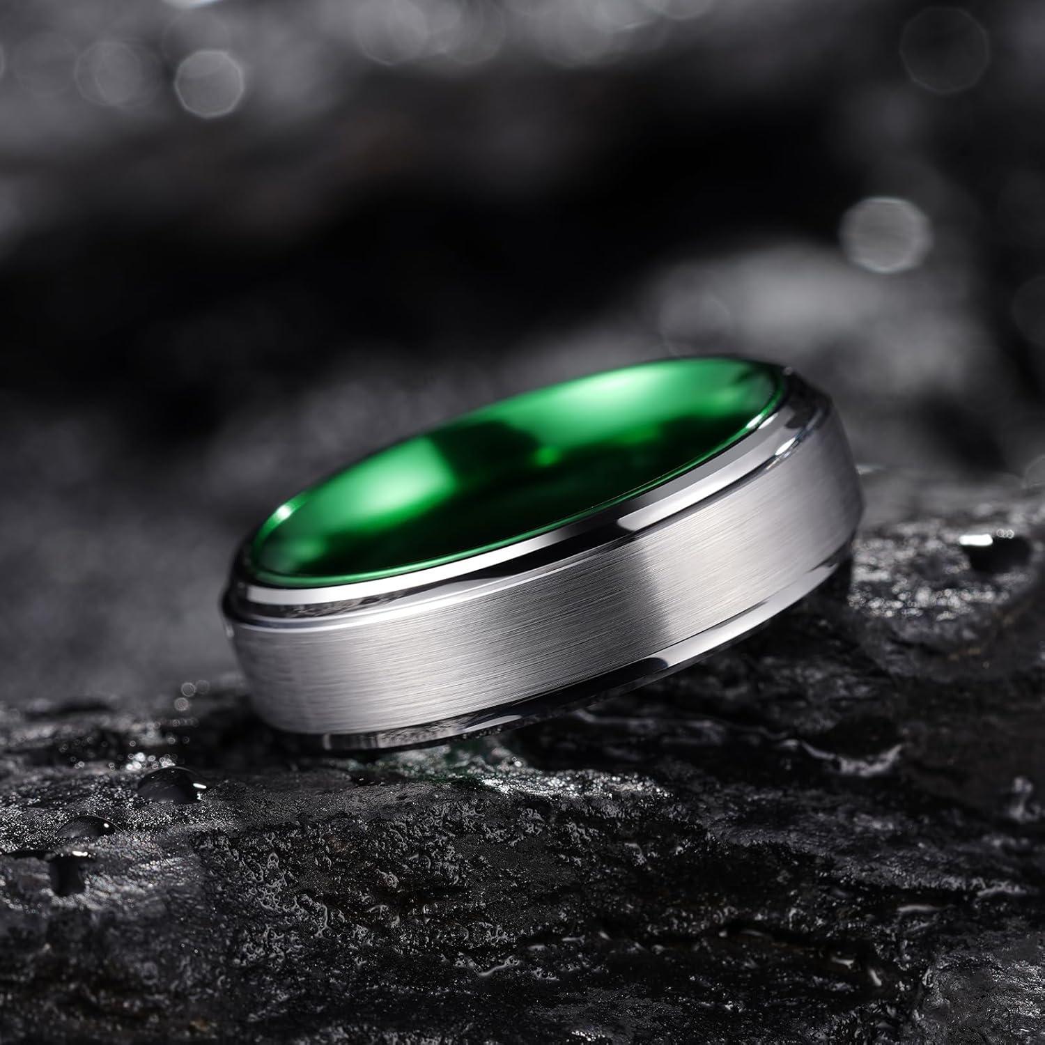 King Will Mens Brushed Wedding Band, Two Tone Matte Step Edges/Pipe Cut, Tungsten Carbide Anniversary Promise Rings Comfort Fit(Silver&Green-7mm)