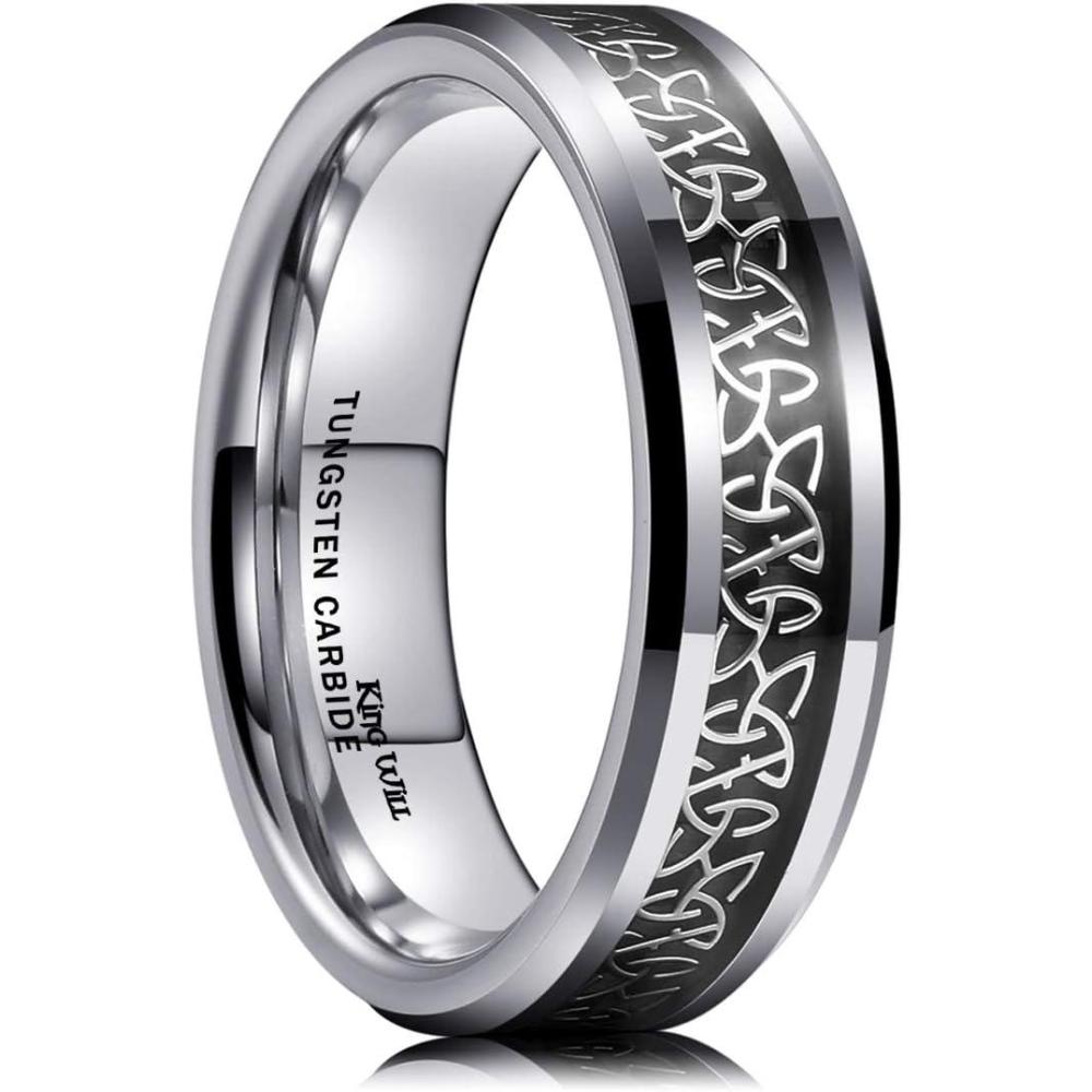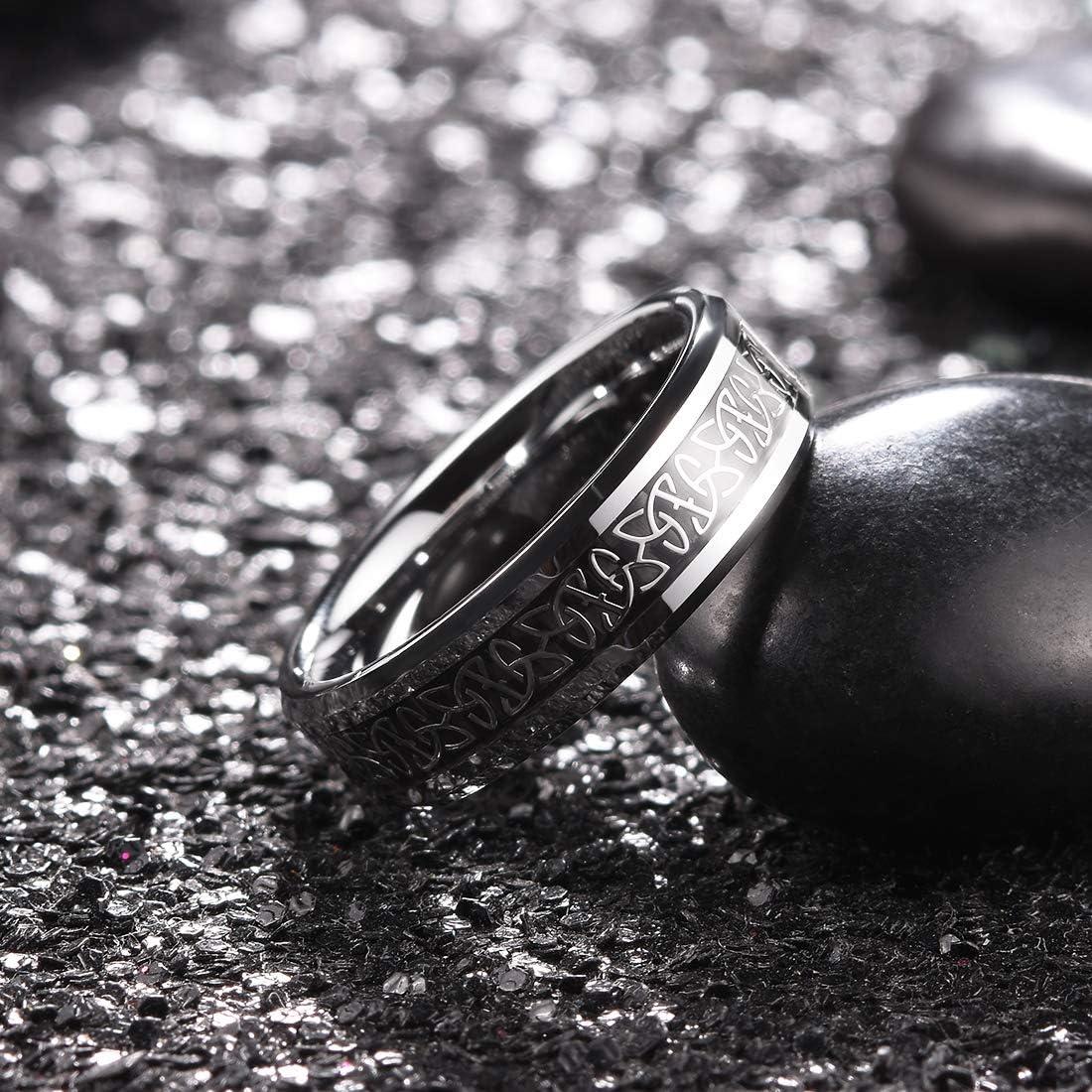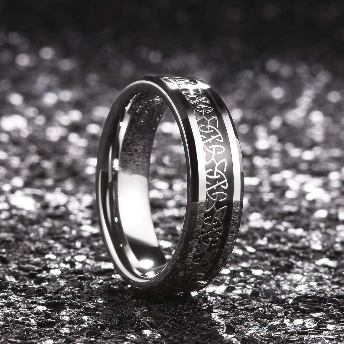 King Will Men’s Cetic Knot Tungsten Carbide Ring, Opal/Carbon Fiber Inlay 6mm/8mm Wedding Band for Men Engagement Ring Comfort Fit(6mm)