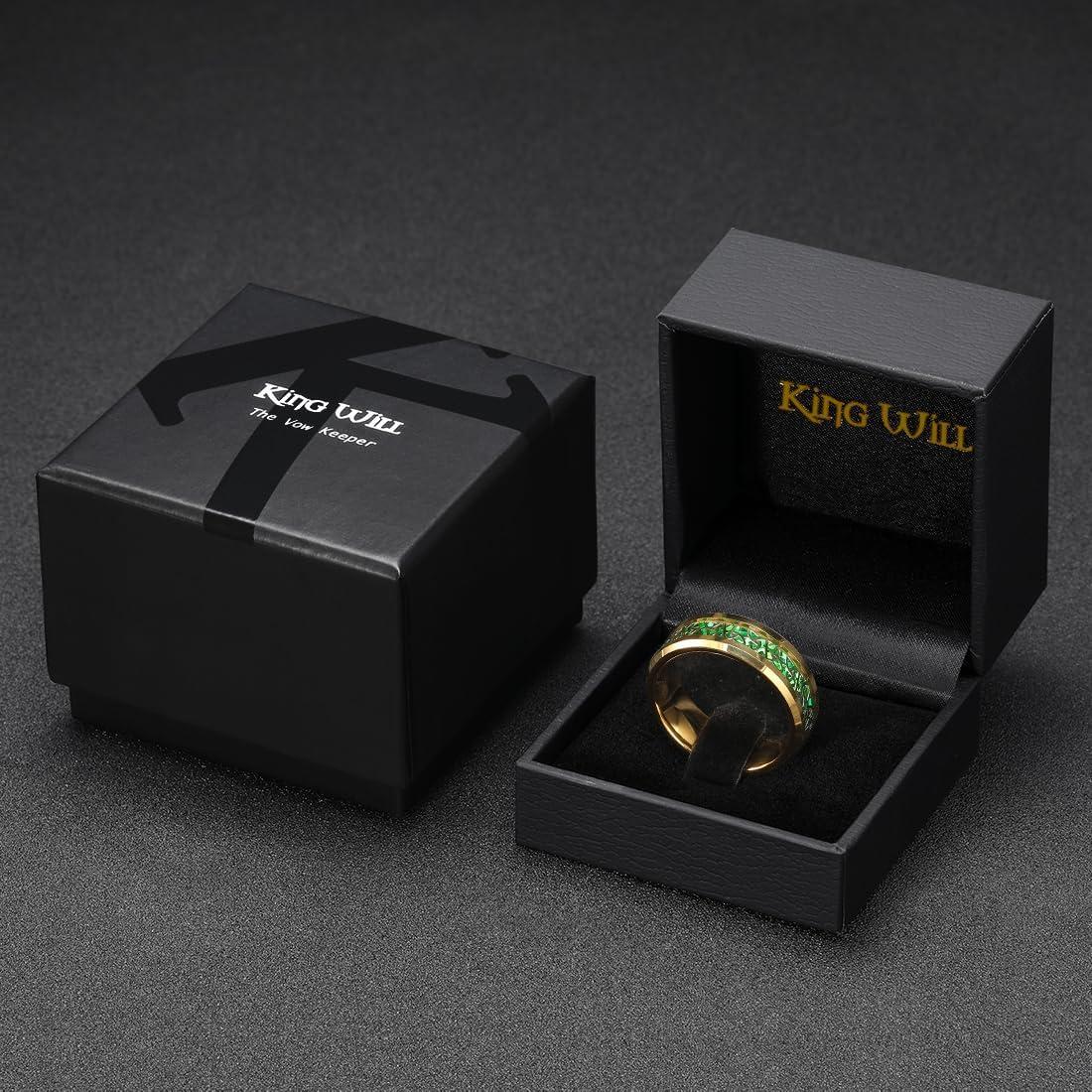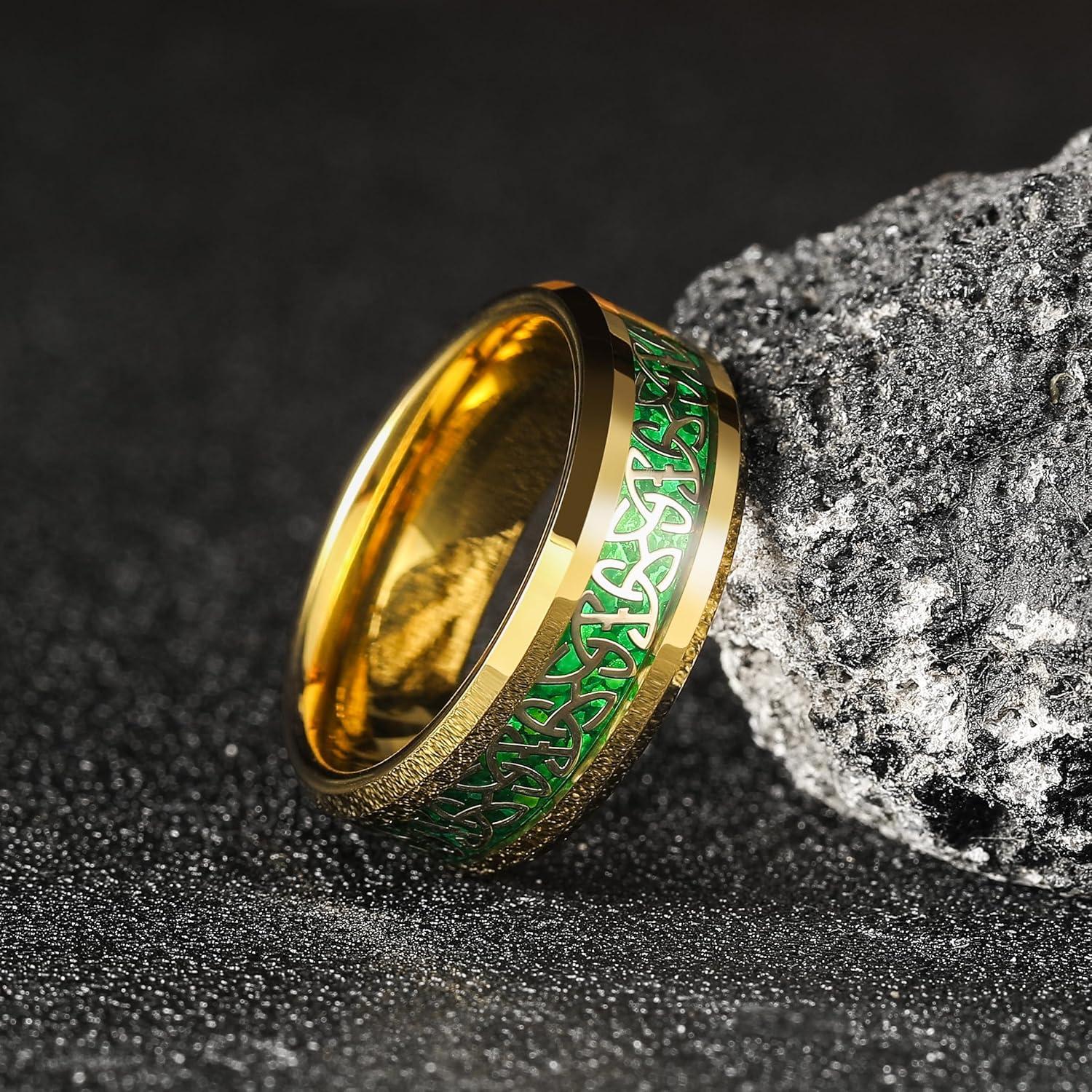 King Will Men’s Cetic Knot Tungsten Carbide Ring, Opal/Carbon Fiber Inlay 6mm/8mm Wedding Band for Men Engagement Ring Comfort Fit(Gold&Green-8mm)