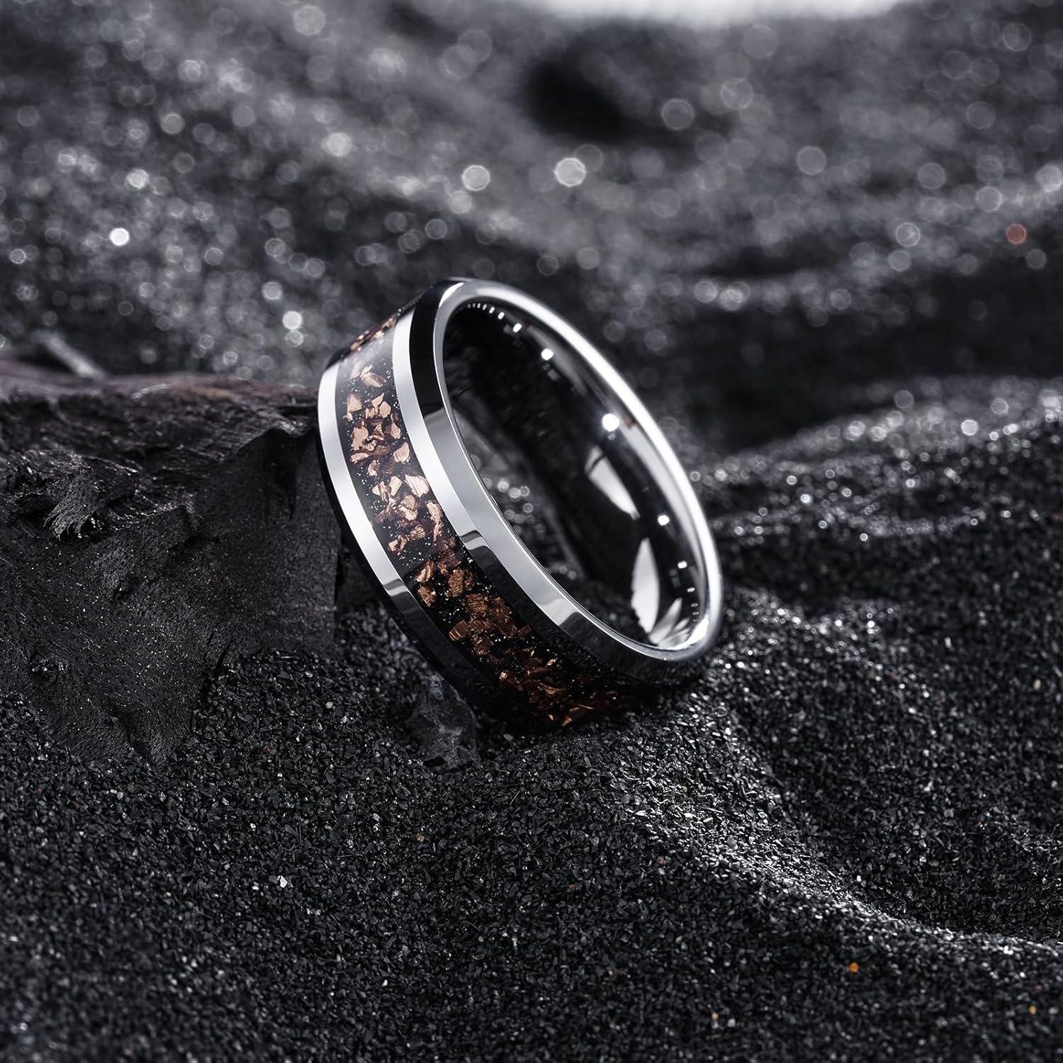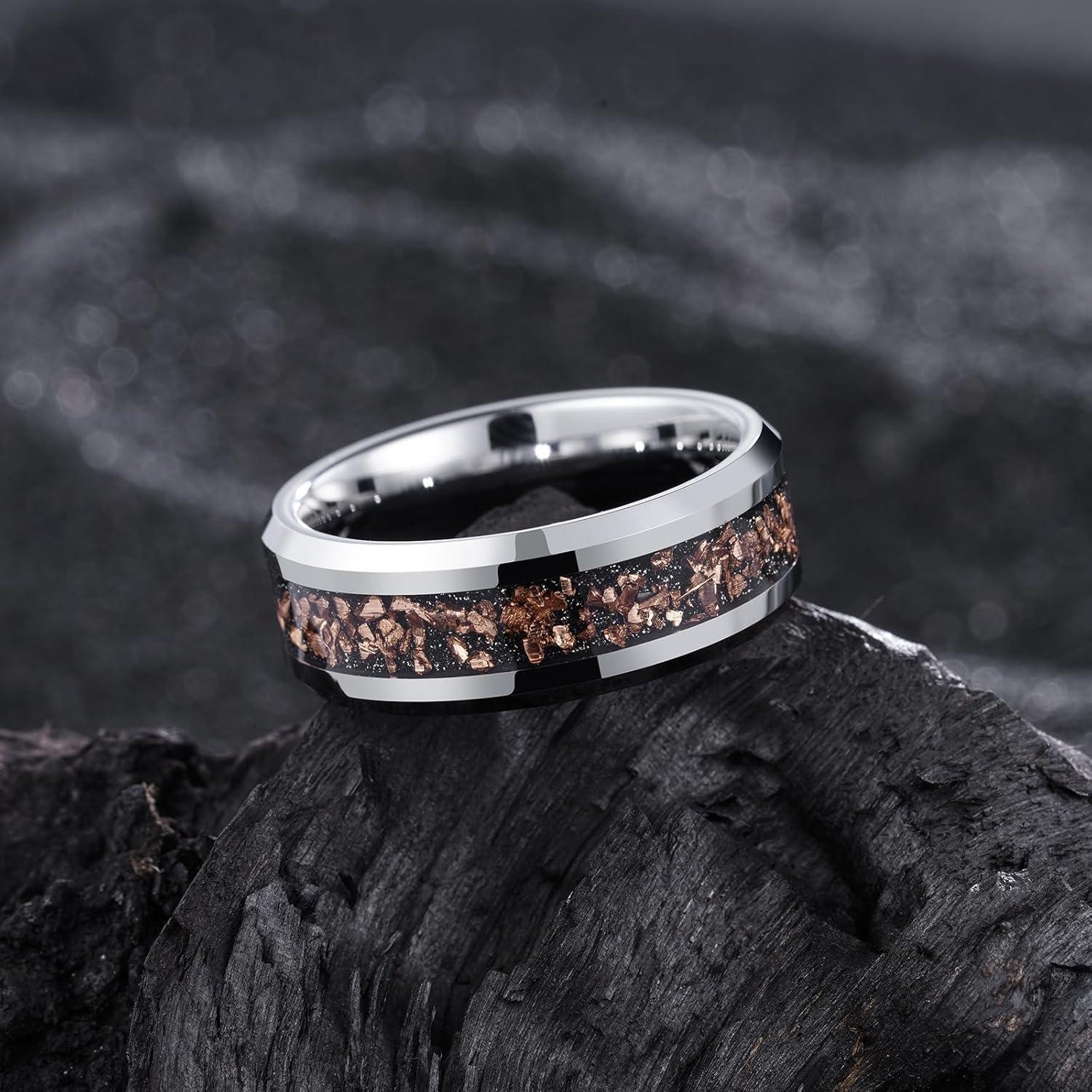 King Will Mens Meteorite Tungsten Wedding Bands, 6mm/8mm Width, Black/Silver Engagement Rings for Couples, Beveled Edge Promise Ring for Women Comfort Fit(Silver&Rose Gold-8mm)
