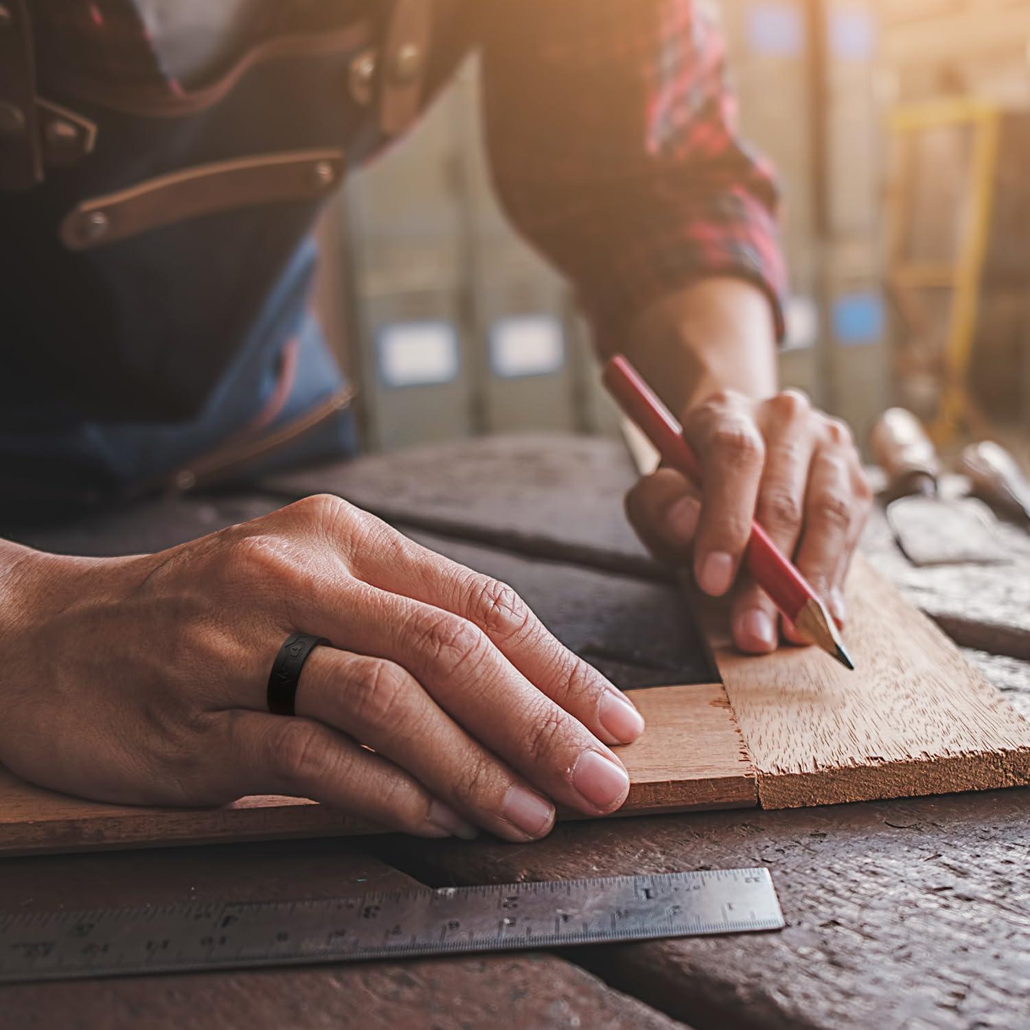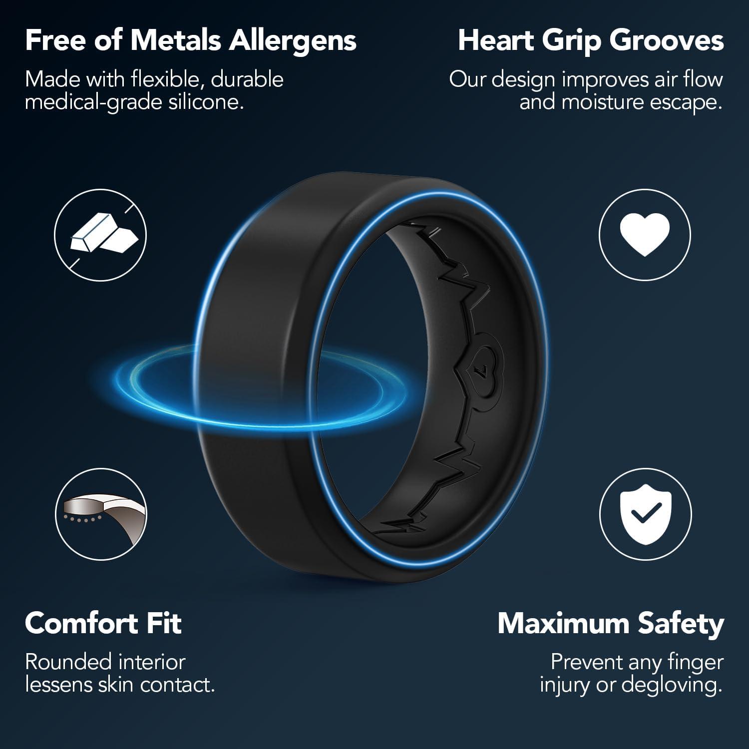 3. King Will Men’s Silicone Wedding Bands, 8mm Comfort Fit with Unique Inner Groove Design, Rubber Engagement Rings for Daily Wear and Activities – 1/4 Variety Multipack(Black&Black)