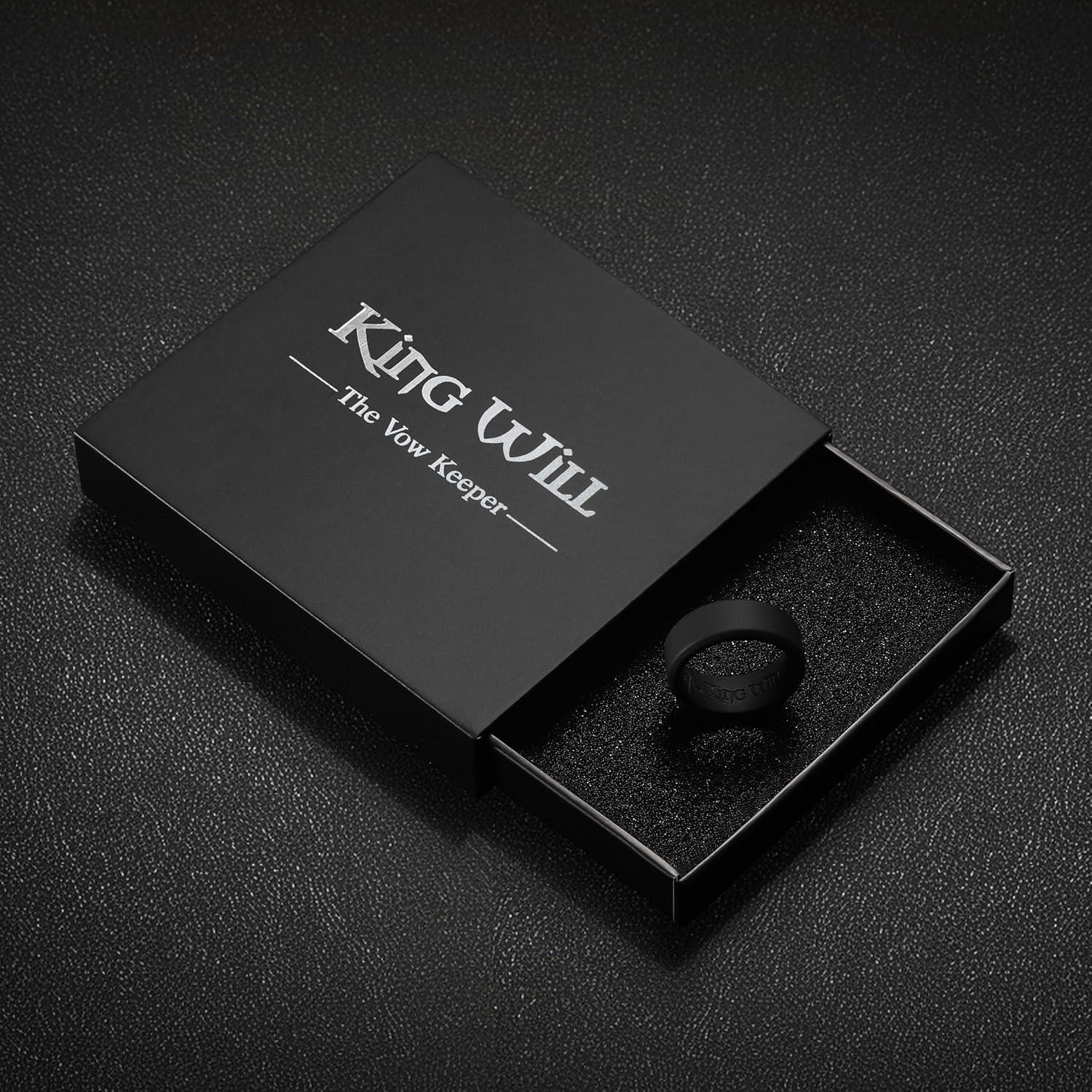 imageKing Will Mens Silicone Wedding Bands 8mm Comfort Fit with Unique Inner Groove Design Rubber Engagement Rings for Daily Wear and Activities  14 Variety MultipackBlackBlack