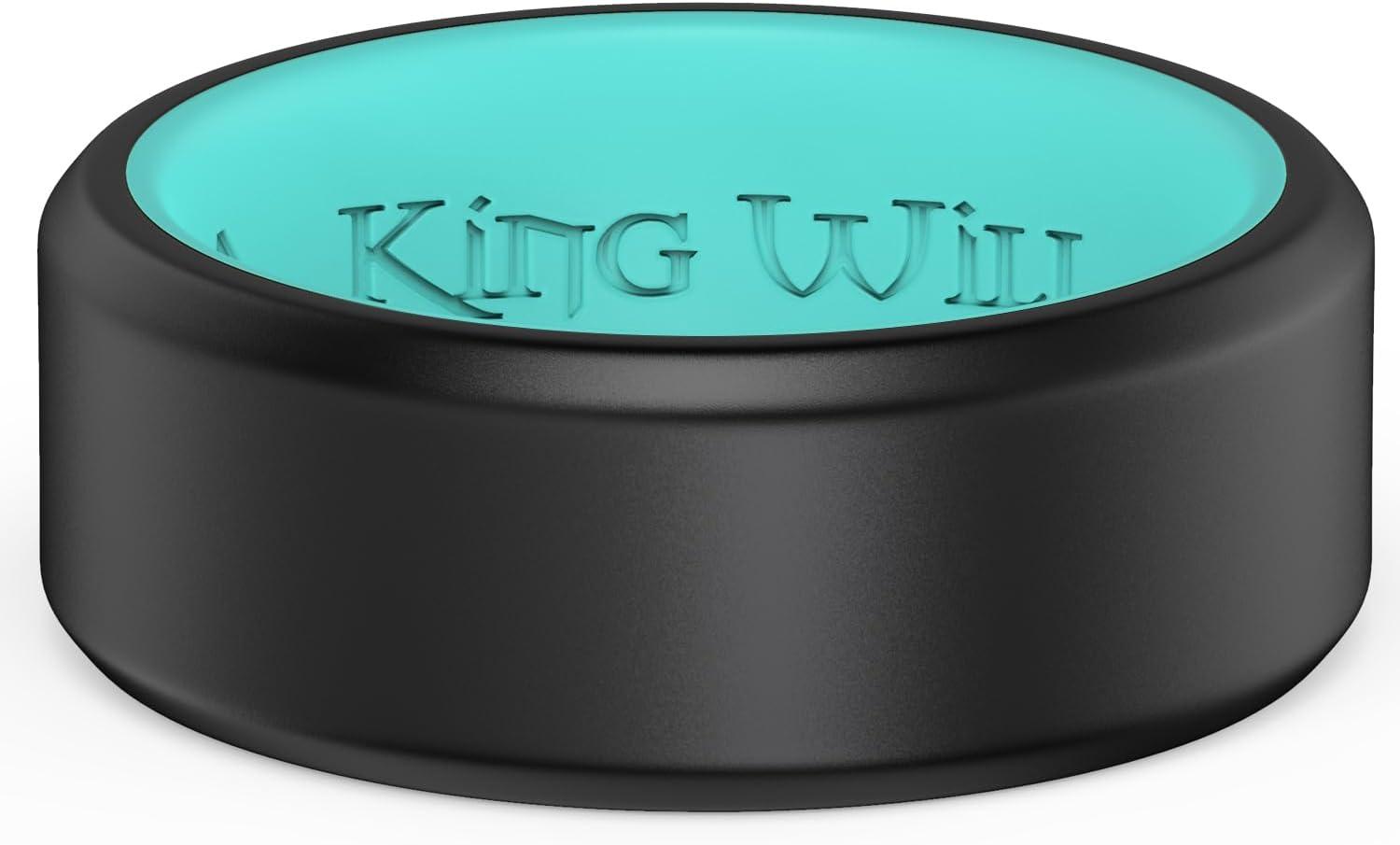 3. King Will Men’s Silicone Wedding Bands, 8mm Comfort Fit with Unique Inner Groove Design, Rubber Engagement Rings for Daily Wear and Activities – 1/4 Variety Multipack(Black&Mint Blue)
