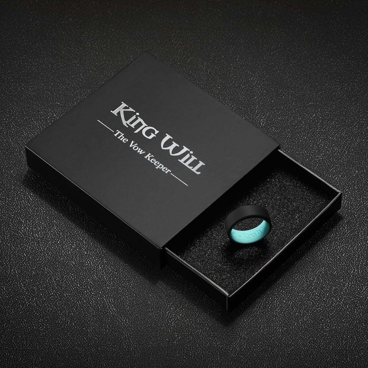 imageKing Will Mens Silicone Wedding Bands 8mm Comfort Fit with Unique Inner Groove Design Rubber Engagement Rings for Daily Wear and Activities  14 Variety MultipackBlackMint Blue