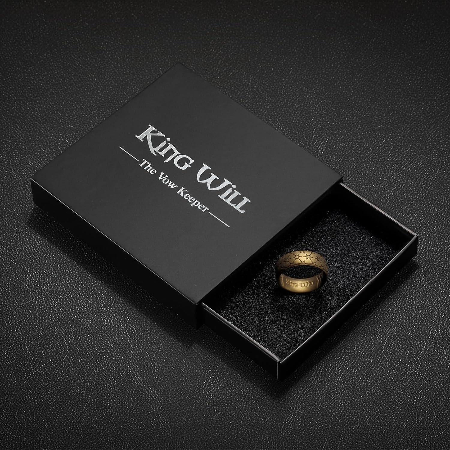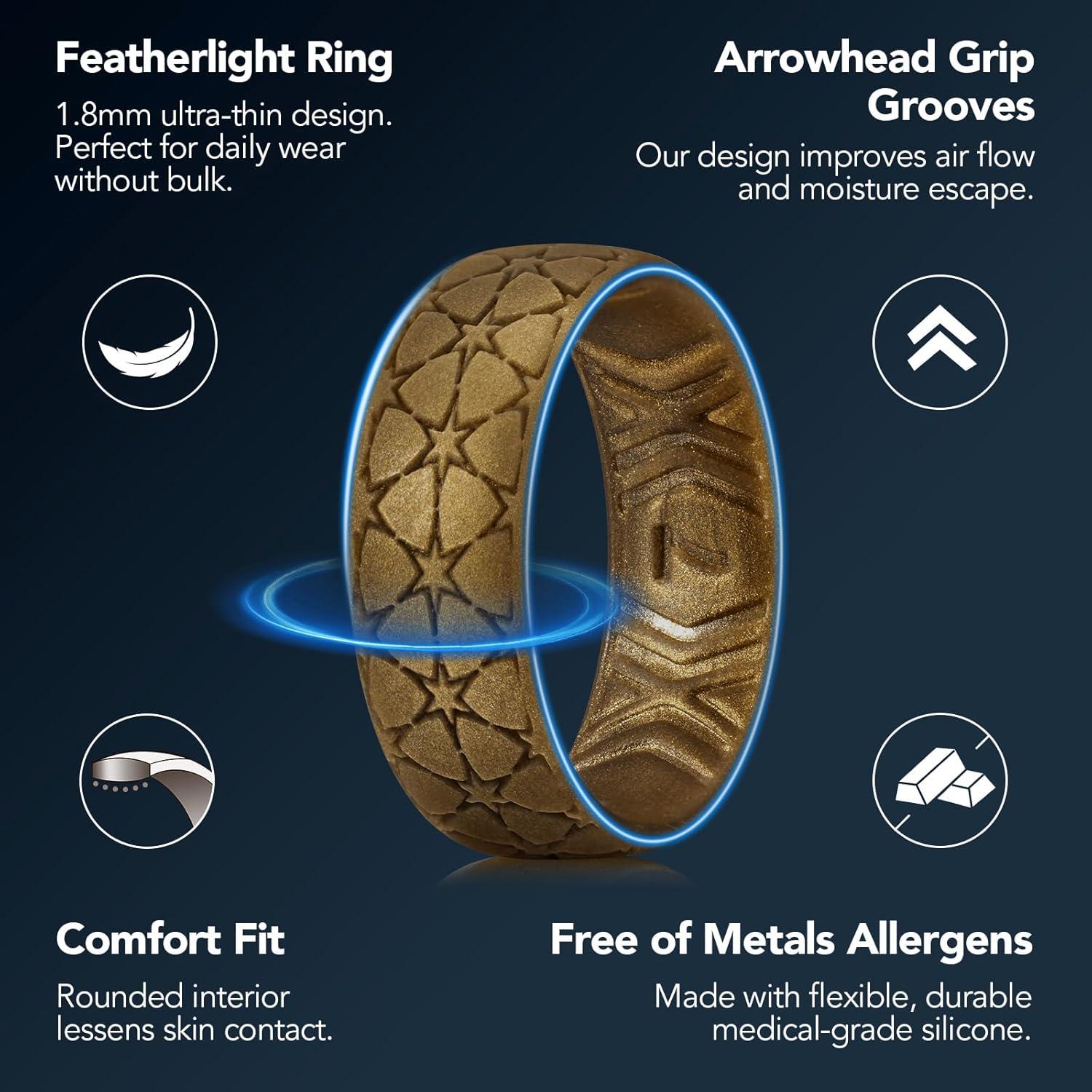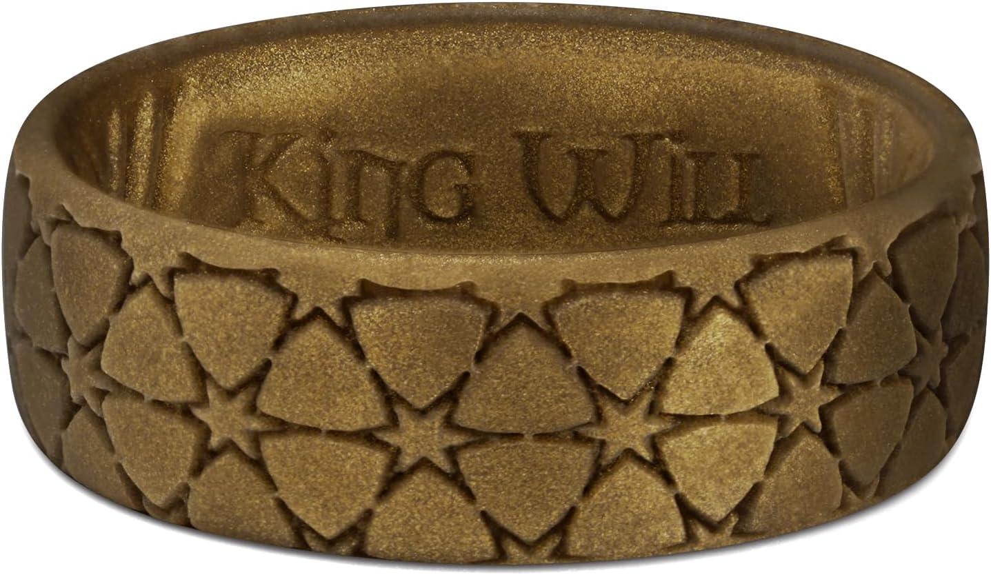 King Will Mens Silicone Wedding Rings Star/Flower Pattern Rubber Wedding Bands(B-Metallic brown)