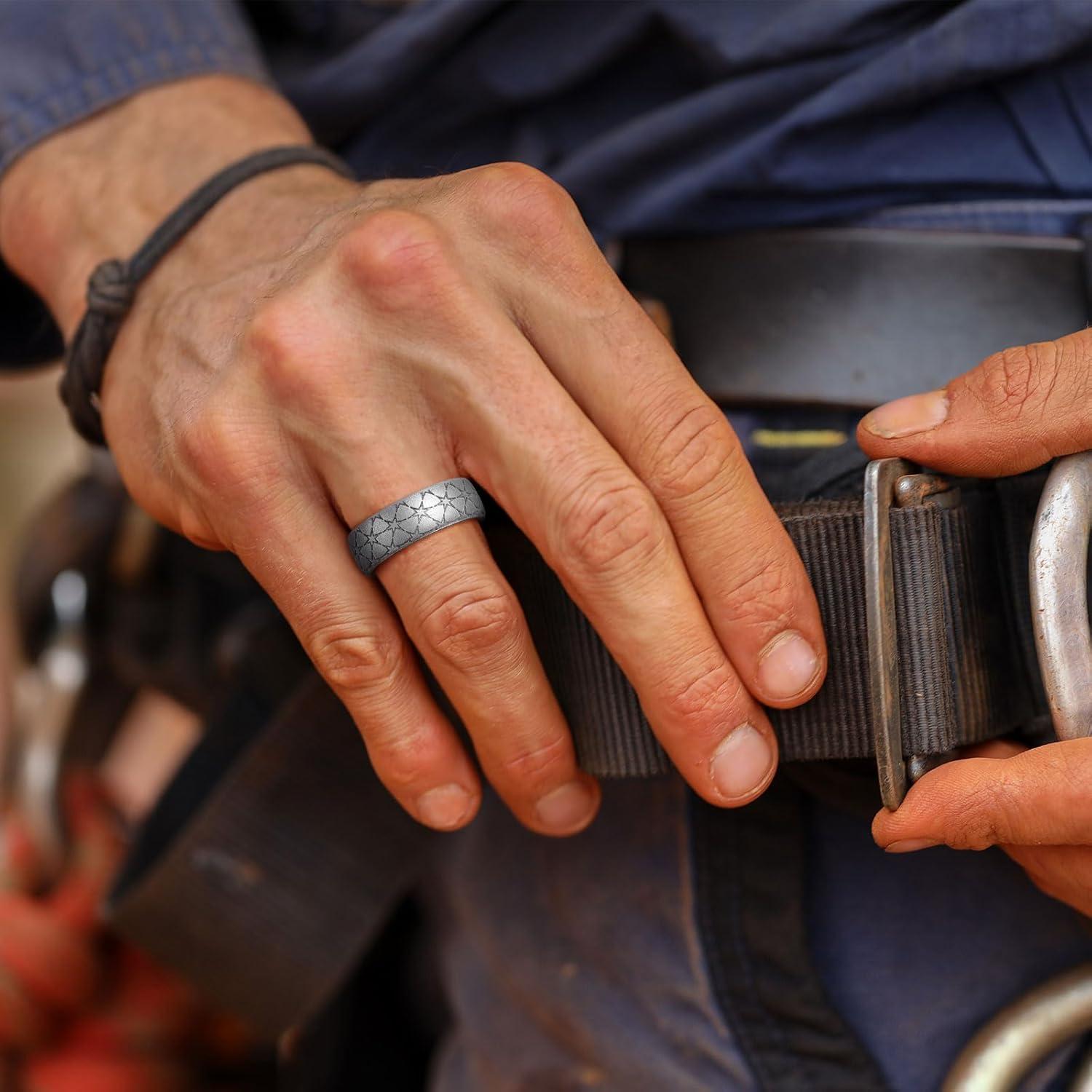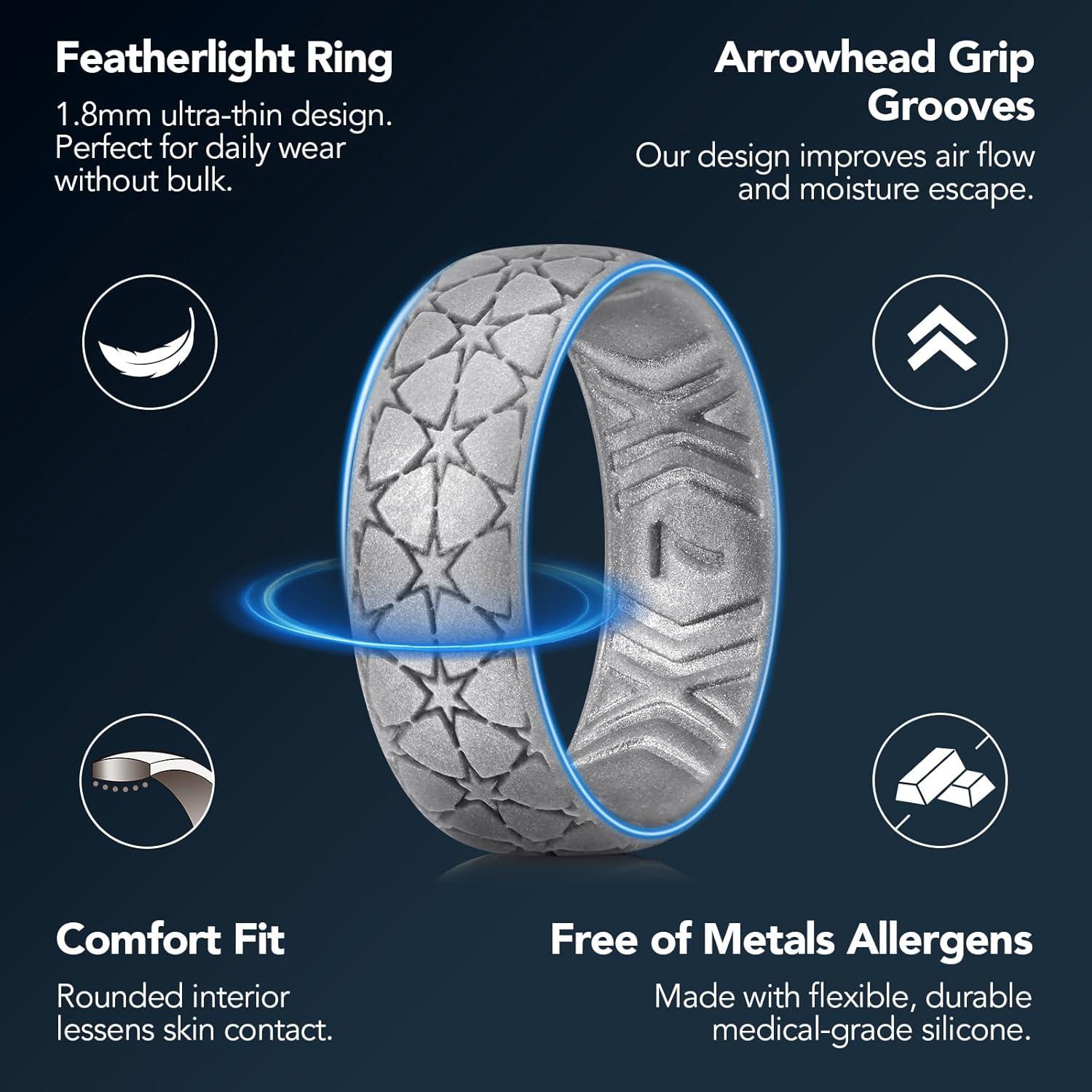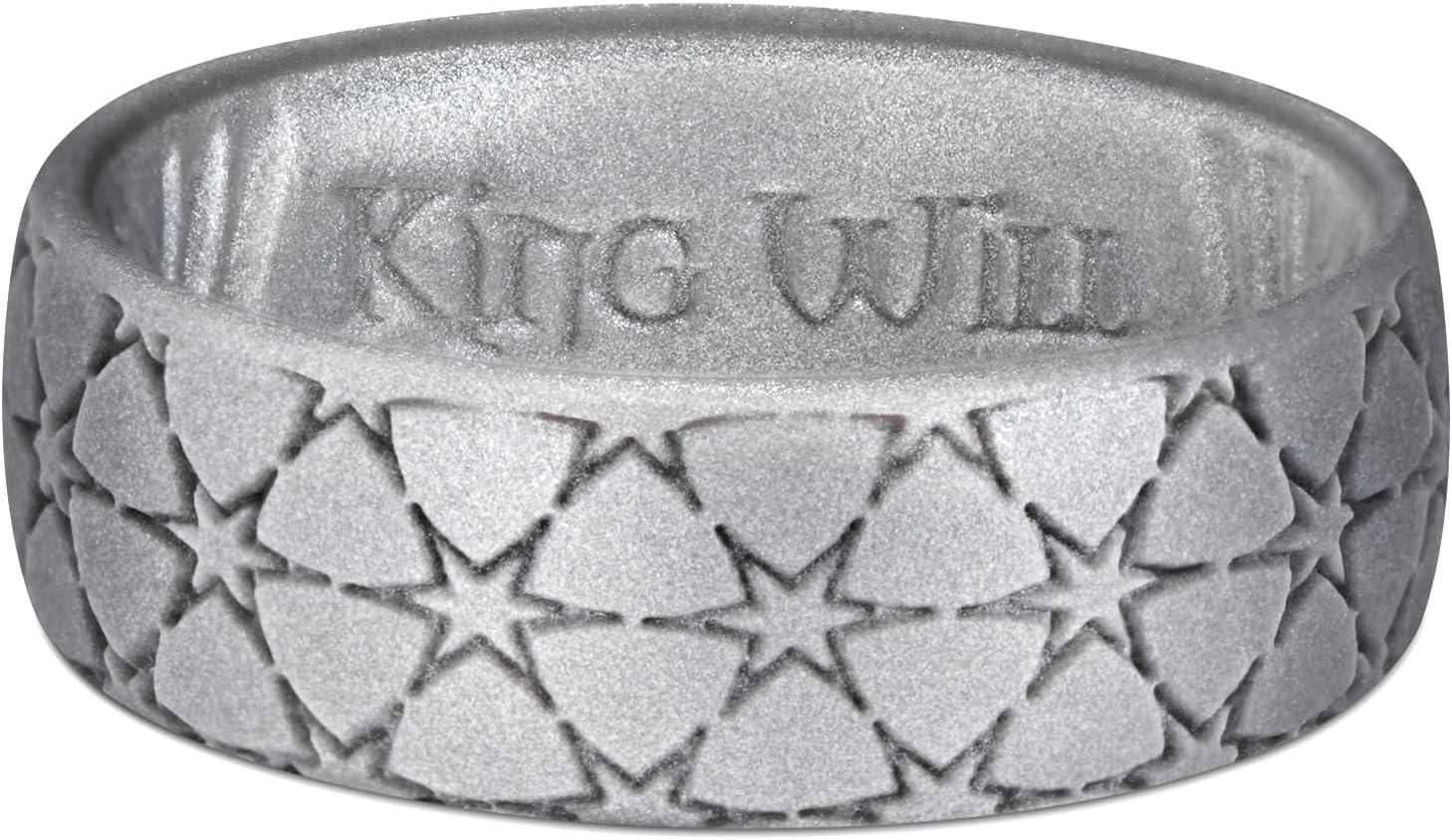 King Will Mens Silicone Wedding Rings Star/Flower Pattern Rubber Wedding Bands(B-Metallic Dark Gray)