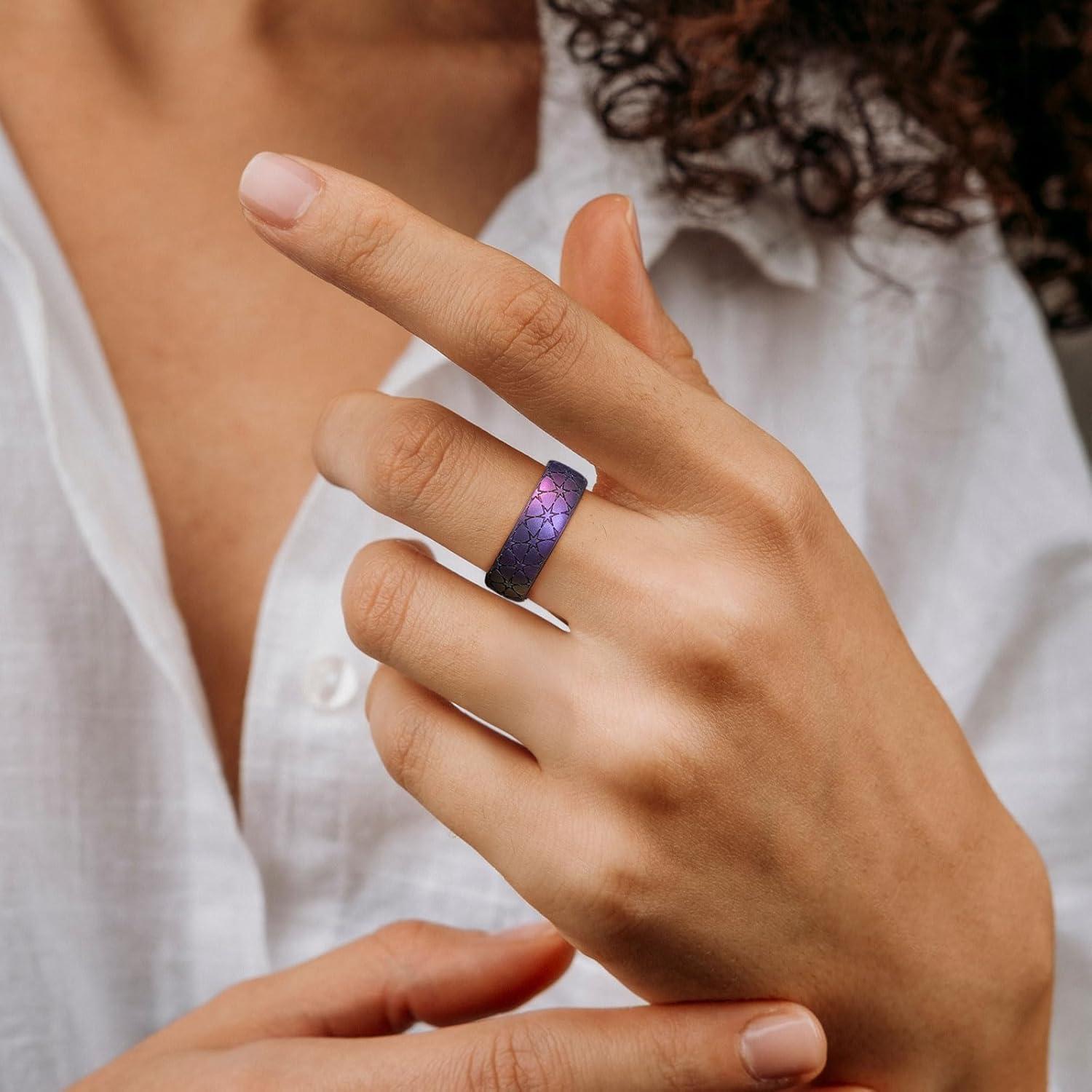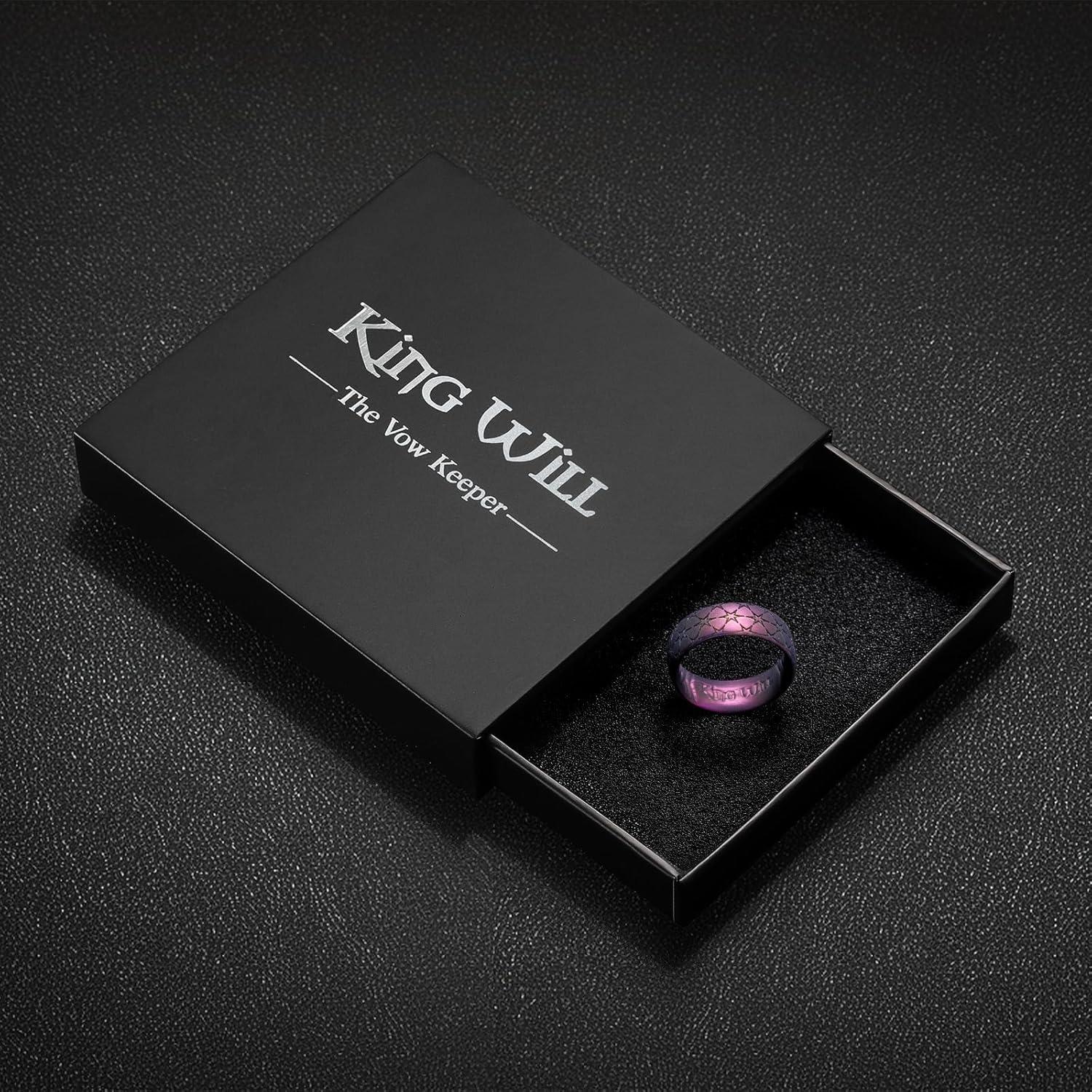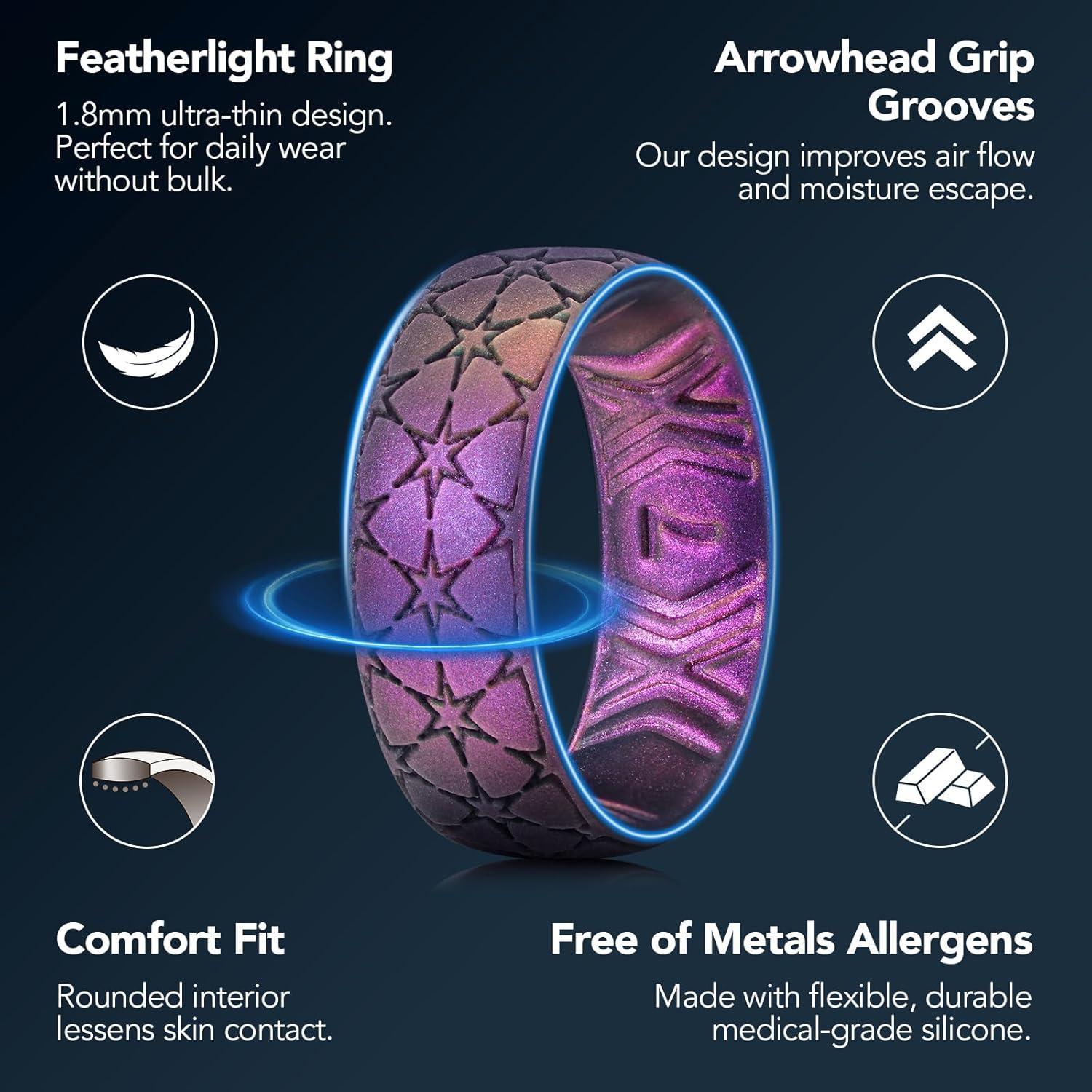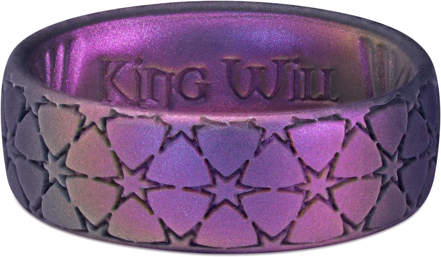 King Will Mens Silicone Wedding Rings Star/Flower Pattern Rubber Wedding Bands(B-Starry Sky Purple)