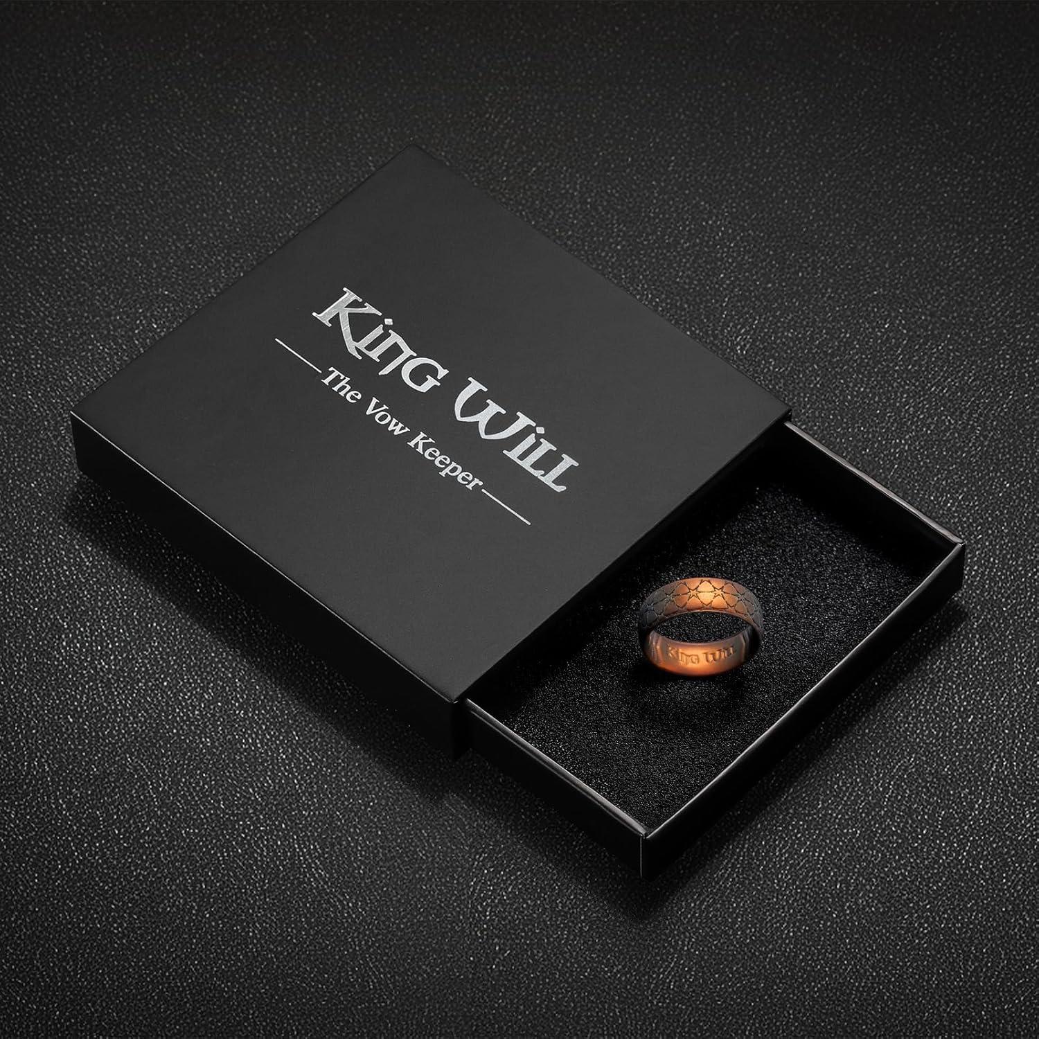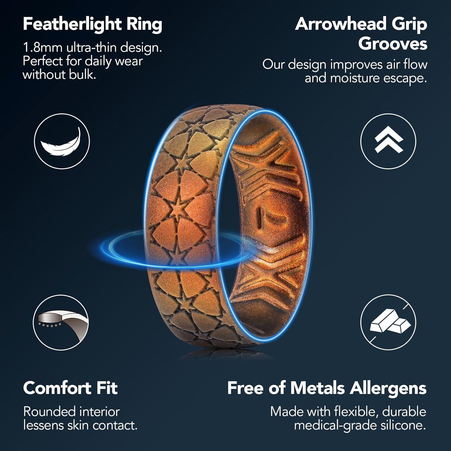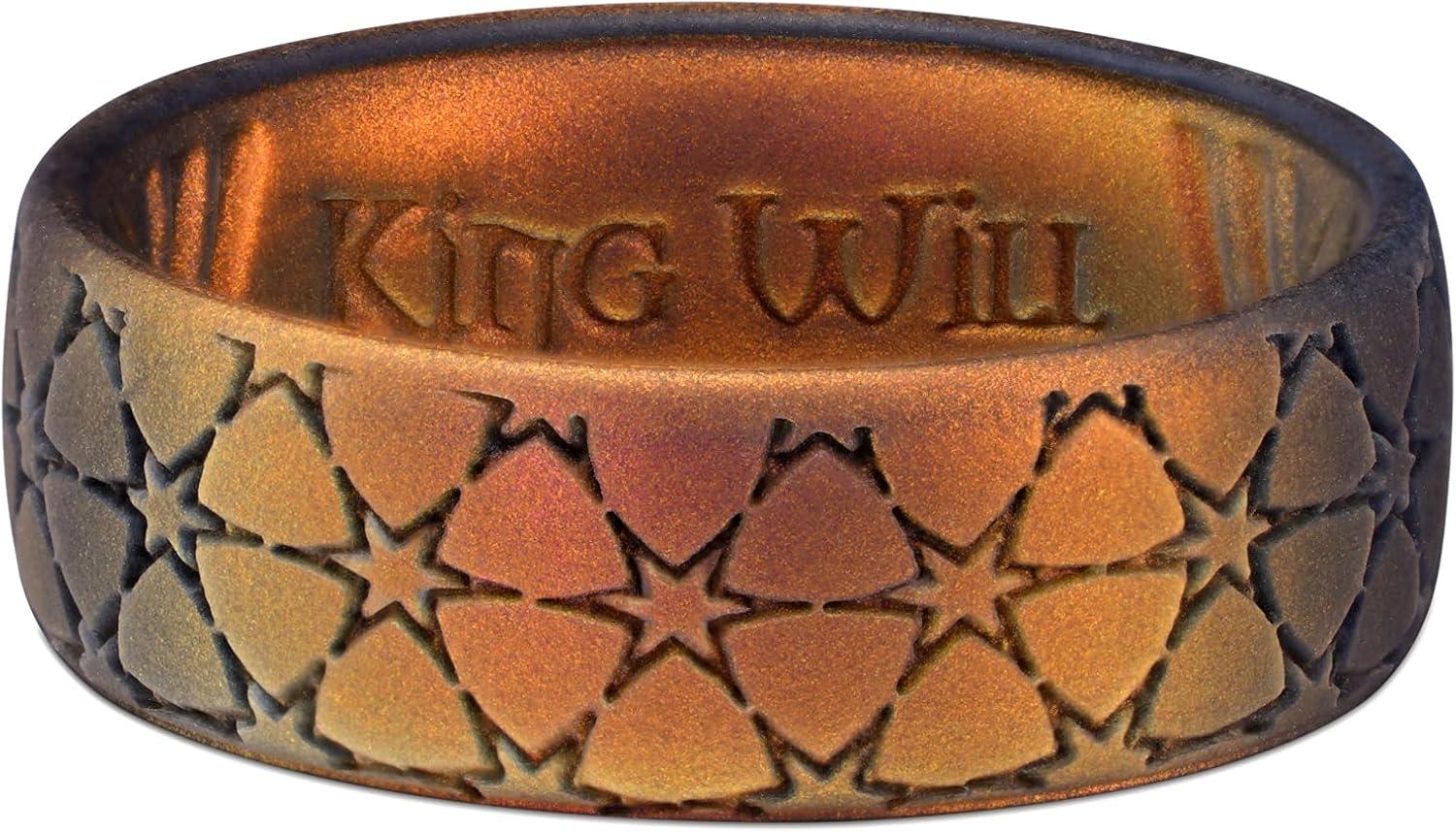King Will Mens Silicone Wedding Rings Star/Flower Pattern Rubber Wedding Bands(B-Sunset orange)
