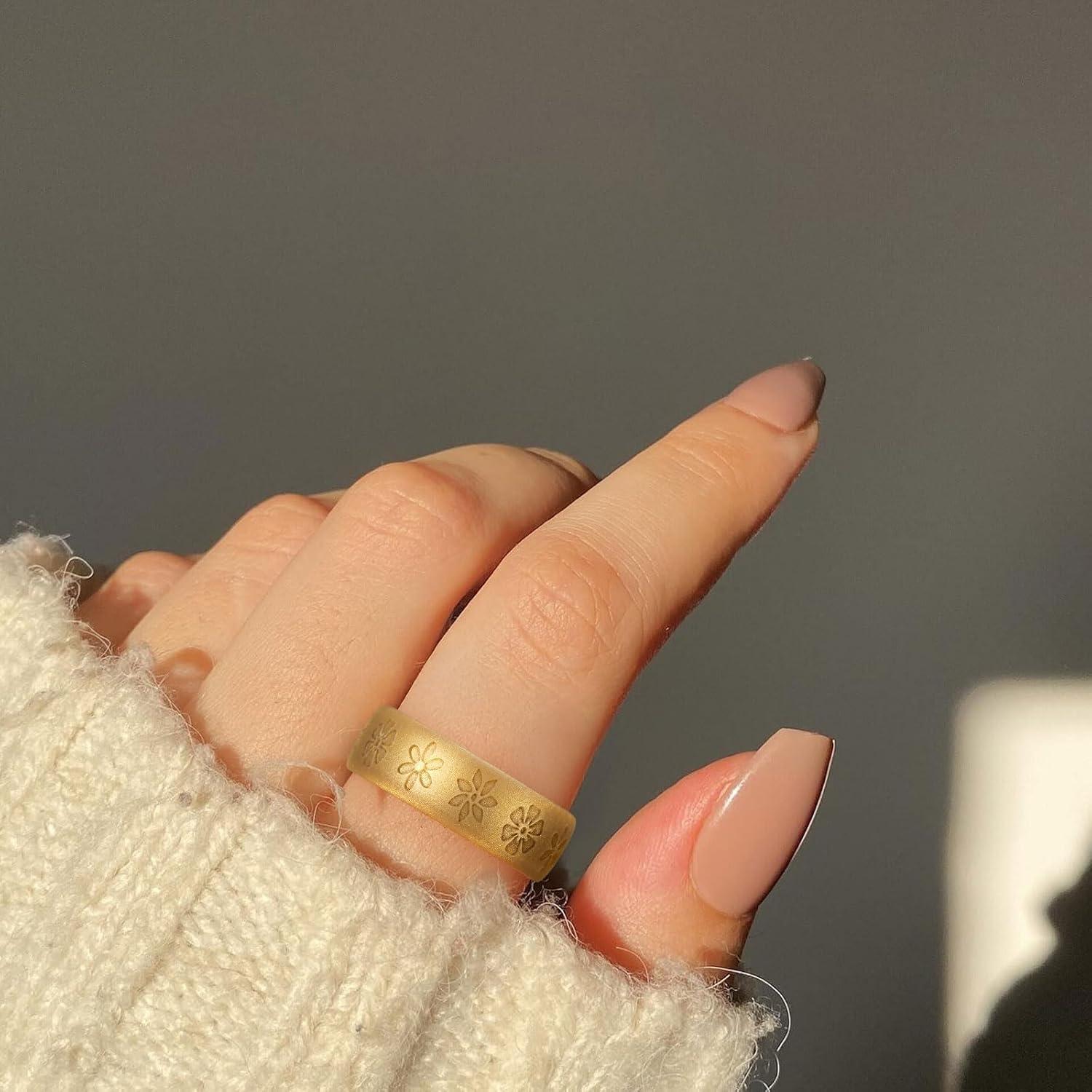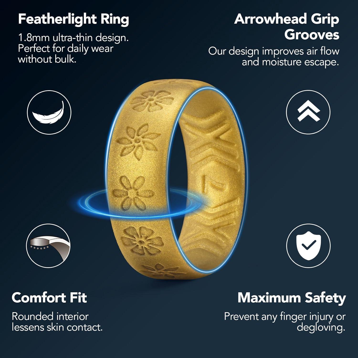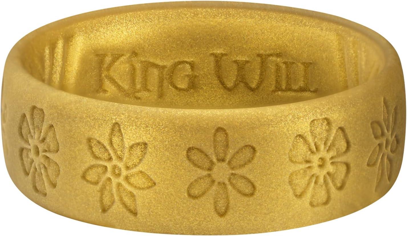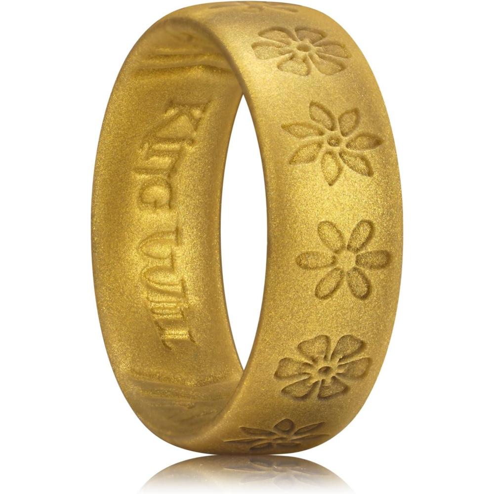 King Will Mens Silicone Wedding Rings Star/Flower Pattern Rubber Wedding Bands(C-Gold)