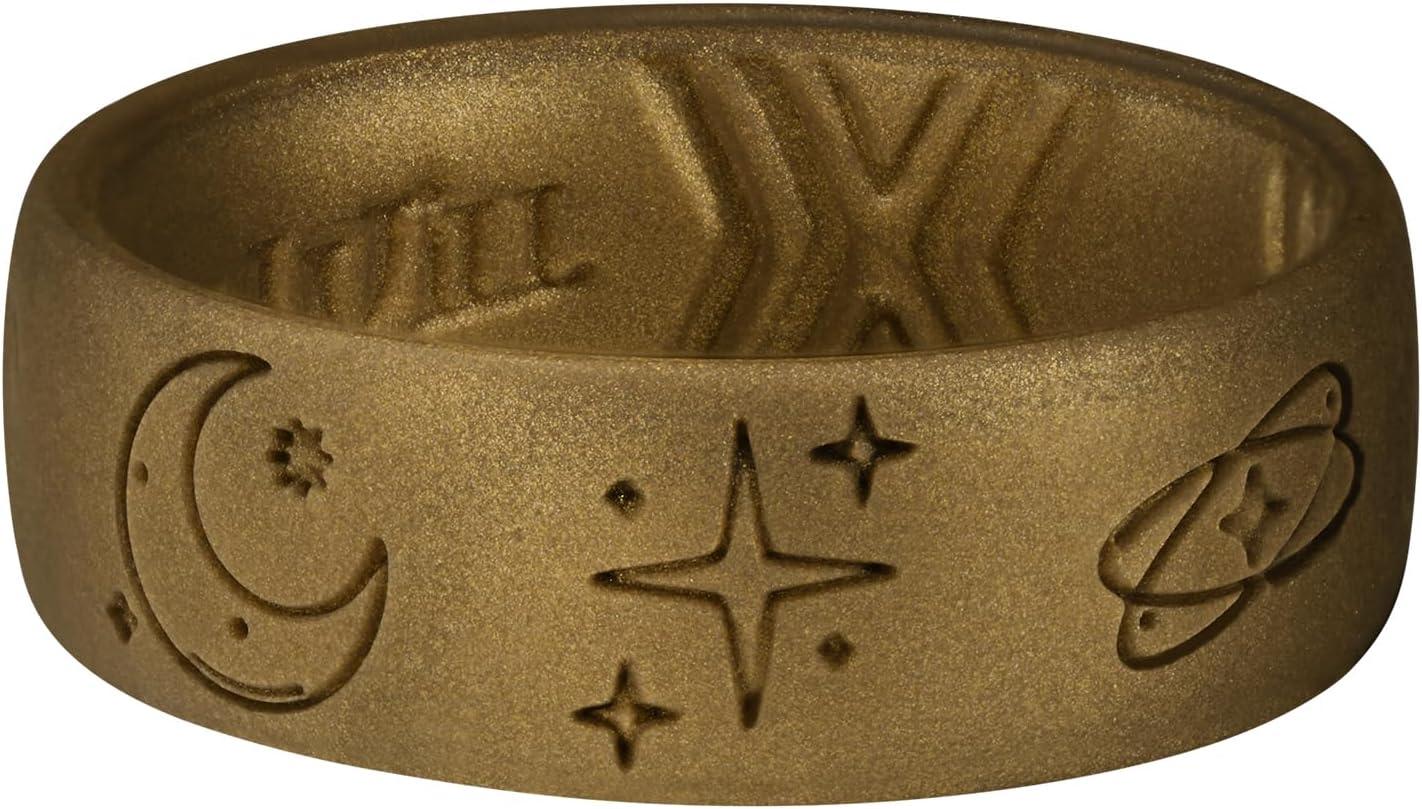 King Will Mens Silicone Wedding Rings Star & Moon Unisex Rubber Wedding Bands(Metallic brown)