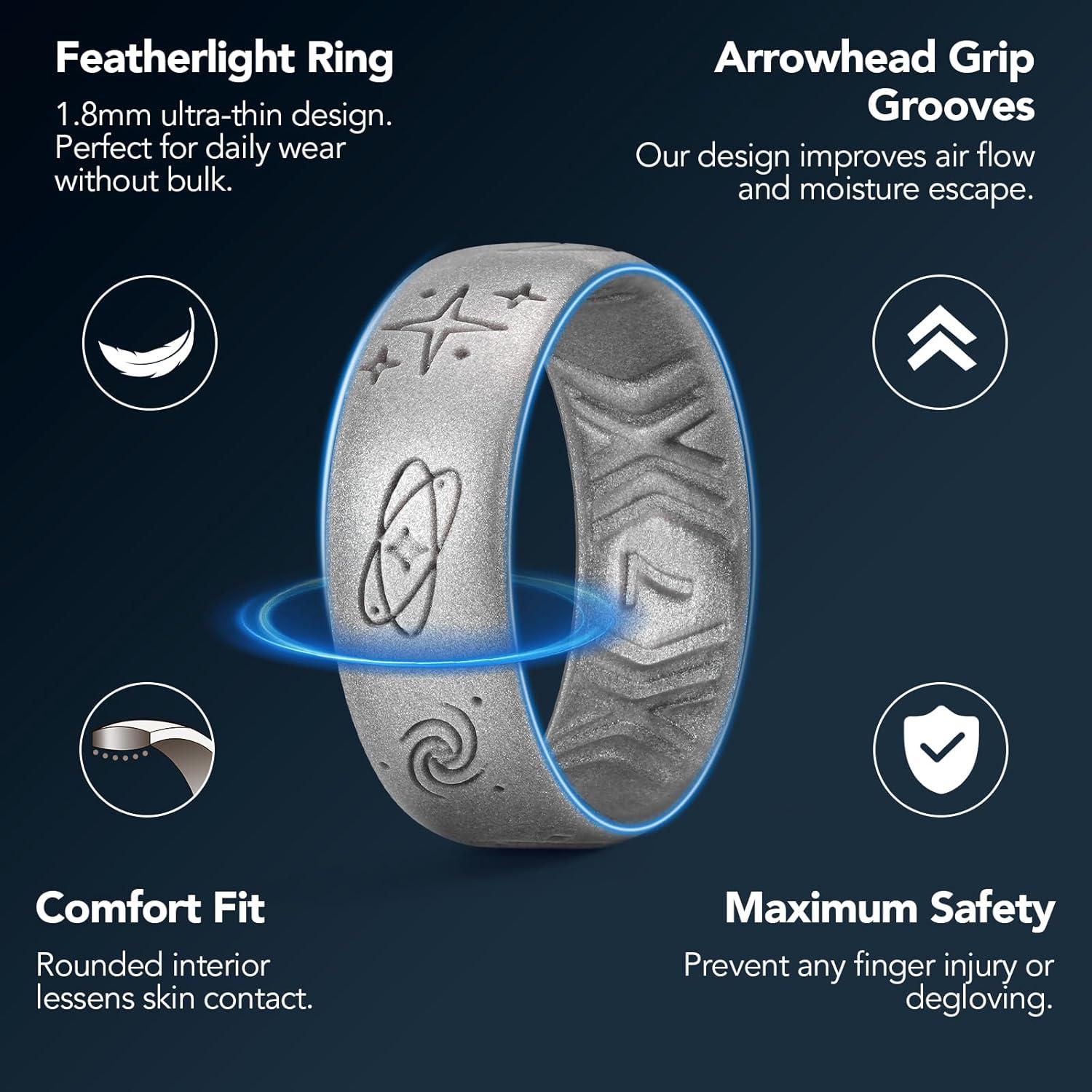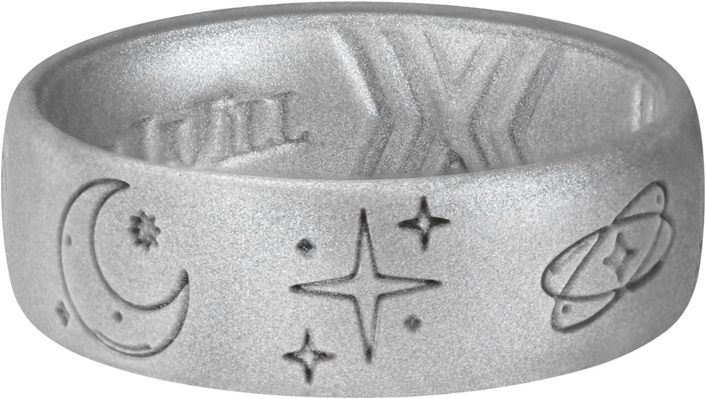 King Will Mens Silicone Wedding Rings Star & Moon Unisex Rubber Wedding Bands(Metallic Dark Gray)