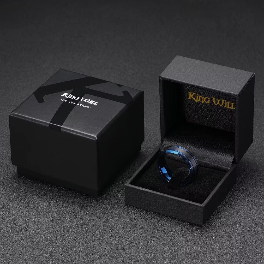 King Will Mens Tungsten Carbide Wedding Band with Groove Design, 6/7/8mm Width, Brushed/Polished Finish Men’s Rings Comfort Fit(Black&Blue-8mm)