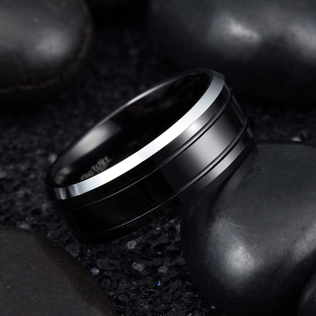King Will Mens Tungsten Carbide Wedding Band with Groove Design, 6/7/8mm Width, Brushed/Polished Finish Men’s Rings Comfort Fit(Black&Silver Edge-8mm)
