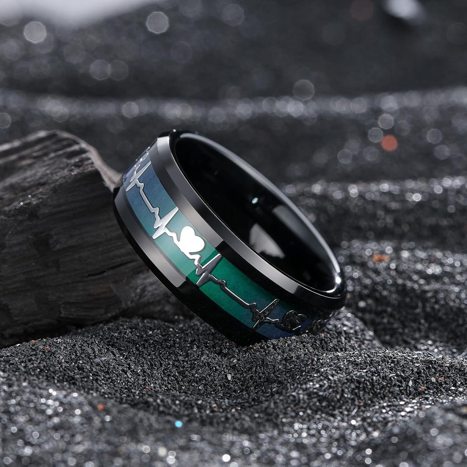 King Will Men’s Tungsten Mood Rings, Men’s Emotional Wedding Rings Heart Design/Celtic Dragon Inlay Beveled Edge Ring for Men Women, Comfort Fit, Durable(A-Black)