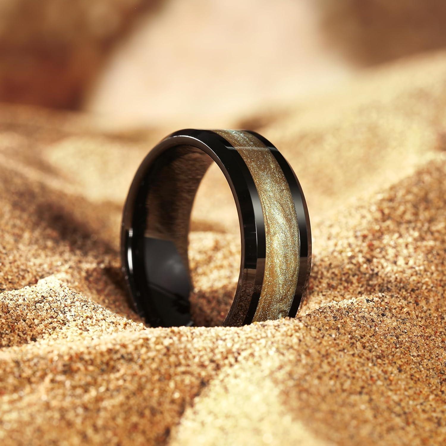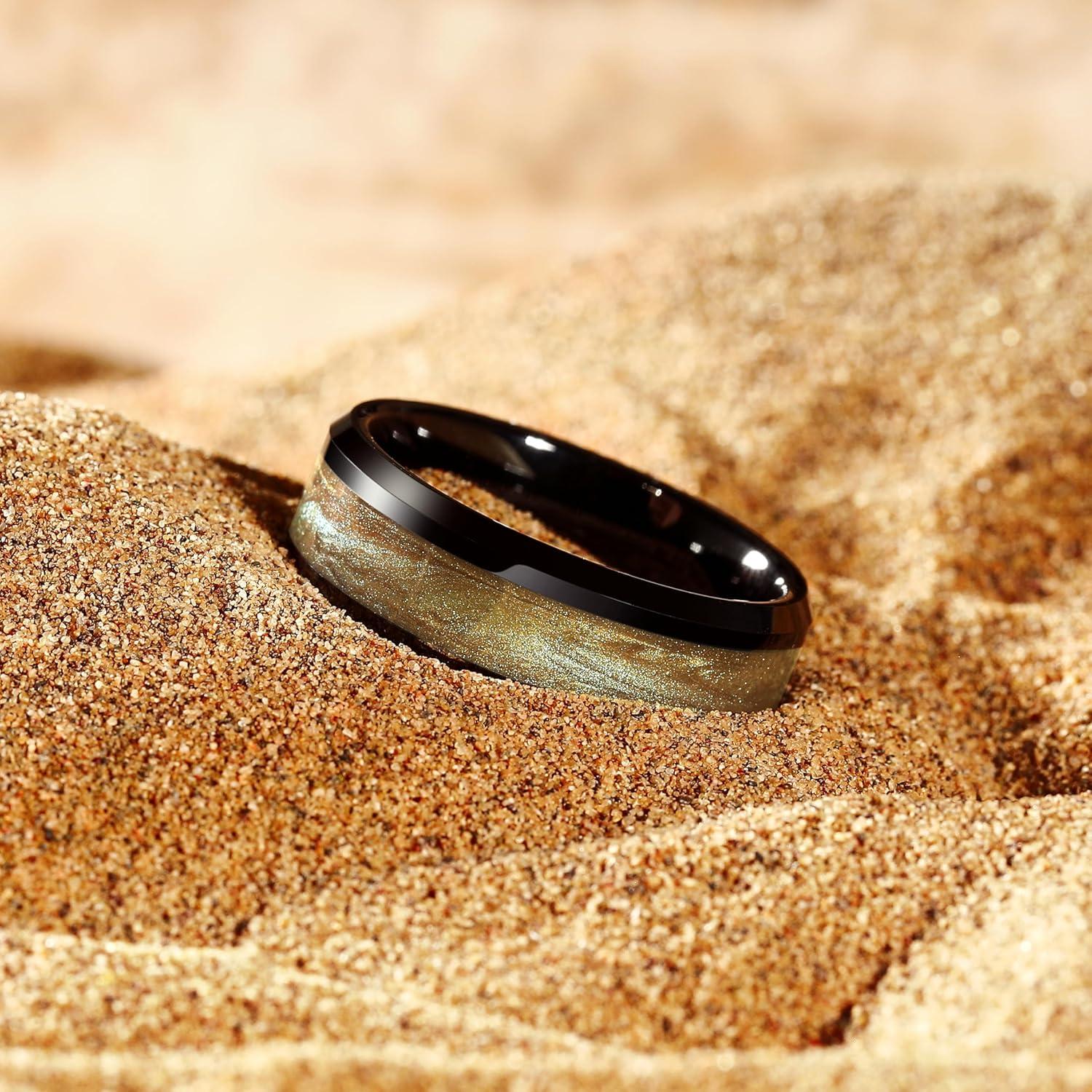King Will Mens Tungsten Wedding Band, 6mm/8mm Galaxy Style Sandstone Opal Inlay Polished Beveled Edge Unique Rings for Men Women, Comfort Fit, Durable(Black&Camo)