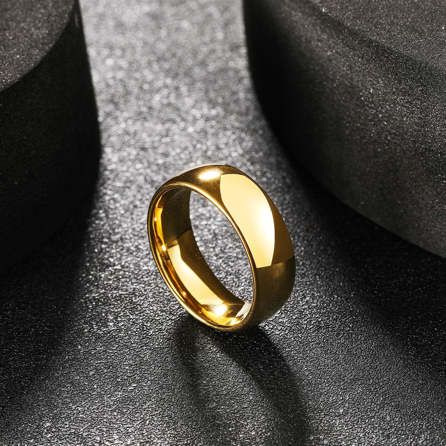 King Will Men’s Women’s 1.5mm 2mm 4mm 6mm 8mm Tungsten Carbide Ring 24k Gold Plated Rose Gold Plated Domed Polished Finish Wedding Band(Gold 8mm)