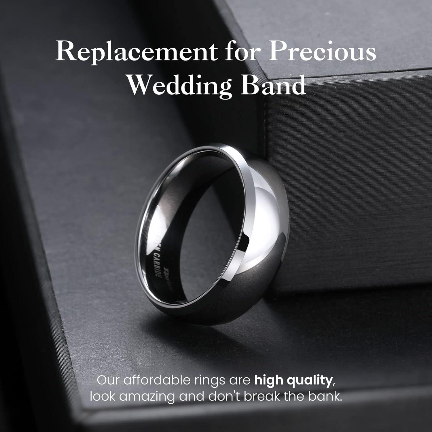 King Will Men’s Women’s 1.5mm 2mm 4mm 6mm 8mm Tungsten Carbide Ring 24k Gold Plated Rose Gold Plated Domed Polished Finish Wedding Band(Z-Silver 8mm)