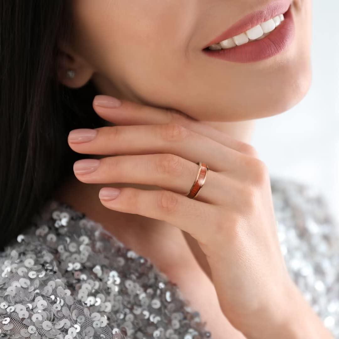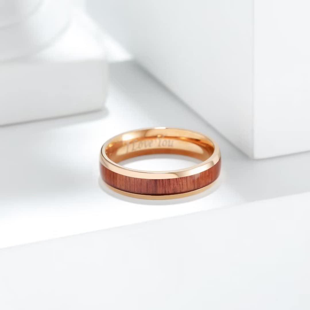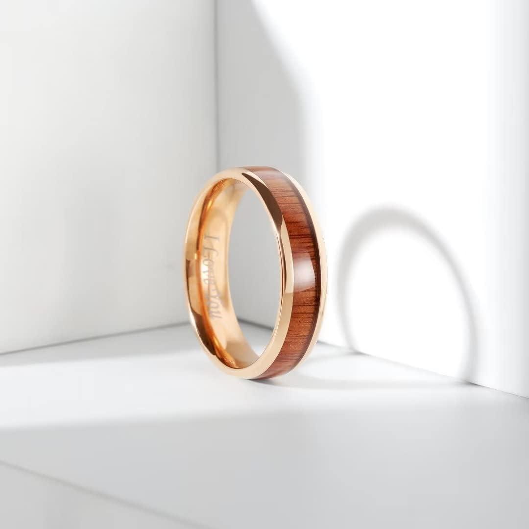 King Will Nature 4mm/6mm Domed Koa Wood Stainless Steel Ring Wedding Band Turquoise Granules Inlay High Polished Domed Black/Silver/Rose Gold Plated for Men Women(6mm Rose Gold)