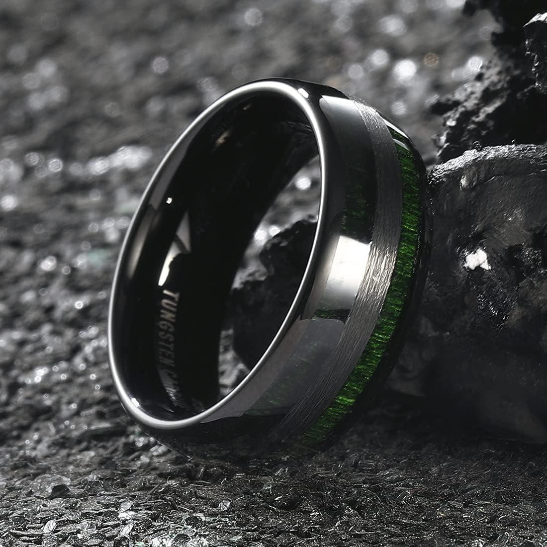 King Will Nature 8mm Custom Mens Domed Green Wood Inlay Black Tungsten Carbide Ring Personalized Wedding Band(Green maple)