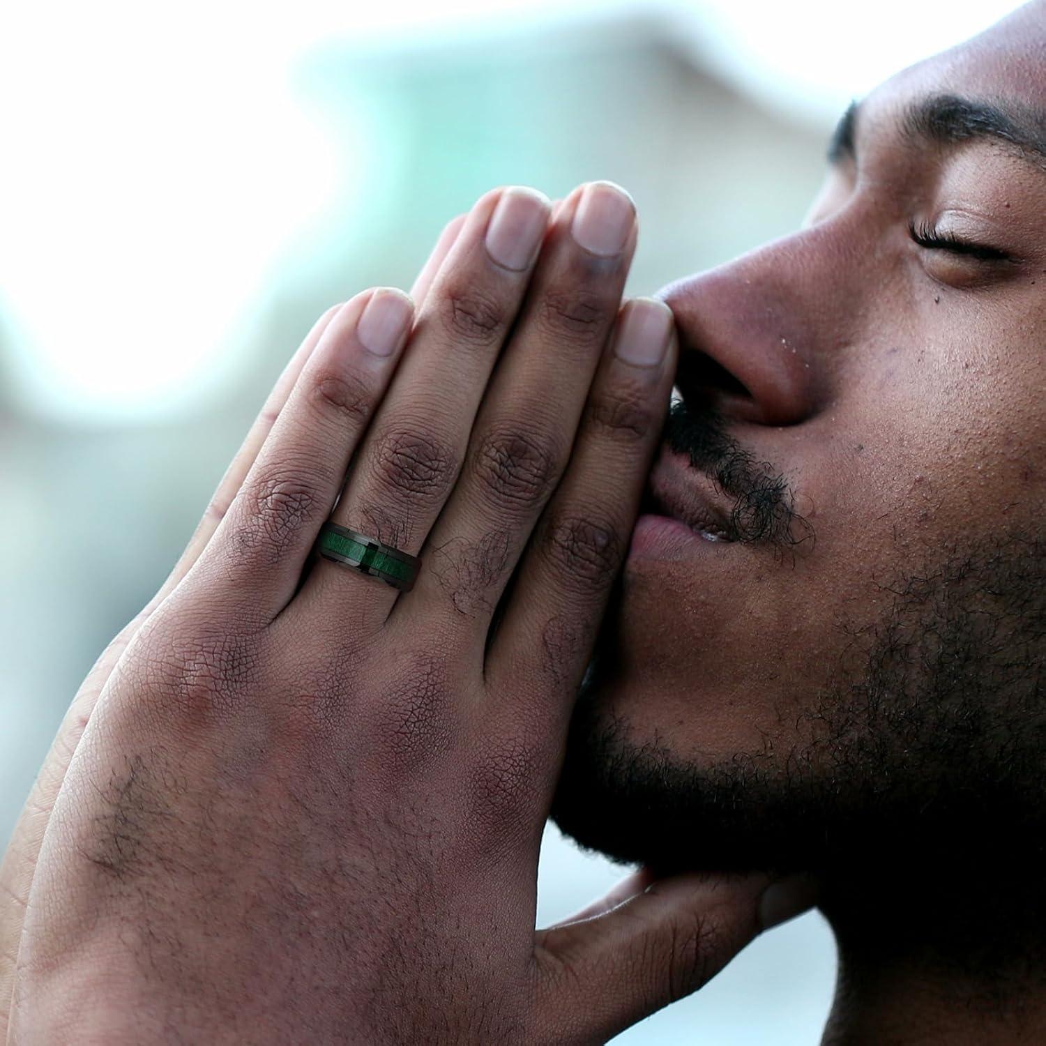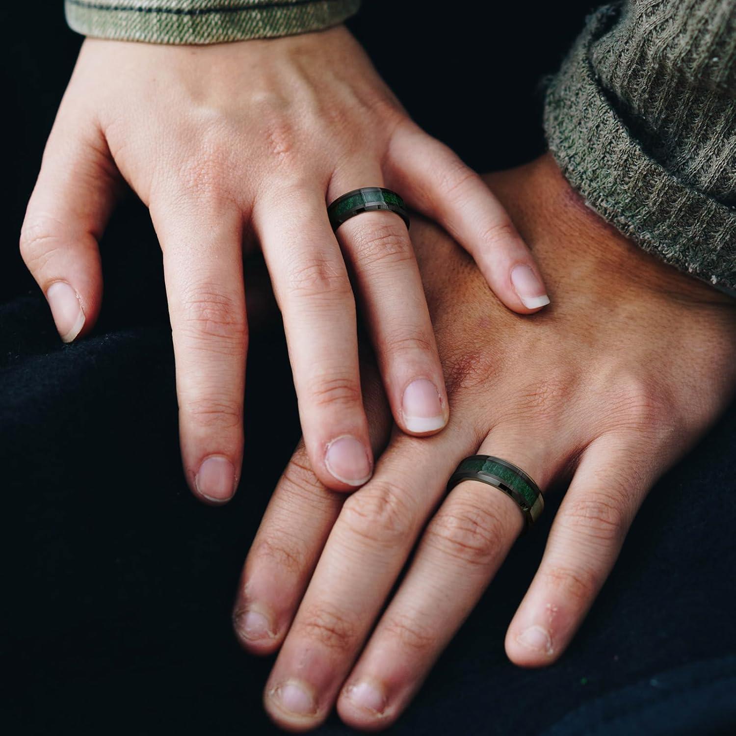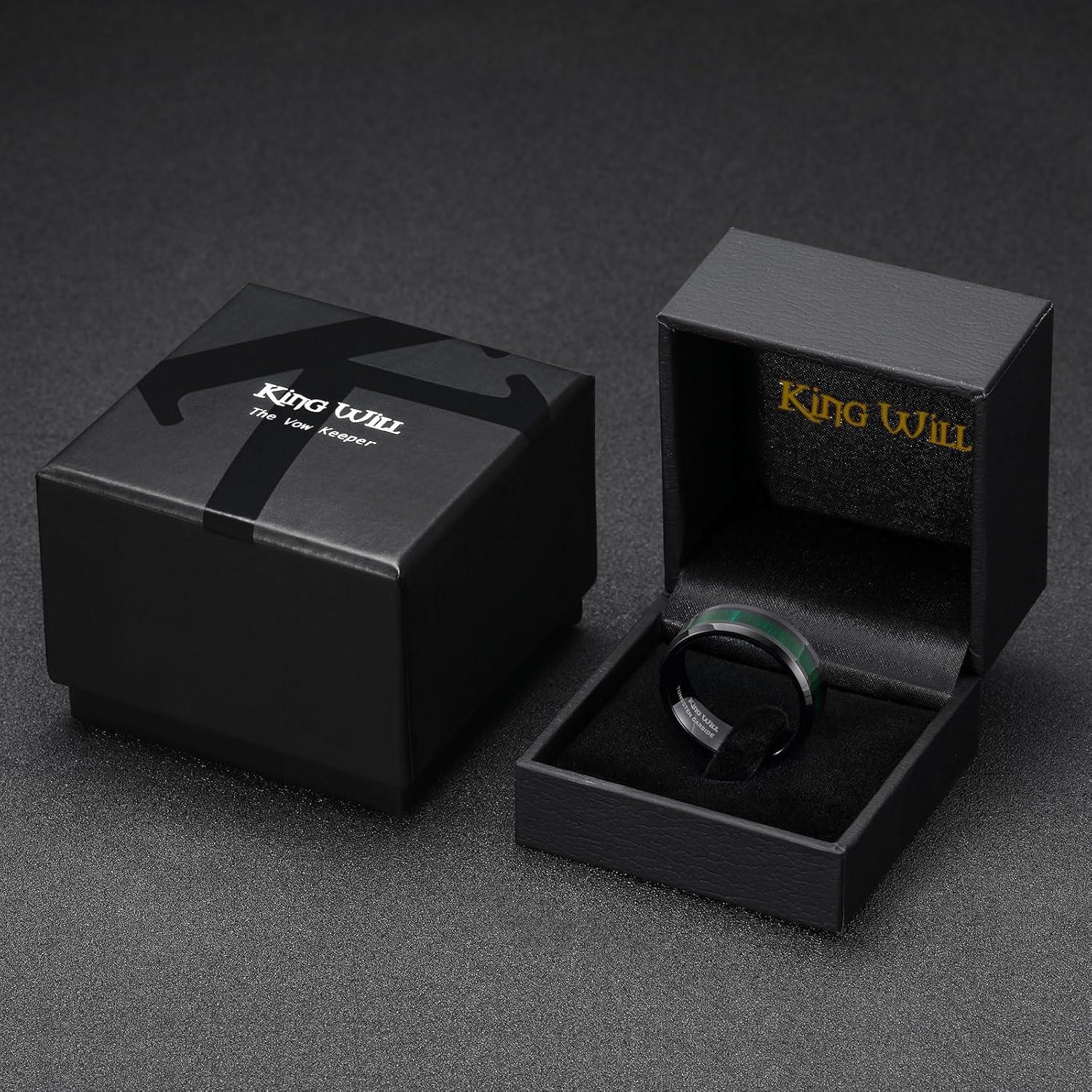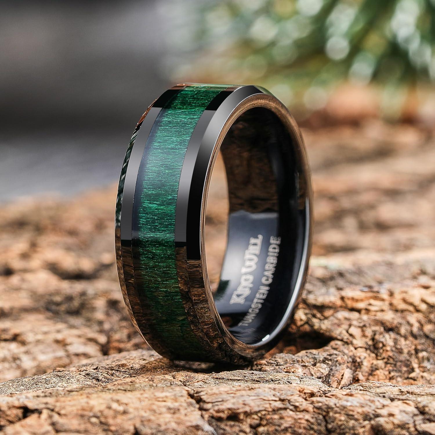 King Will Nature Koa Wood Inlay Tungsten Carbide Wedding Ring 8mm Silver/Black/Gold/Green/Rose Gold/Blue Wedding Band for Men High Polished Anniversary Rings Comfort Fit Size 6-15(D-green)