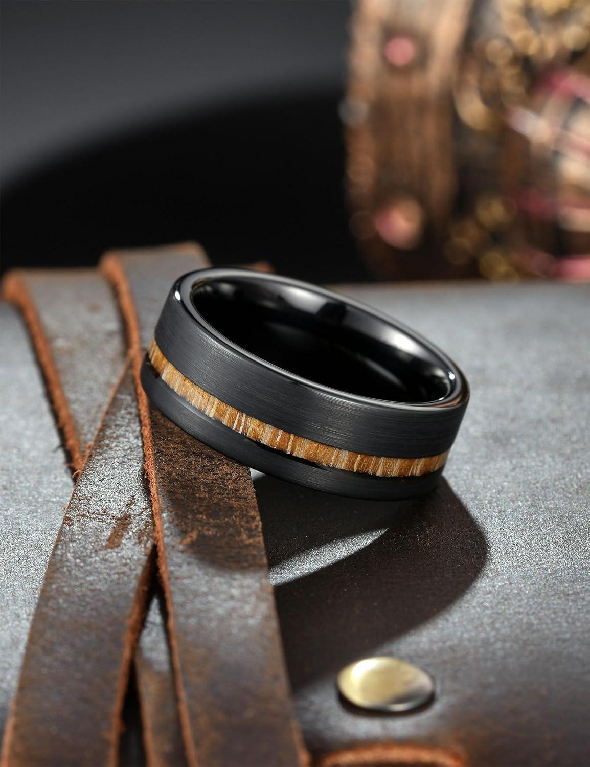King Will Nature Tungsten Carbide Wedding Band 7mm Silver/Black Tungsten Ring with Wood Inlay Comfort Fit(Black with Nature Wood)