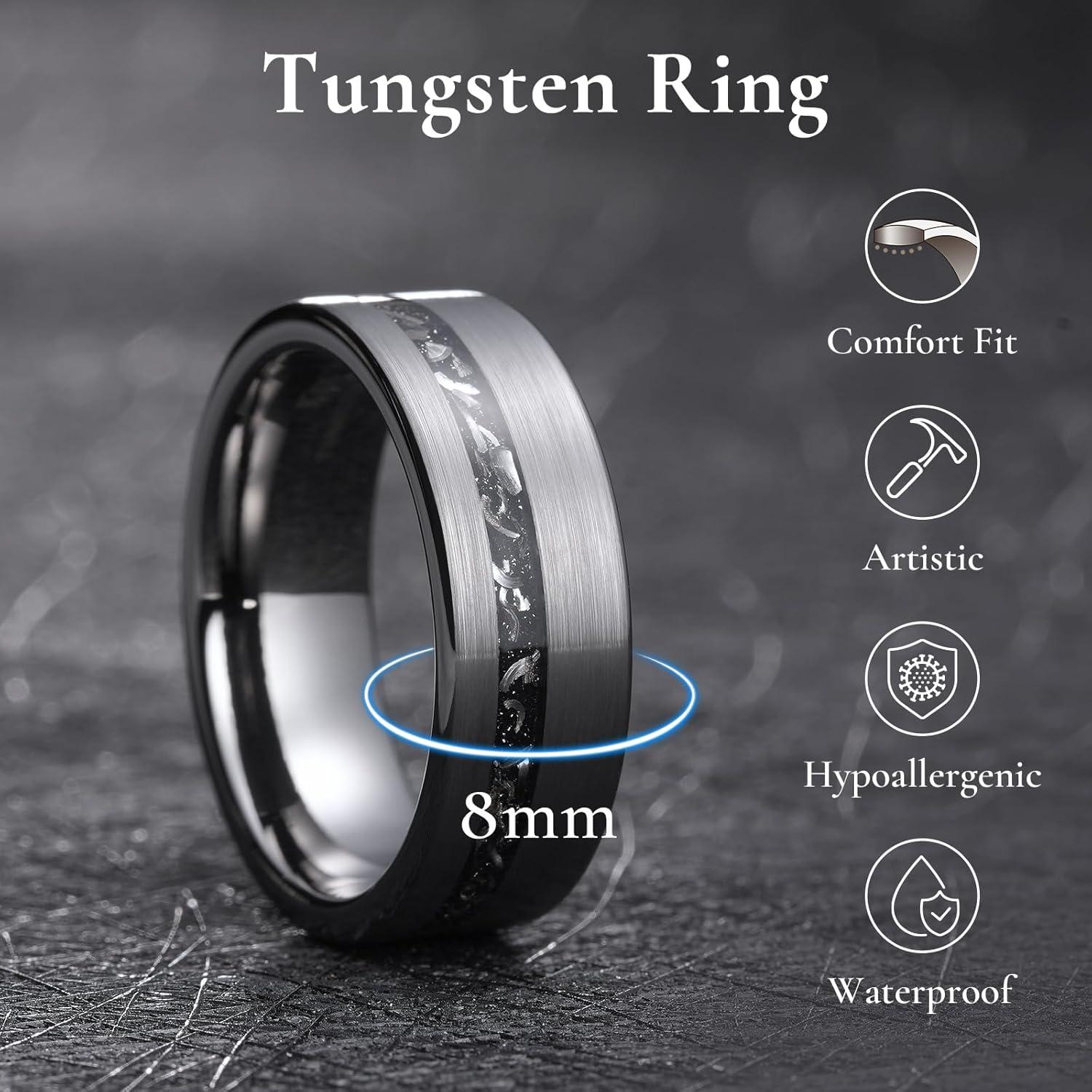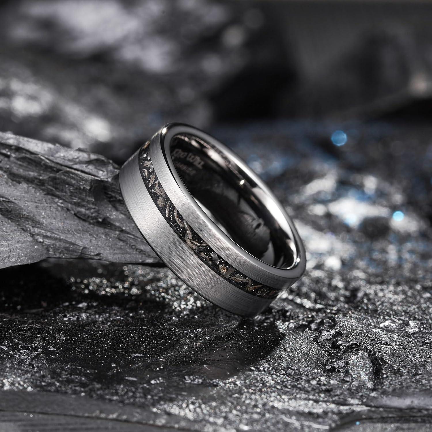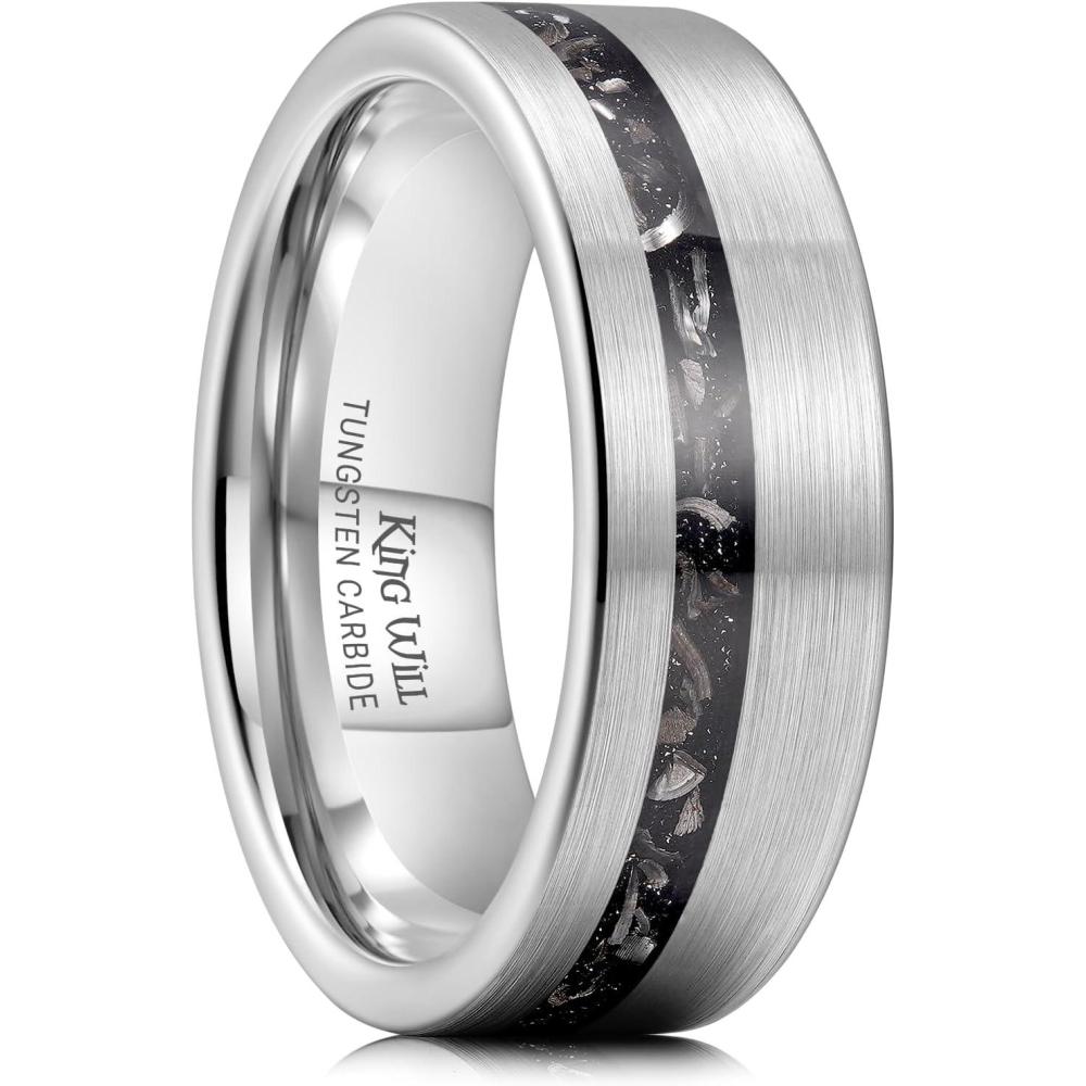 King Will Nature Tungsten Carbide Wedding Band 7mm Silver/Black Tungsten Ring with Wood Inlay Comfort Fit(Gunmetal)