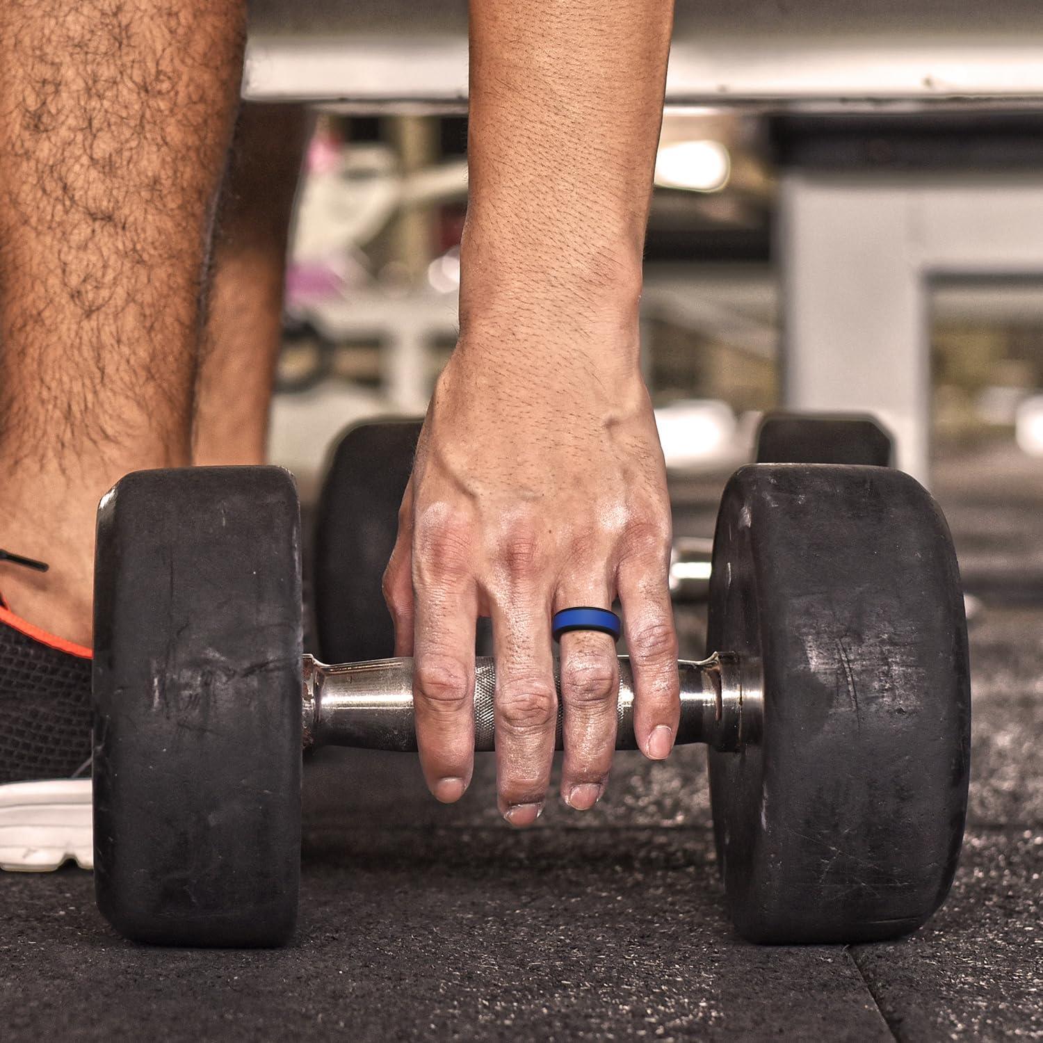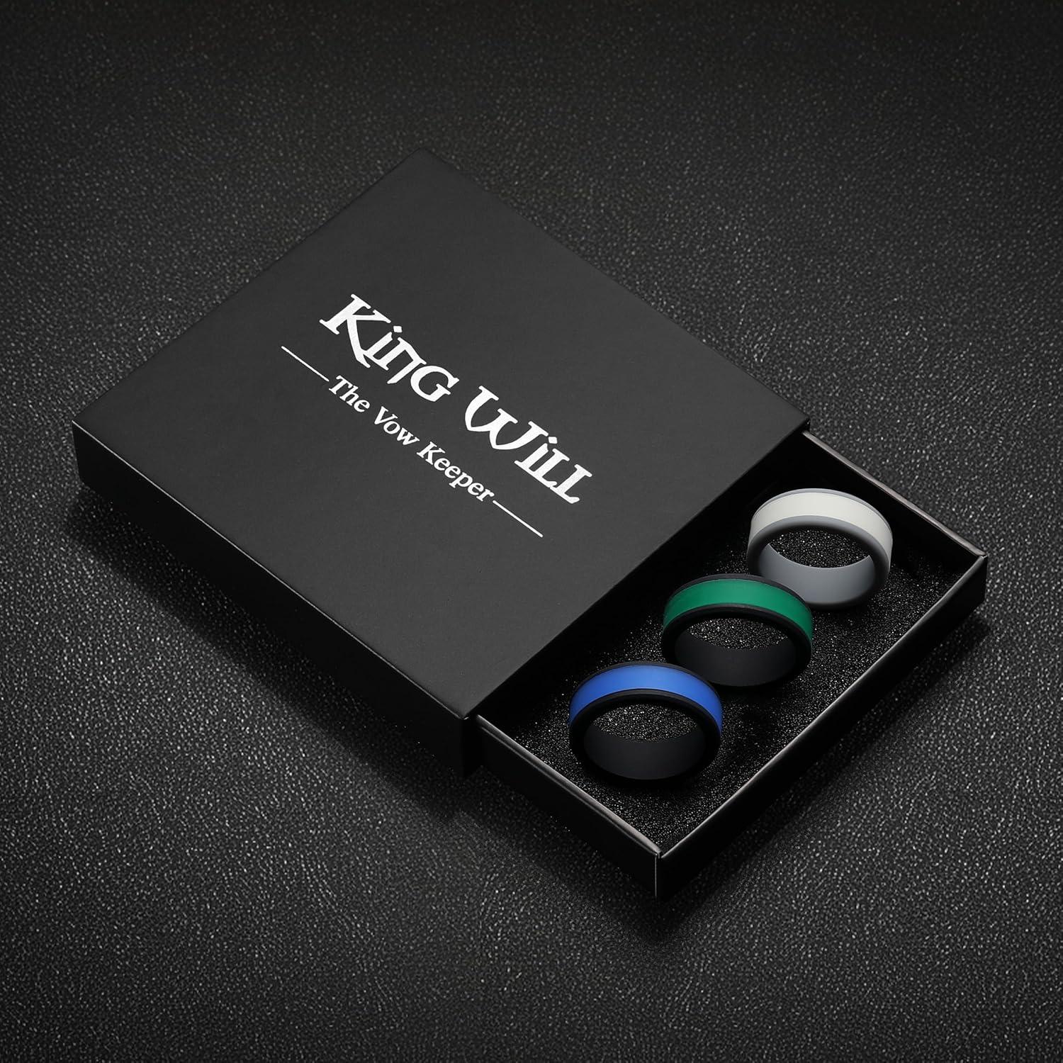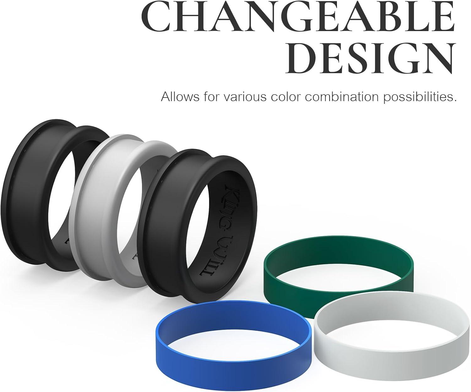 King Will Silicone Ring for Men – Gray Mens Silicone Wedding Band with Gray Blue Green Orange Variety Colors Flexible Changeable Stripe Bands – 8mm Wide Rubber Wedding Bands Engagement Ring(2Black+1Grey Basic)