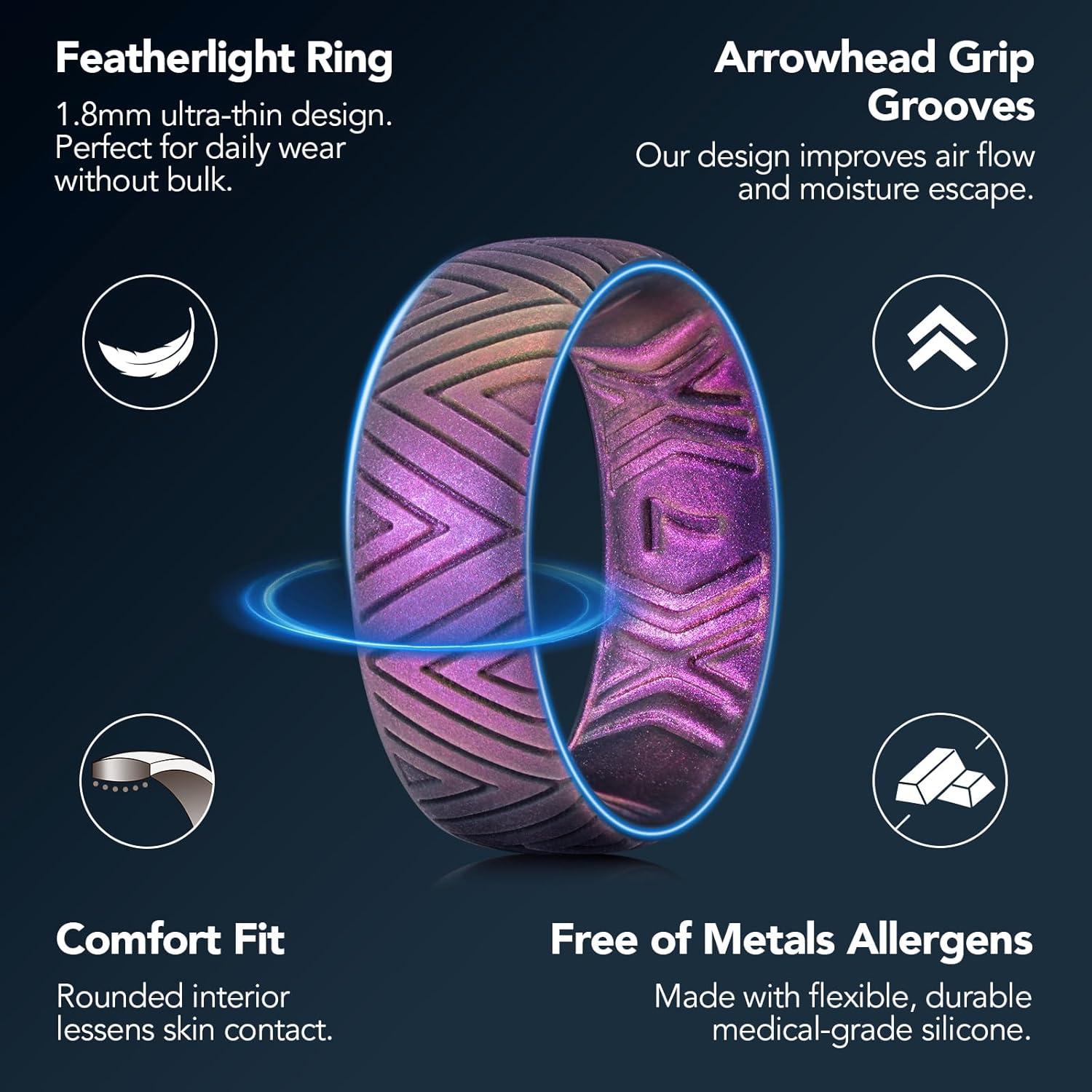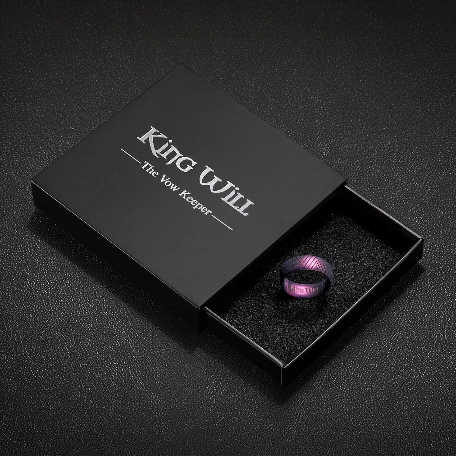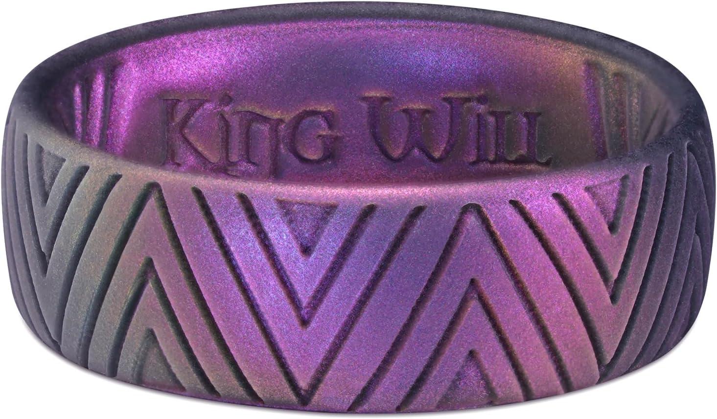 King Will Silicone Wedding Rings For Men, 6.6mm Wide 1.8mm Thick Triangular/Star/Flower Pattern Design Rubber Wedding Bands, Breathable Design, Comfort Fit Size 7-13(A-Starry Sky Purple)