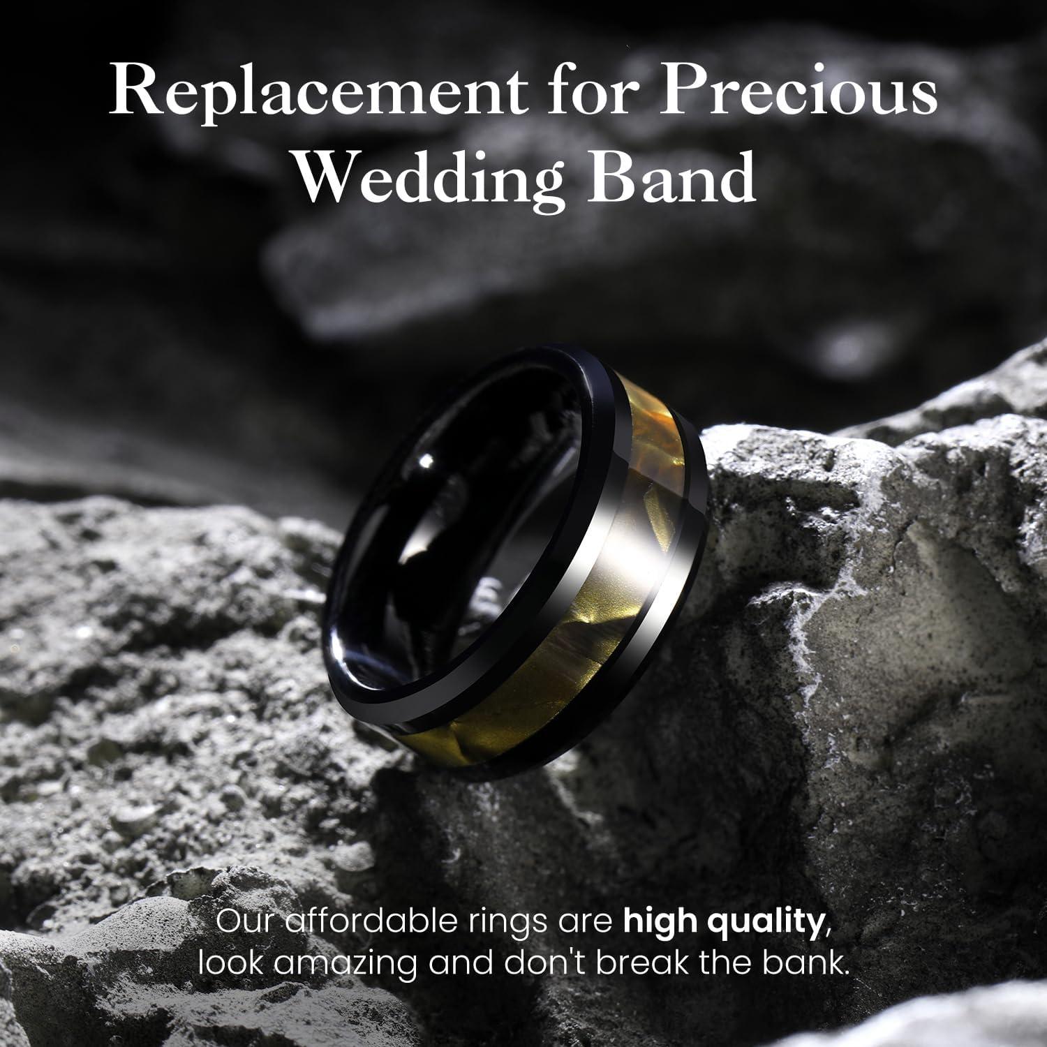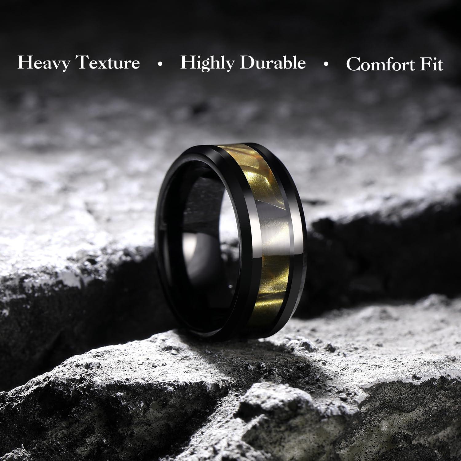 King Will Tungsten Carbide Wedding Band for Men – 8mm Black High Polished Inlay Green/Black Olive Shell Texture Patterns for Everyday Wear Comfort Fit(Black Olive)
