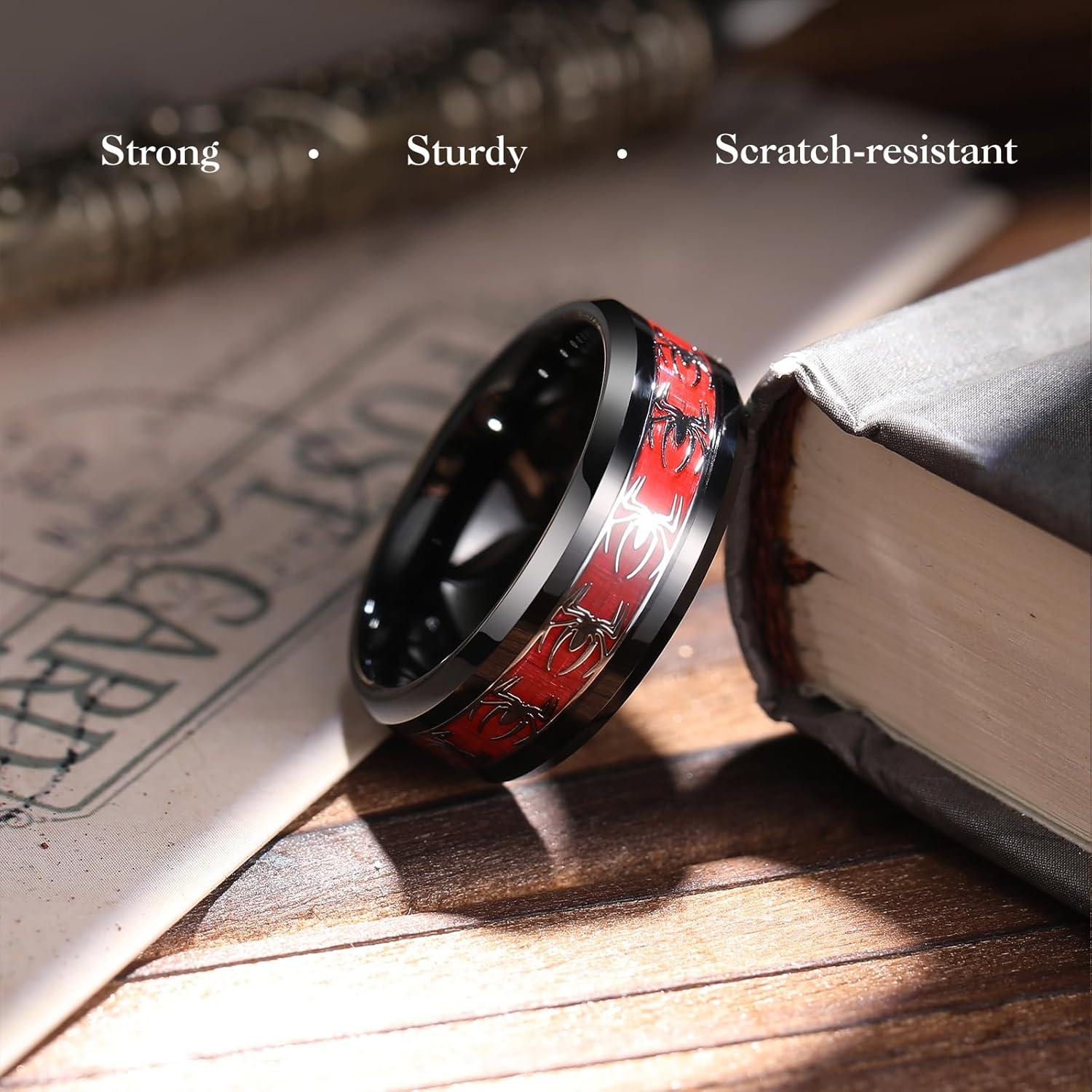 King Will Tungsten Carbide Wedding Band for Men – 8mm Black High Polished Inlay Spider for Everyday Wear Comfort Fit(Black 8mm)
