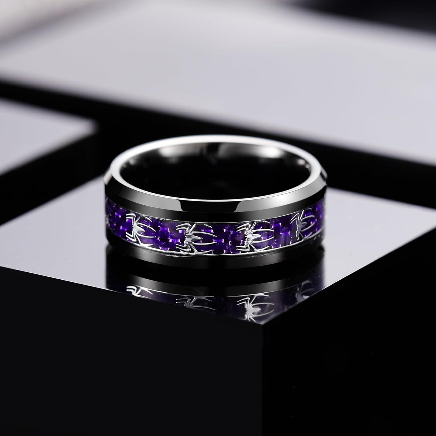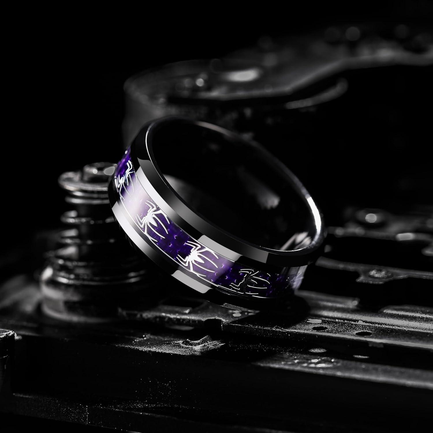 King Will Tungsten Carbide Wedding Band for Men – 8mm Black High Polished Inlay Spider for Everyday Wear Comfort Fit(purple-black)