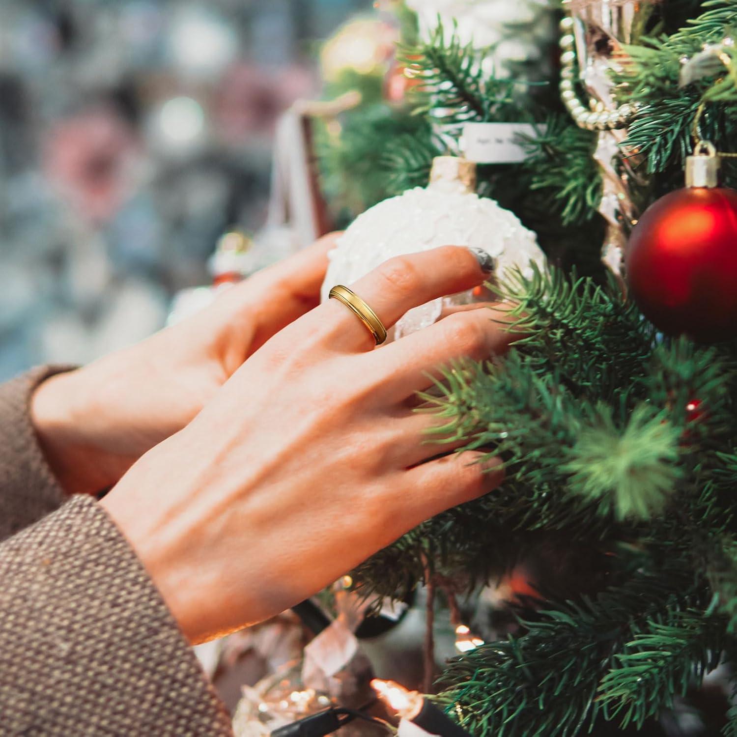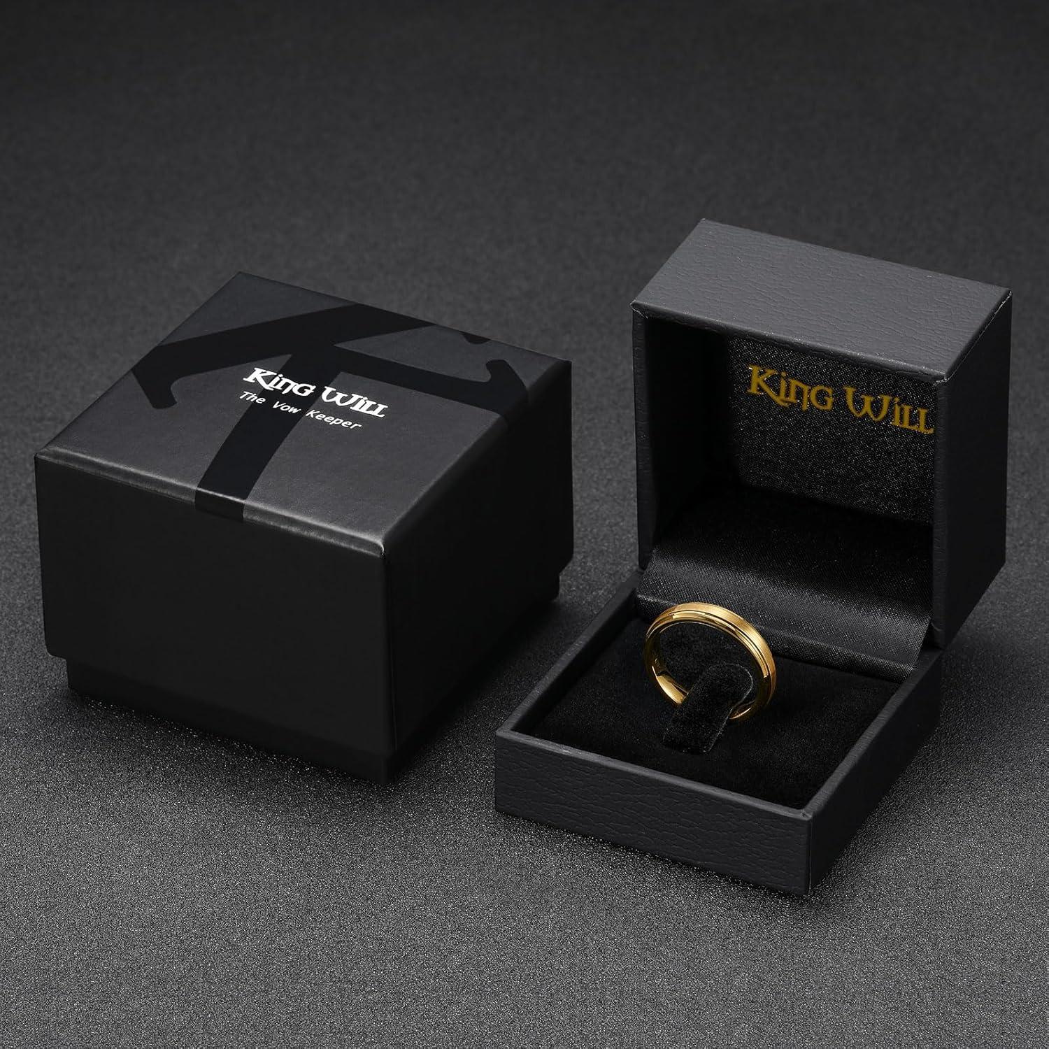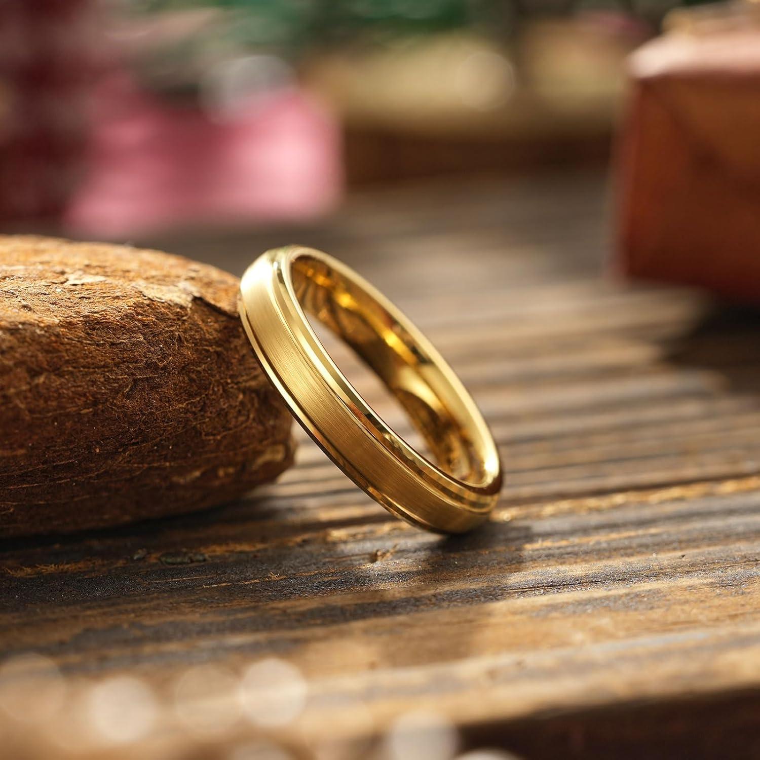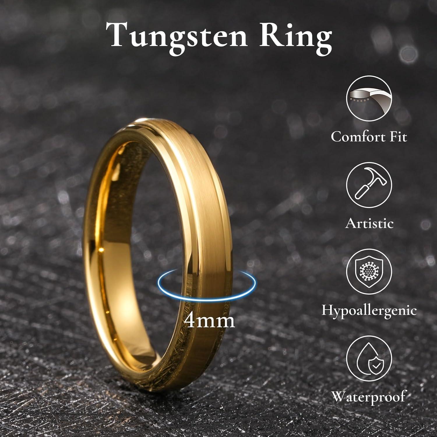 King Will Tungsten Carbide Wedding Band for Men Women-4/6/8mm Width 14K Gold Plated Tungsten Wedding Ring Matte Brushed & High Polished Style Comfort Fit Wedding Band Size 6-14(A-4mm)