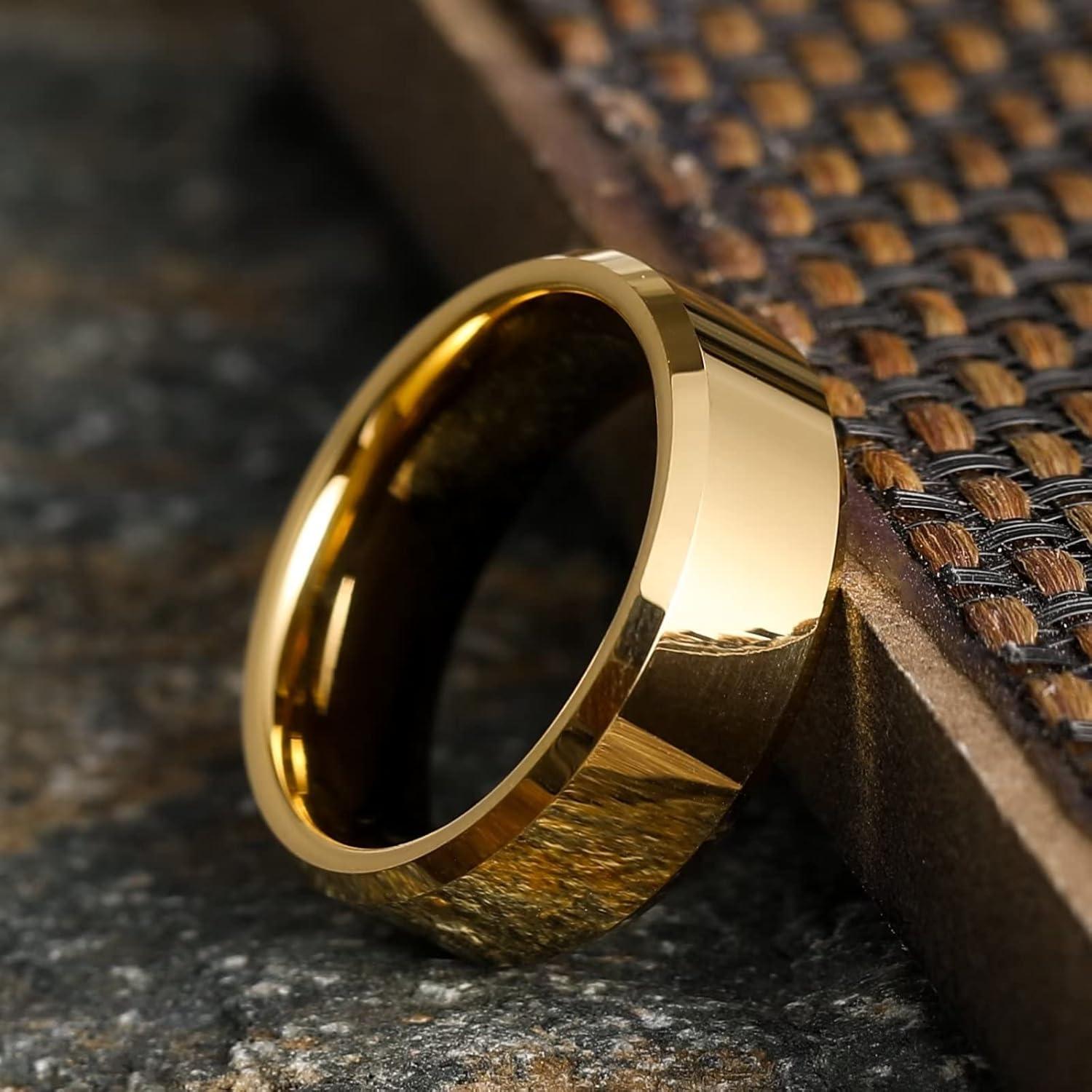 King Will Tungsten Carbide Wedding Band for Men Women-4/6/8mm Width 14K Gold Plated Tungsten Wedding Ring Matte Brushed & High Polished Style Comfort Fit Wedding Band Size 6-14(C-8mm Polish)
